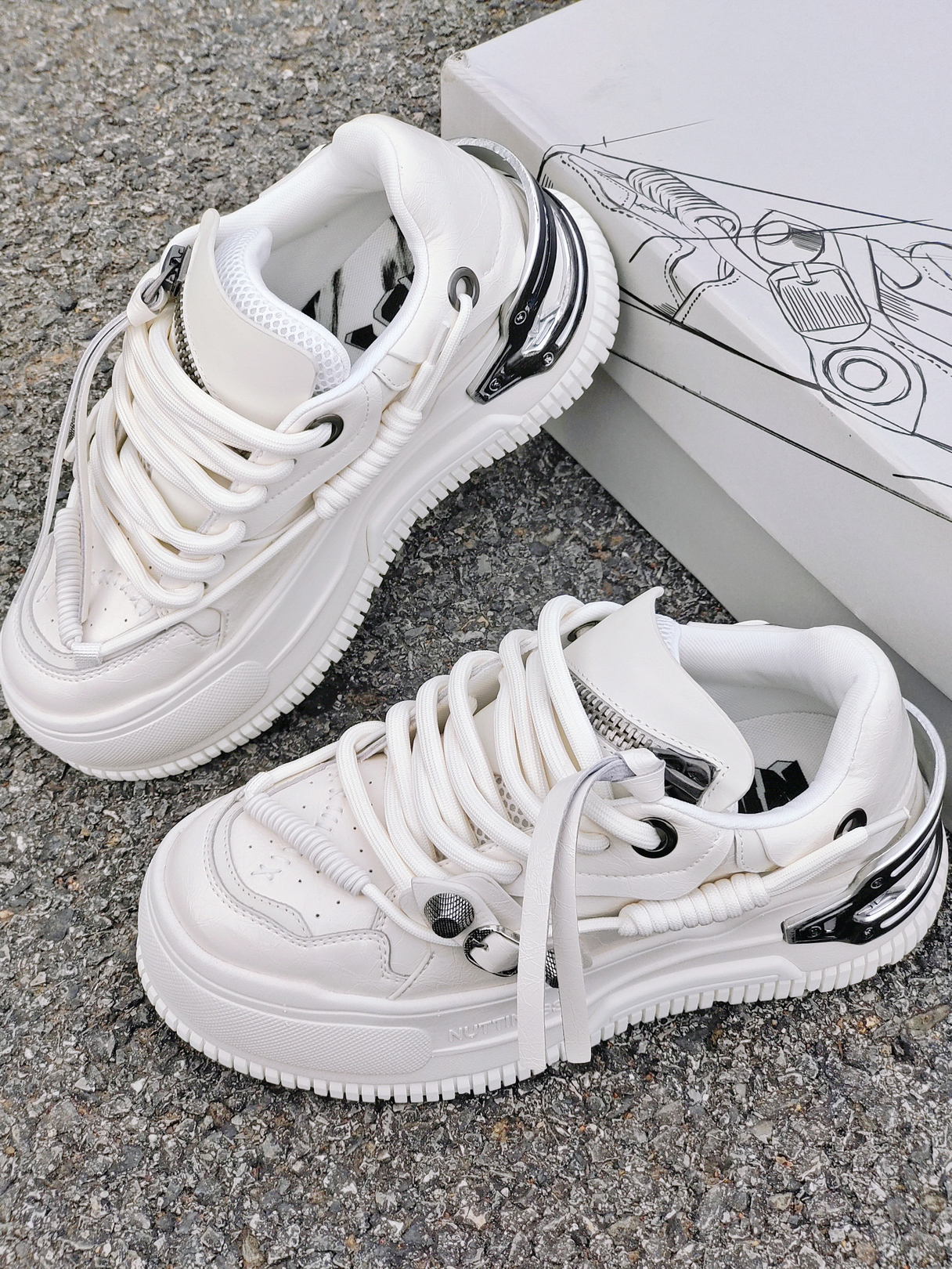 本篇笔记关联了NUTTINESS 狂野分子 不拘绳墨系列 金属机能 轻便厚底 潮流百搭 时尚 面包 板鞋 NW30131W 米白等商品,为用户提供真实的使用体验和购买参考。