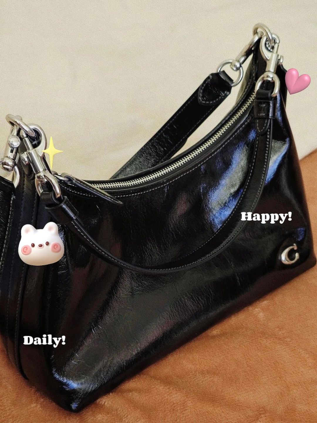 本篇笔记关联了Coach Juliet 拉链开合可调节肩带光泽牛皮革HOBO斜挎手提单肩包 黑色等商品,为用户提供真实的使用体验和购买参考。
