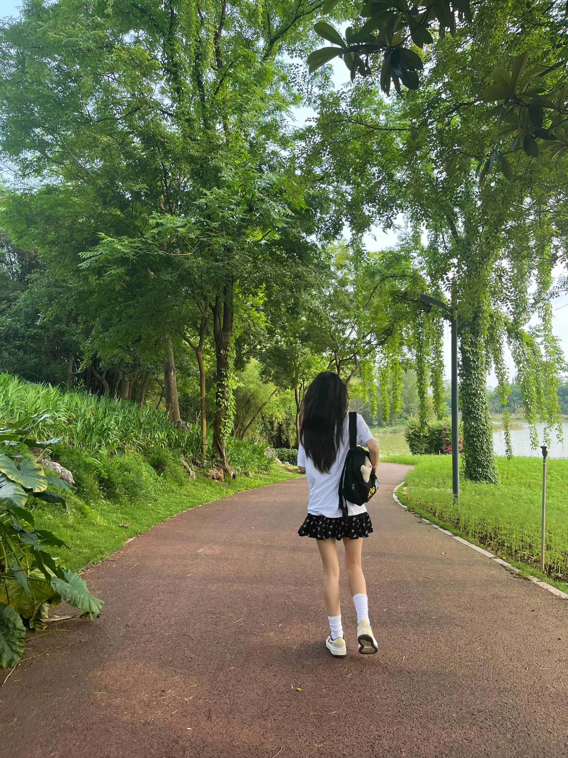 谁还没有jennie代言的同款短袖呢,超级好看,夏天逛公园,满满的青春活力的感觉。