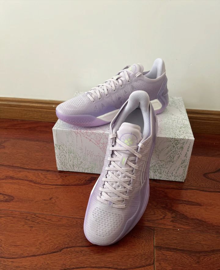 外观设计:神秘而内敛的「罗兰]风格,动静结 合间展现出非凡的优雅。这款篮球鞋以紫罗兰色为主调,从鞋面至鞋底呈现渐进色调,侧面的李宁LOGO以紫罗兰花元素点缀,与利刃标识相映成趣,营造出花中之王的独特风采。鞋底采用特殊设计的gcu大底,透过底部可以看到内部的铲形抗扭片,增添了一抹神秘感,同时在球场上的辨识度极高。 交配置特色:鞋面采用独特的"三横一竖"编织工艺,提供更具针对性的变向支撑。鞋身设有7组...