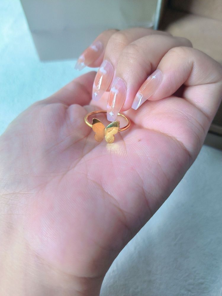 直男送礼真的不要只知道送口红💄啦 直接送女友黄金蝴蝶戒指呀,哪个女孩子不心动呀,仿佛一只真的蝴蝶停留在自己的手指尖 而且听说蝴蝶是24年很强的招财元素,戴上这个蝴蝶戒指,2024年岂不是财从四面八方来~换谁谁不心动呀!😍😍
