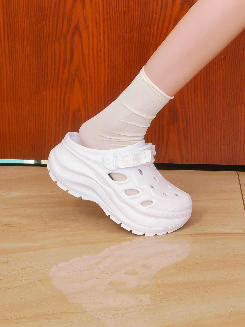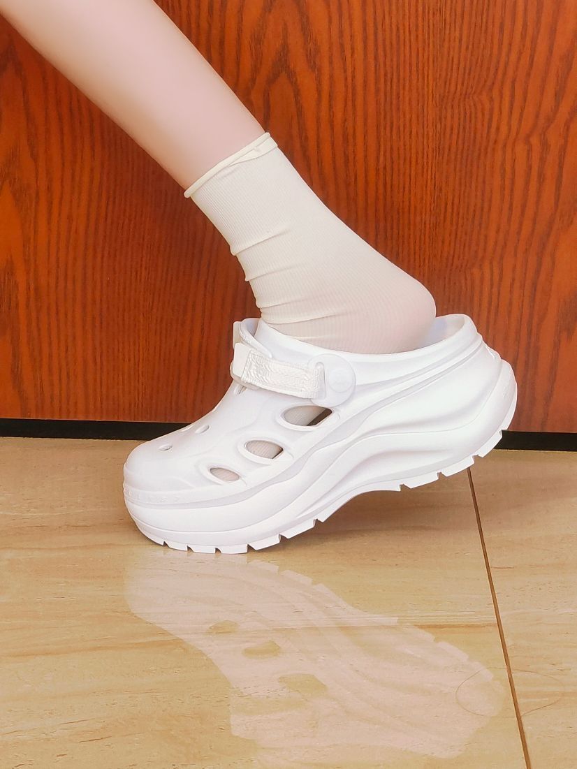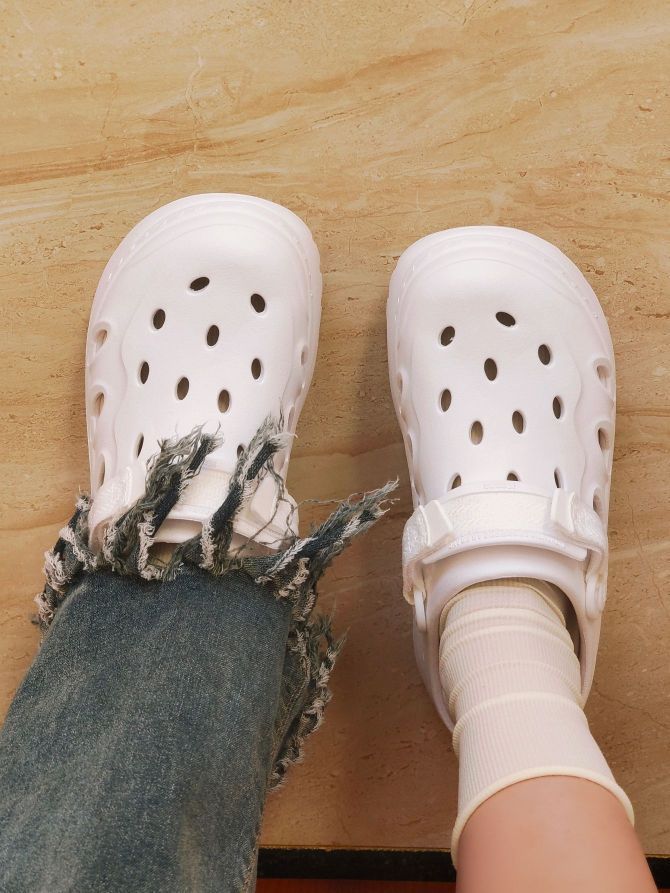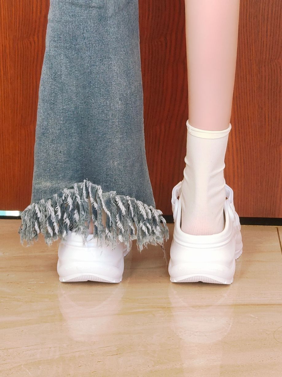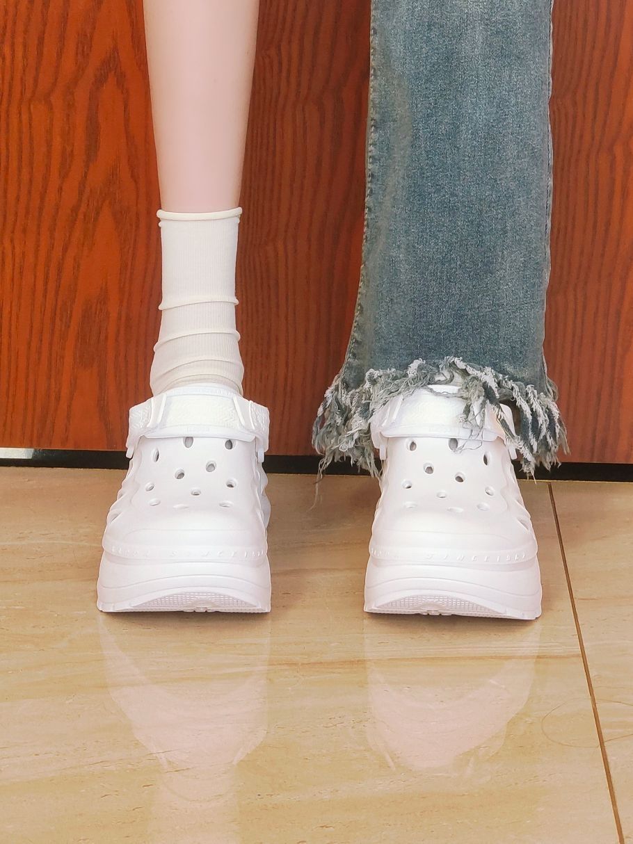 kappa这一双白色的洞洞鞋还是很好搭配,像我一样搭配一条阔腿牛仔裤就很好看啦 鞋面上的洞眼还可以自己DIY哦 有6厘米左右的增高,对我这种小土豆来说太友好啦 还是很不错的