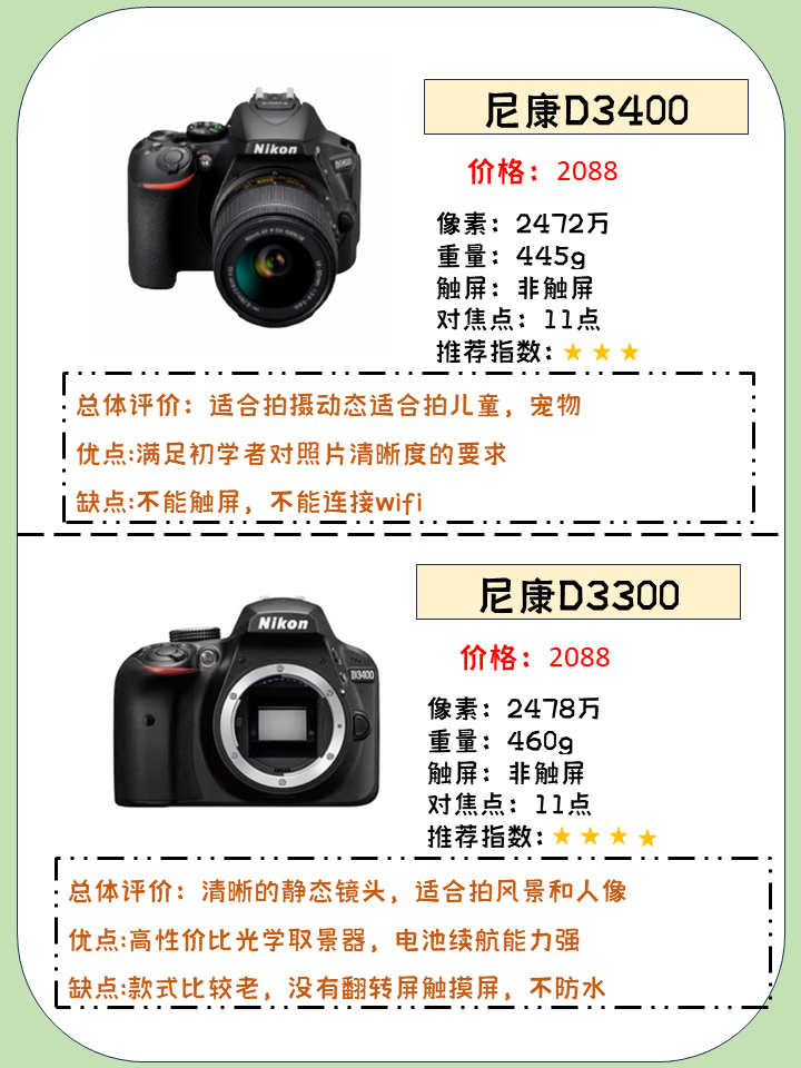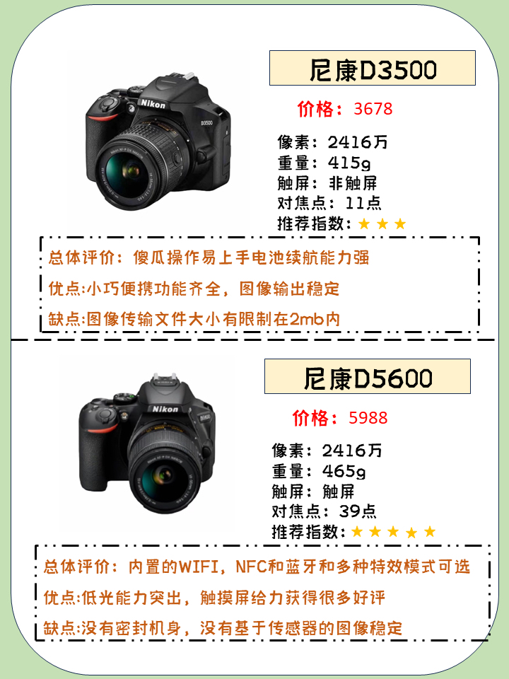 本篇笔记关联了Nikon/尼康 D5600 单反相机 入门级 半画幅 高清摄像 防抖 旅游 中端 单机身、Nikon/尼康 D3400 单反机身 D3400 单反机身、Canon/佳能 EOS 800D 数码单反相机 入门级 高清摄像 旅游 单机身等商品,为用户提供真实的使用体验和购买参考。