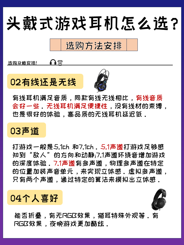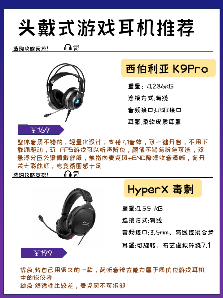 头戴式耳机长时间戴在头上,佩戴舒适度主要从以下角度考虑,一个是头大小适合戴多大耳机,其次是耳罩的舒适度,最后是耳机的重量。👌 ☝️有线耳机满足音质,同款有线无线相比,有线音质会好一些。无线耳机满足便捷性,没有线材的束缚,也是很好的体验,高品质的无线耳机延迟低。 能否折叠,有无RGB效果,猫耳特殊外观等。有RGB效果,夜晚游戏更加酷炫。 接下来推荐几款 ✅西伯利亚 K9Pro 整体音质不错的,轻量化...