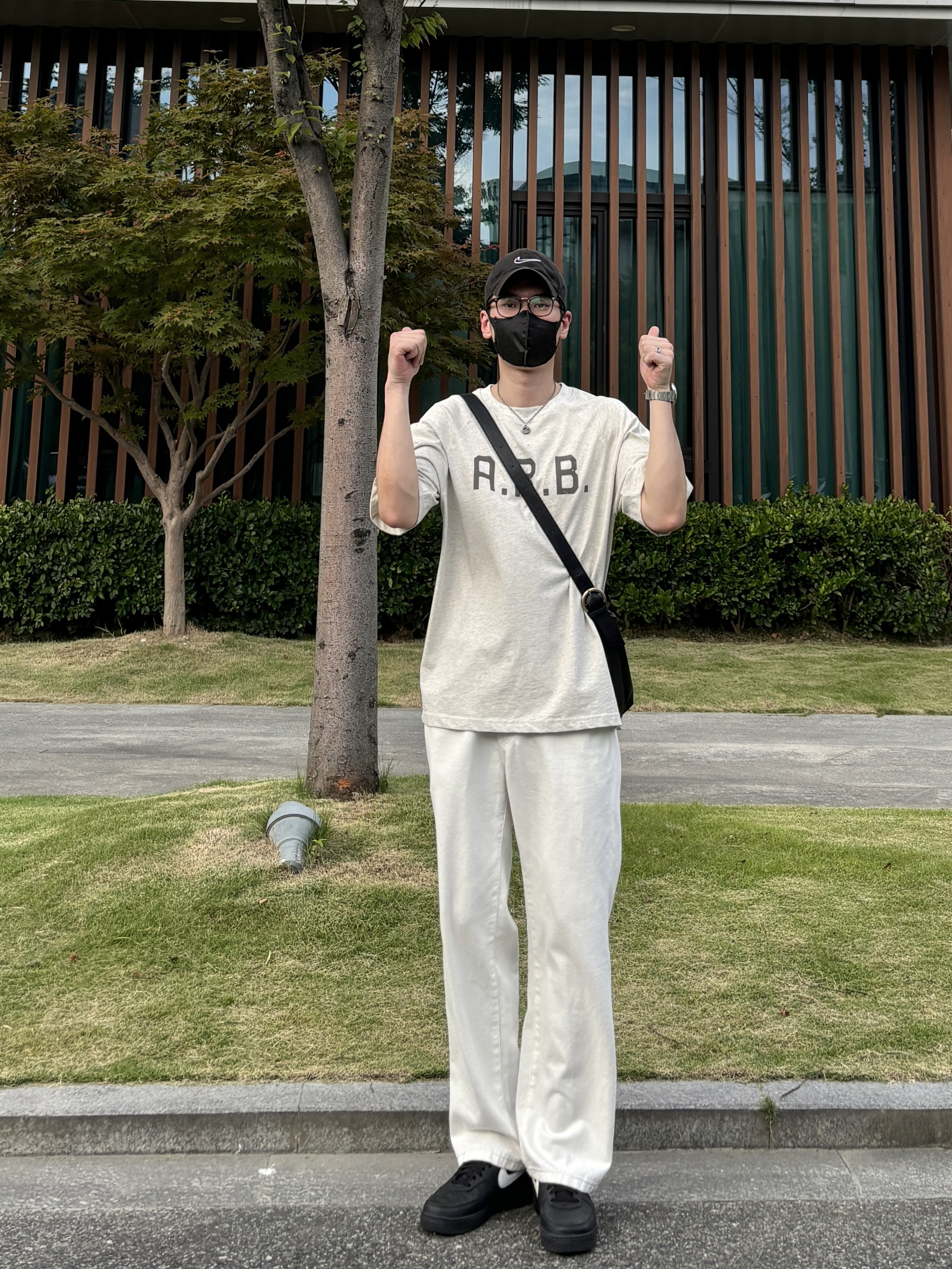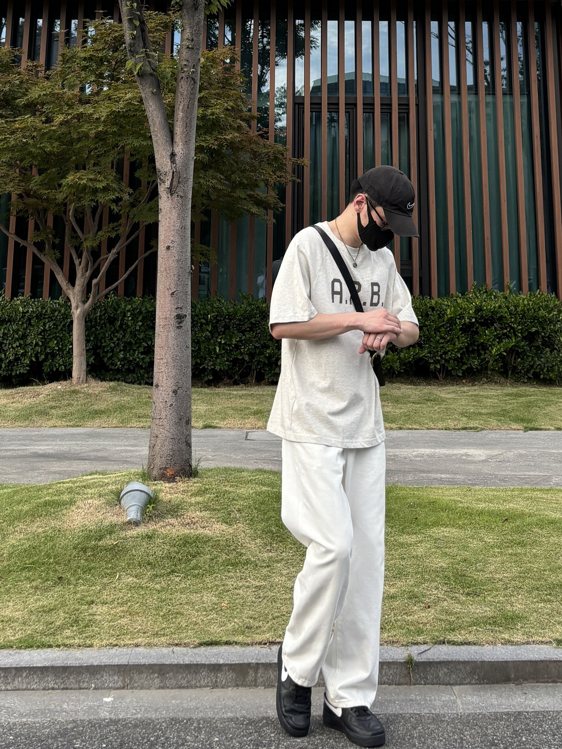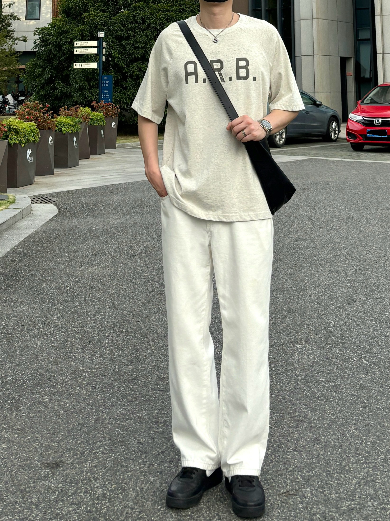 今天这套上衣穿了一件浅灰色重磅宽松字母插肩袖圆领T恤 ⬇️ 裤子选择清爽干净的白色直筒垂感牛仔裤 ⬇️ 鞋子上脚经典百搭的黑色系af1 ⬇️ 最后背一个精致的大容量皮质斜挎包 - 今日搭配 衣服裤子都来自:NICE LILI 鞋子:AF1