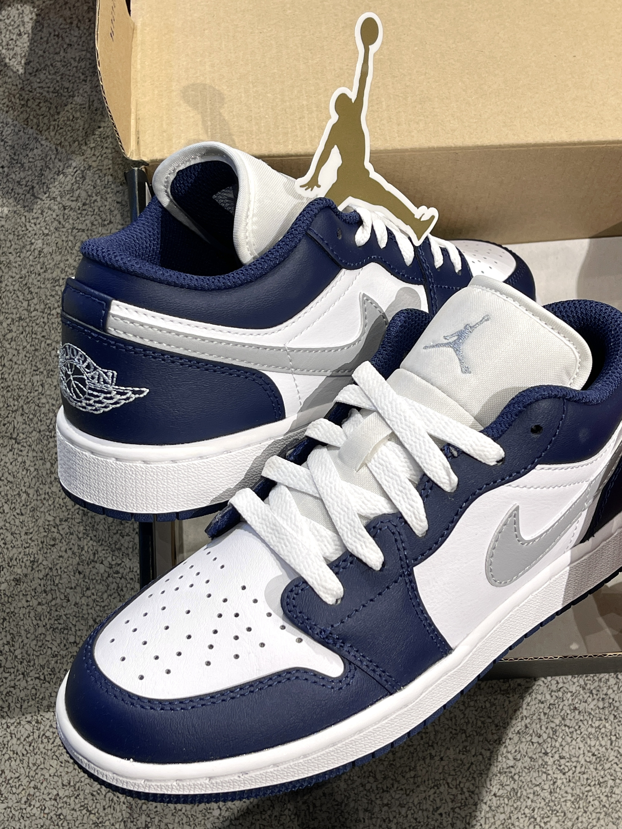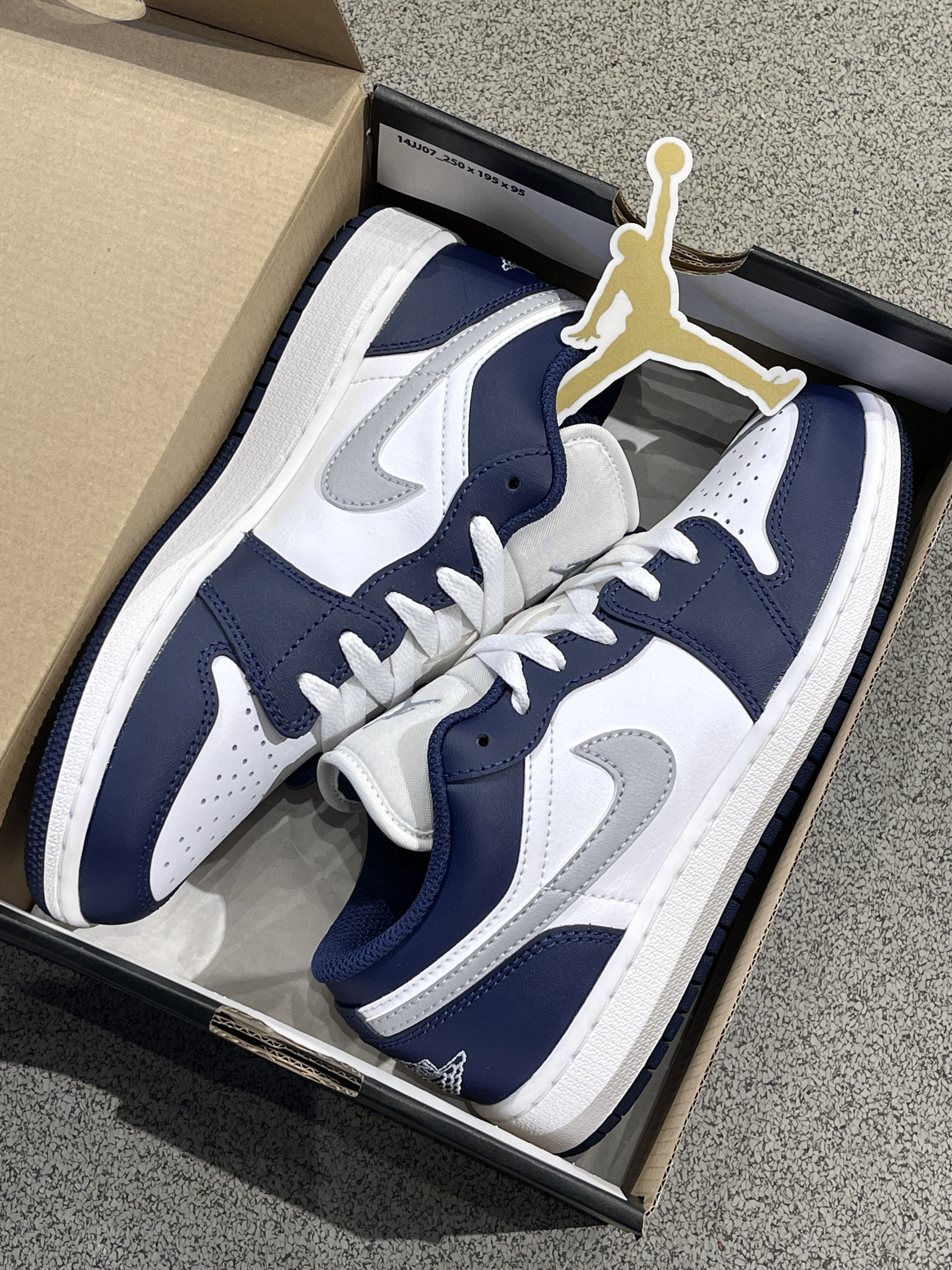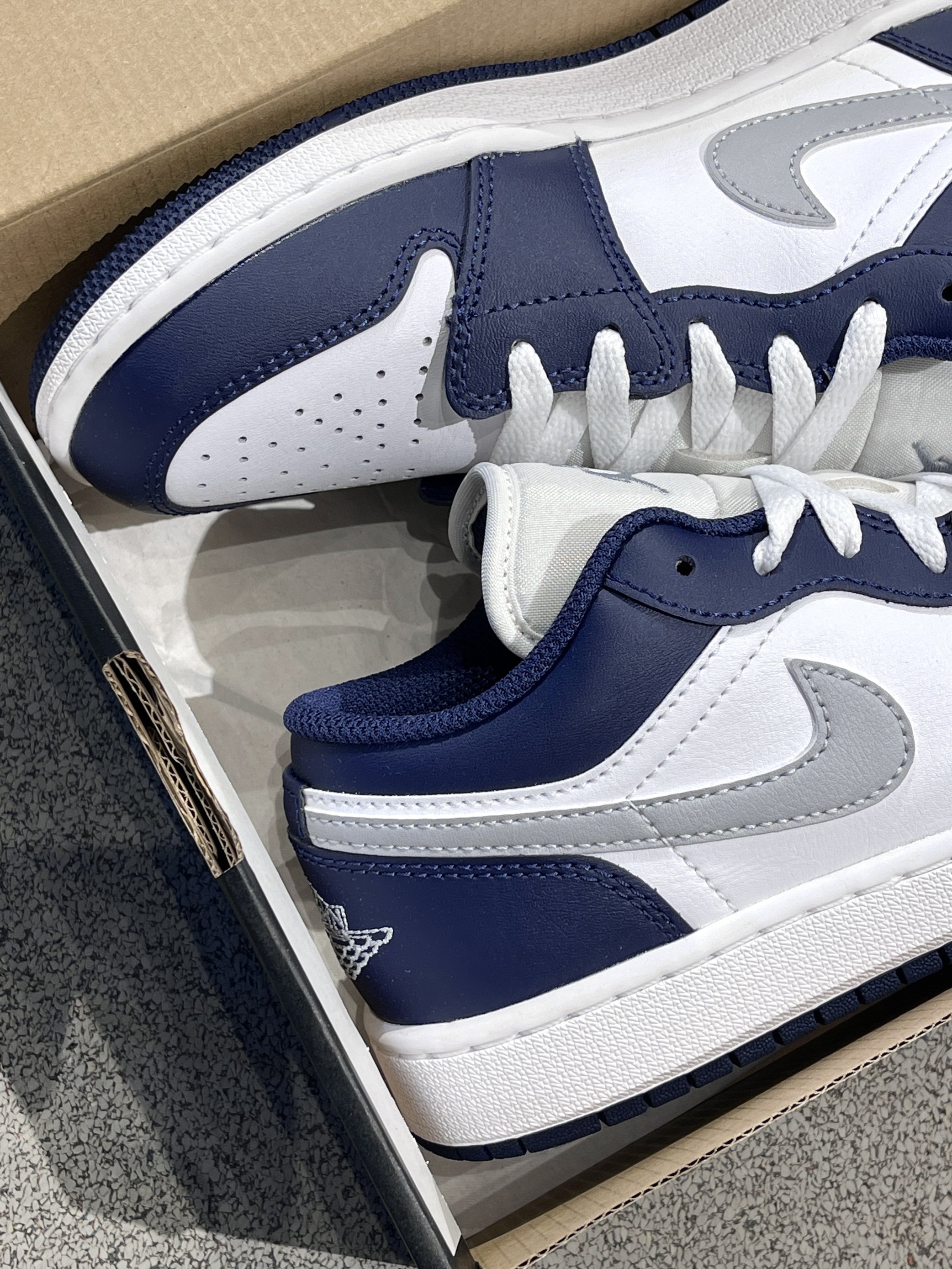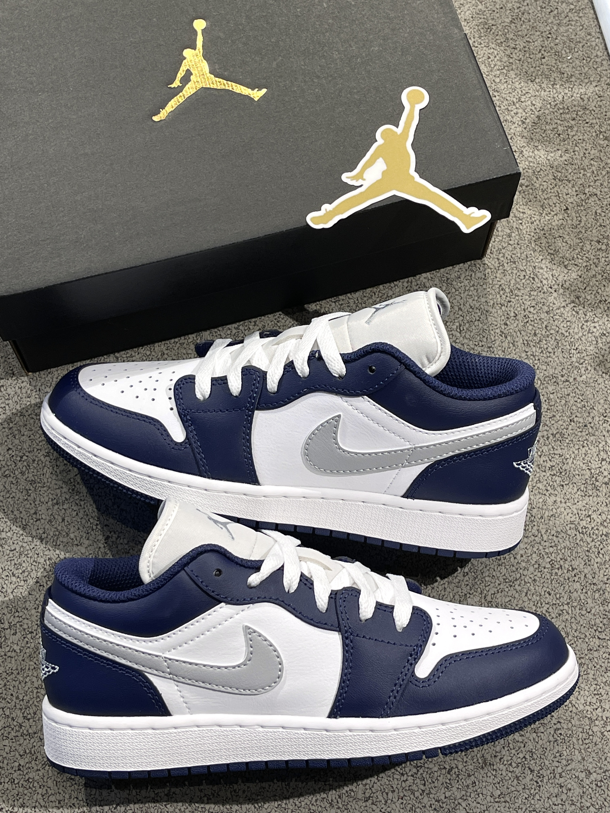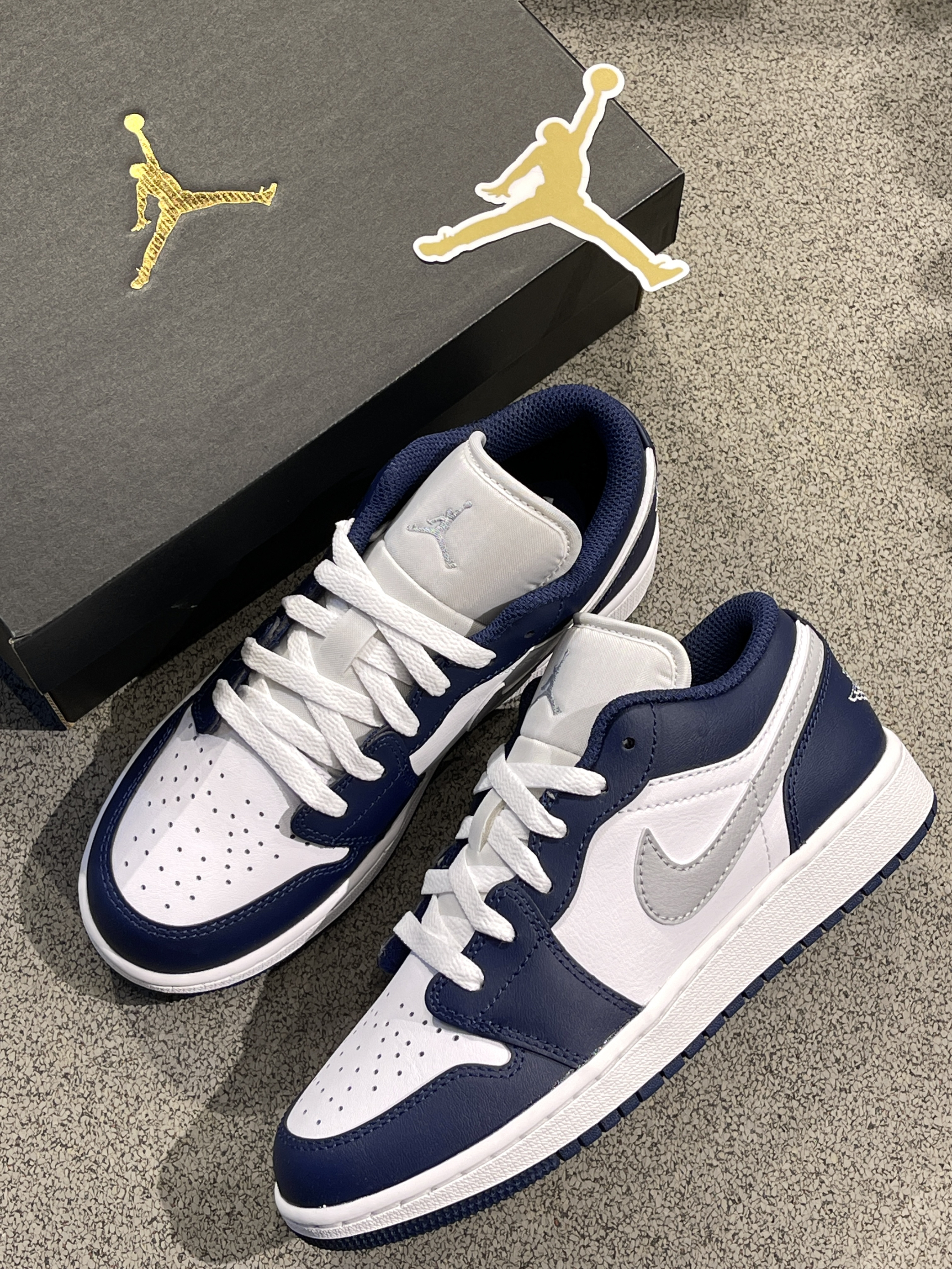 夏日炎炎,一双百搭高级的板鞋不可或缺! Jordan|Air Jordan 1 低帮篮球鞋“灰蓝”🌊,经典aj1低帮鞋型,海军蓝搭配银色swoosh,整体复古感满满,小众又百搭~💠