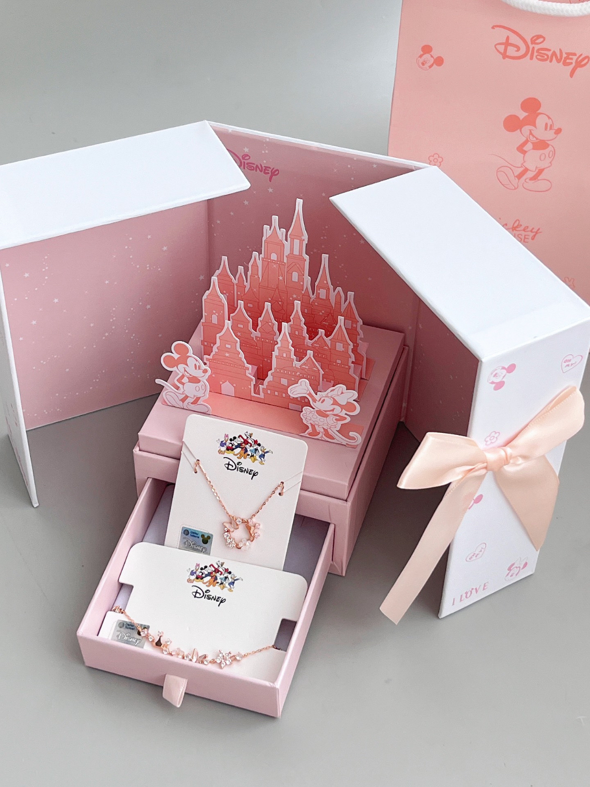 拜托!女朋友真拒绝不了迪士尼啊啊好可爱的礼盒~ 居然是粉嘟嘟的城堡呢我觉得好适合女孩子里面有项链手链 日常戴起来还挺好看的我感觉生日送她也不错 七夕送女友是一个很不错的礼物哦