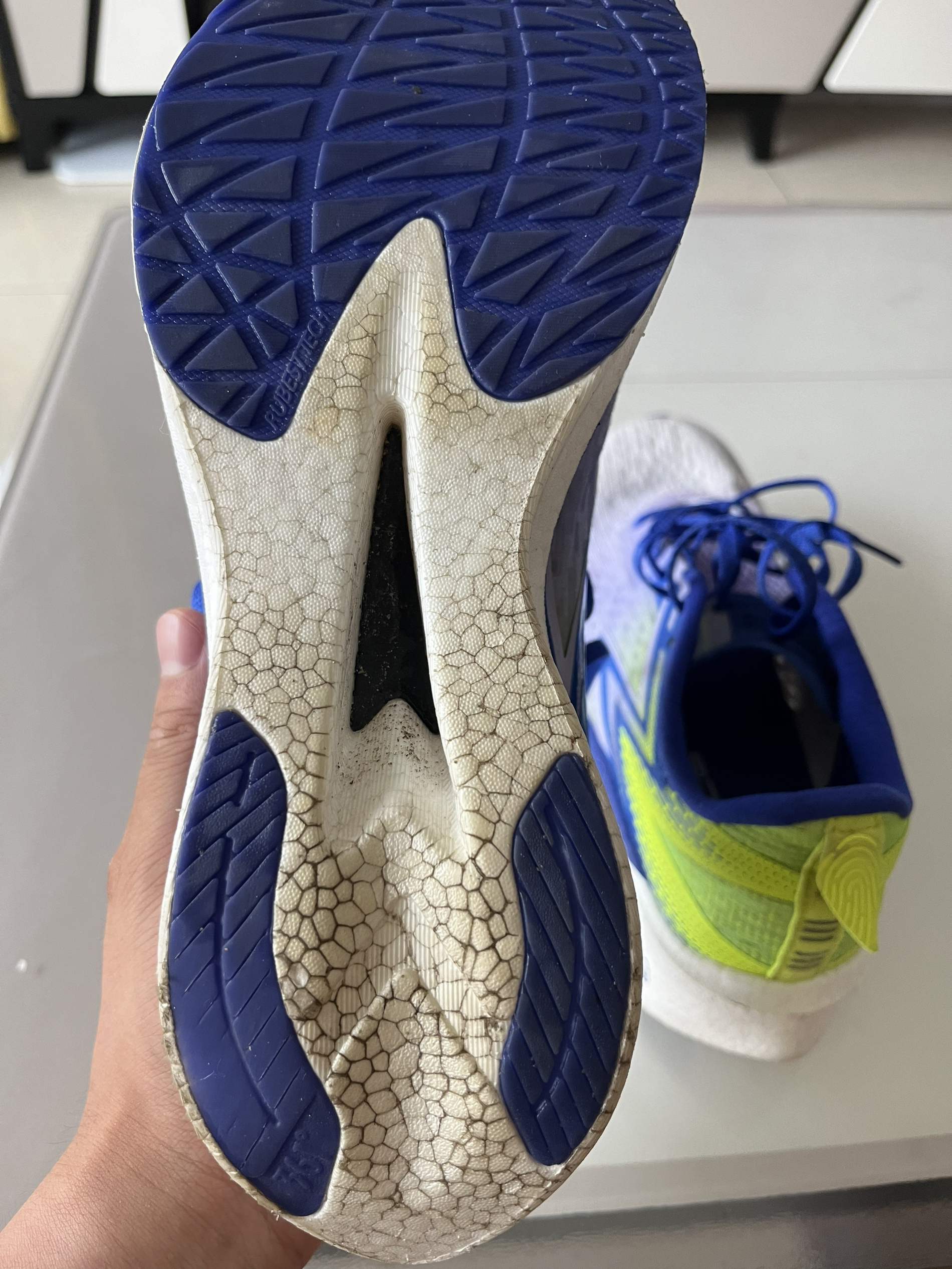 这是一双曾经又爱又恨的鞋 入手时第一时间上脚,脚感极差,中底很硬,感觉不到任何弹性,知道200公里左右的时候才感觉到弹,原来是我之前体重还大,配速不快,所以感觉哪哪都不对,现在我在间歇速度跑时,会穿这双鞋,对于一双竞速训练鞋,虽然42码单只252克的数据不算太好,但是这个价位,这个兄弟素质真的还可以的 个人感受配速530以内的速度跑这双鞋都可以胜任,如果你要6分外慢跑还是不要选了,尺码准确,正码正...