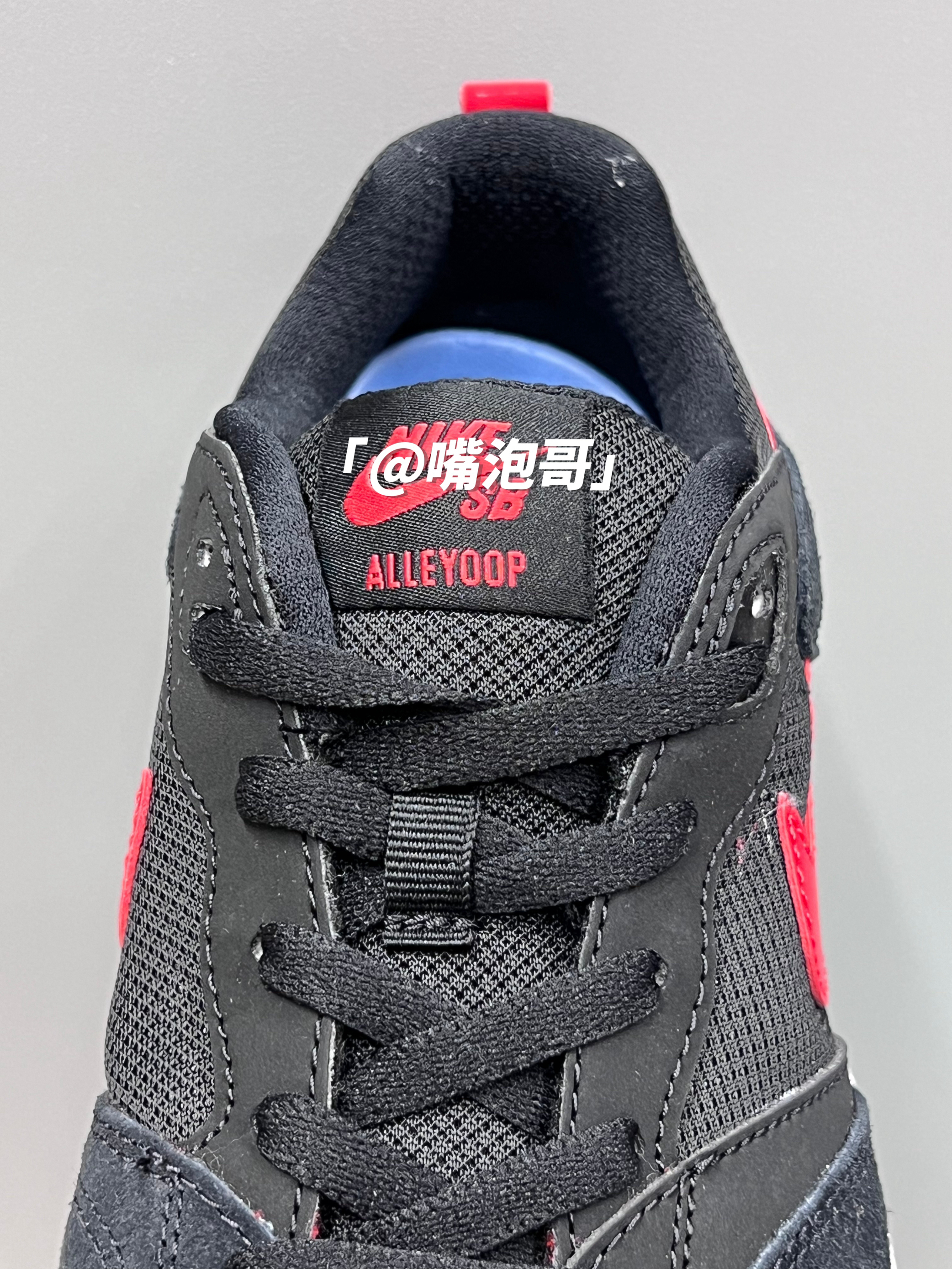 👟:SB Alleyoop 黑红 简介: 鞋款是一双低帮的休闲板鞋,鞋子整体的外观配色还是很亮眼的,采用了黑红色为主,同时又加入了白色,并且鞋子上脚并没有想象中那么的硬,其鞋垫运用了泡棉材料制作,所以脚感上还是蛮舒适的。 细节: 鞋面采用了织物网布与麂皮的组合,不仅使鞋面具有良好的透气性,同时又增加了质感,鞋身两侧的swoosh选用了红色皮革制作,比较亮眼,鞋垫运用缓震泡棉材料,使脚感...