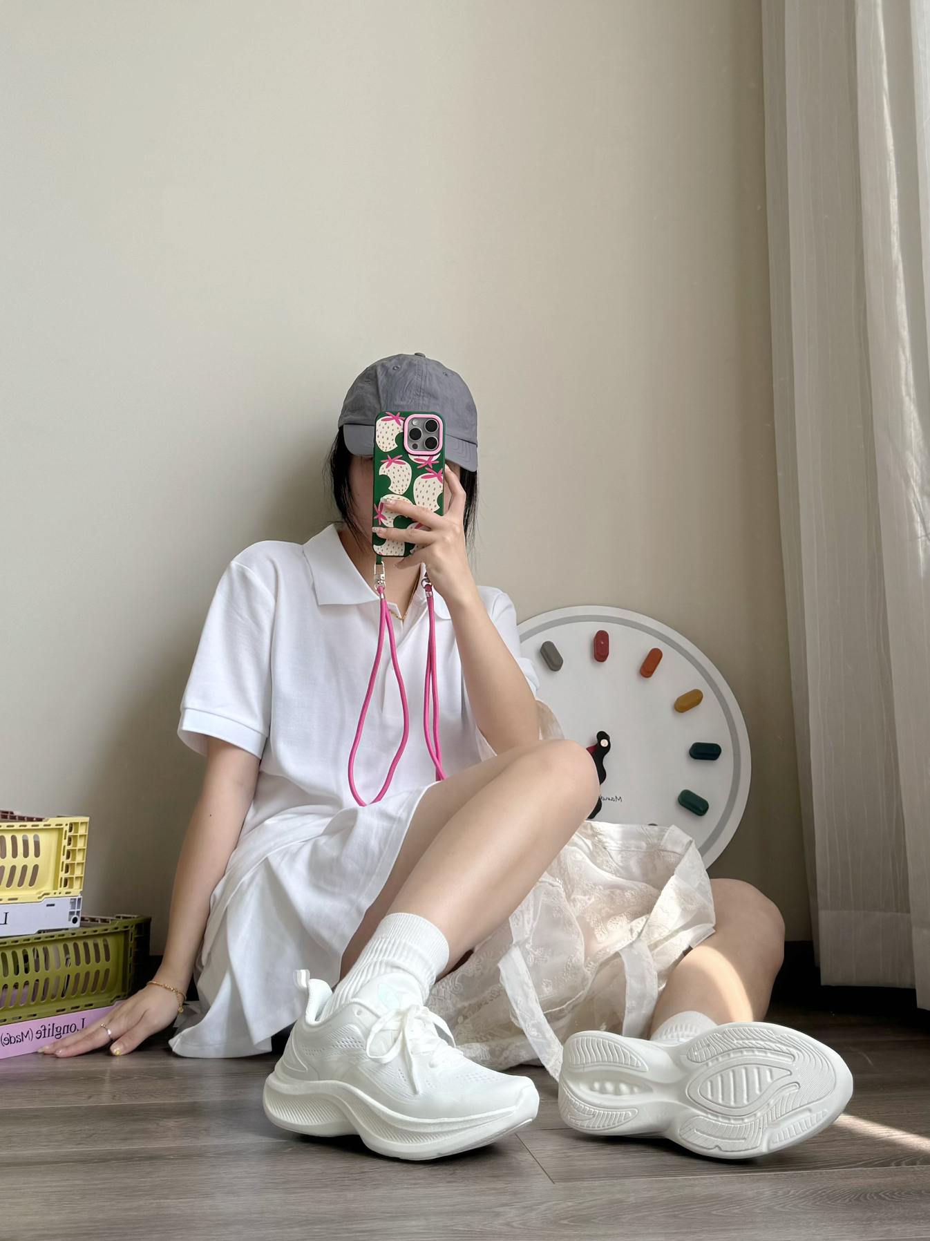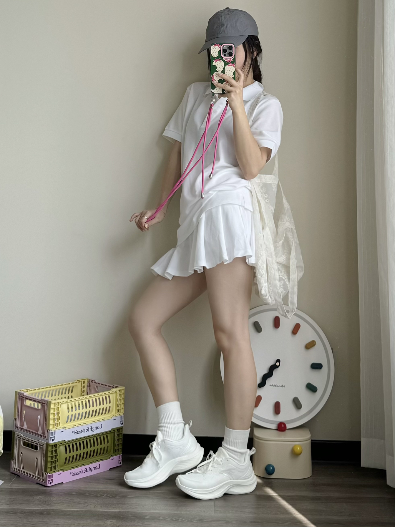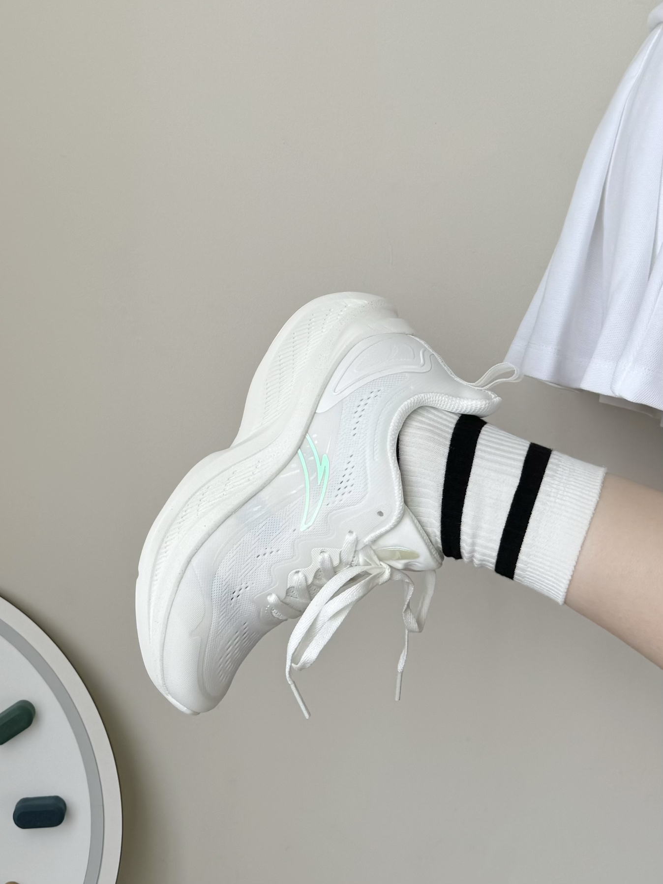 一双闪闪亮的白色跑鞋!! 是属于夏天的奶呼呼配色! 轻薄网面透气舒适~ 脚感蛮轻弹的!包裹性也不错! 白色还超级百搭! 和我所有颜色的运动服都适配诶