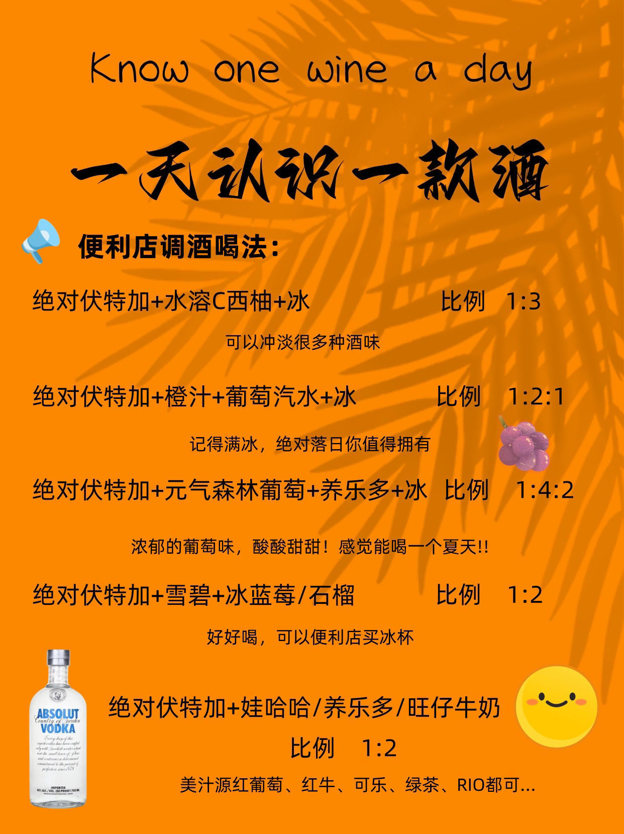 🍻绝对伏特加Absolut Vodka🍻 · ⭐️酒中渣男伏特加,啥都能搭 · 产地:瑞士🇨🇭 度数:40%vol🍺 容量:500ml🧊 类型:伏特加 参考价格:65元/瓶 · 口感:一丝微妙的甜味和小麦的香气,干净清澈,口感圆润。有调酒的地方就有他,新手小白入门首选~ ·🎖️🎖️-品牌故事- 创建于1879年,世界知名的伏特加酒品牌。 1980年代起,绝对伏特加家族不断扩大,陆续增肌了辣椒、柠檬...