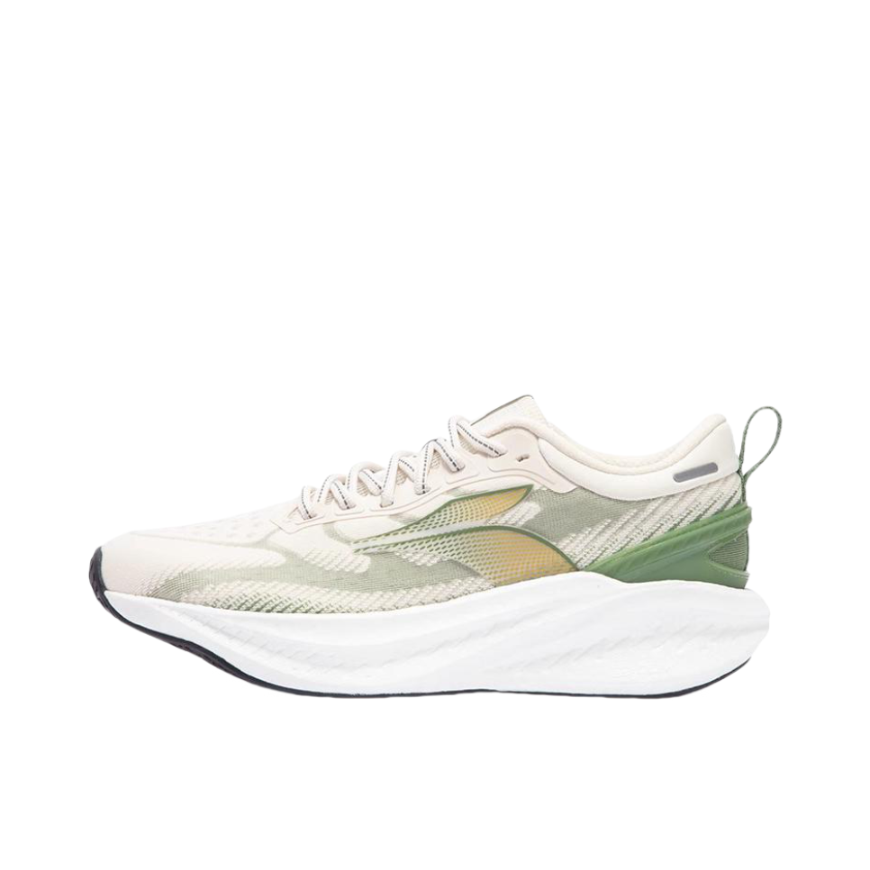 爆沫4这款跑鞋真的太适合我这种大体重的人。整双鞋的鞋脚一体性不错。后掌超过了30毫米,缓震感很明显,中底加厚的脂肪族超临界发泡材料,缓震上限很高。 前掌上翘设计增强了滚动推进,引导后跟到到前掌的流畅力过度,提升步幅。中足有一块引导灵活弯折,跑动中支撑也很稳。 而且三潭印月的配色很清新好看,夏天穿着给人一种清爽的视觉感。