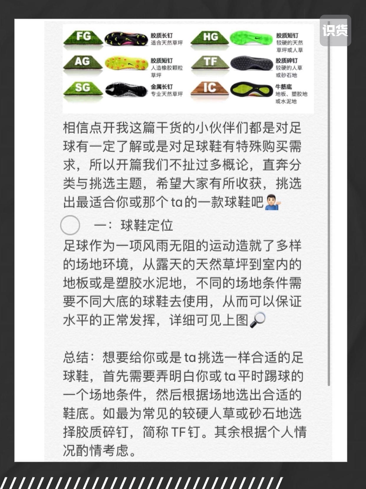 【足球鞋应该怎么选?⚽️🤔 】,由用户 团长说鞋 分享,来自江西。这是一篇来自识货社区的真实用户分享笔记。
