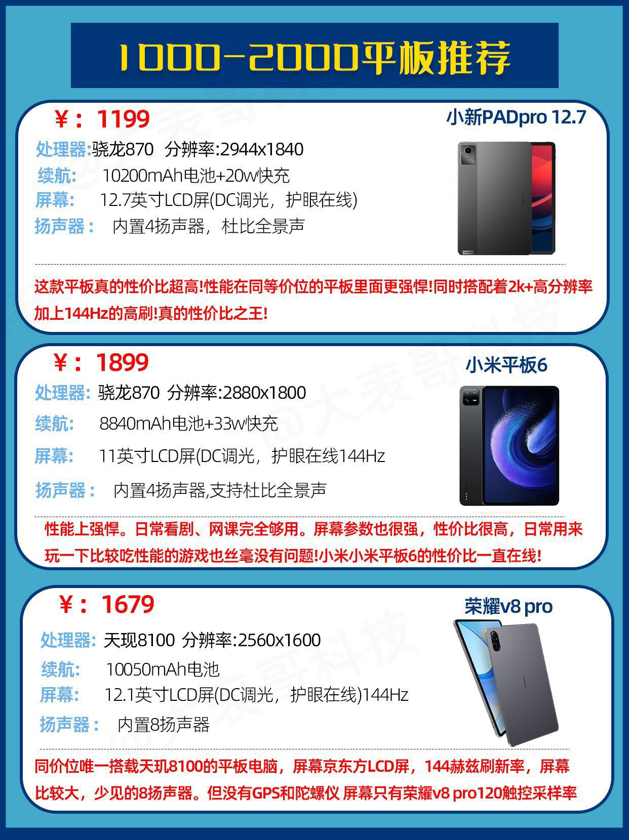 【1k~3k的平板选购指南】,由用户 @大表哥数码 分享,来自陕西。这是一篇来自识货社区的真实用户分享笔记。