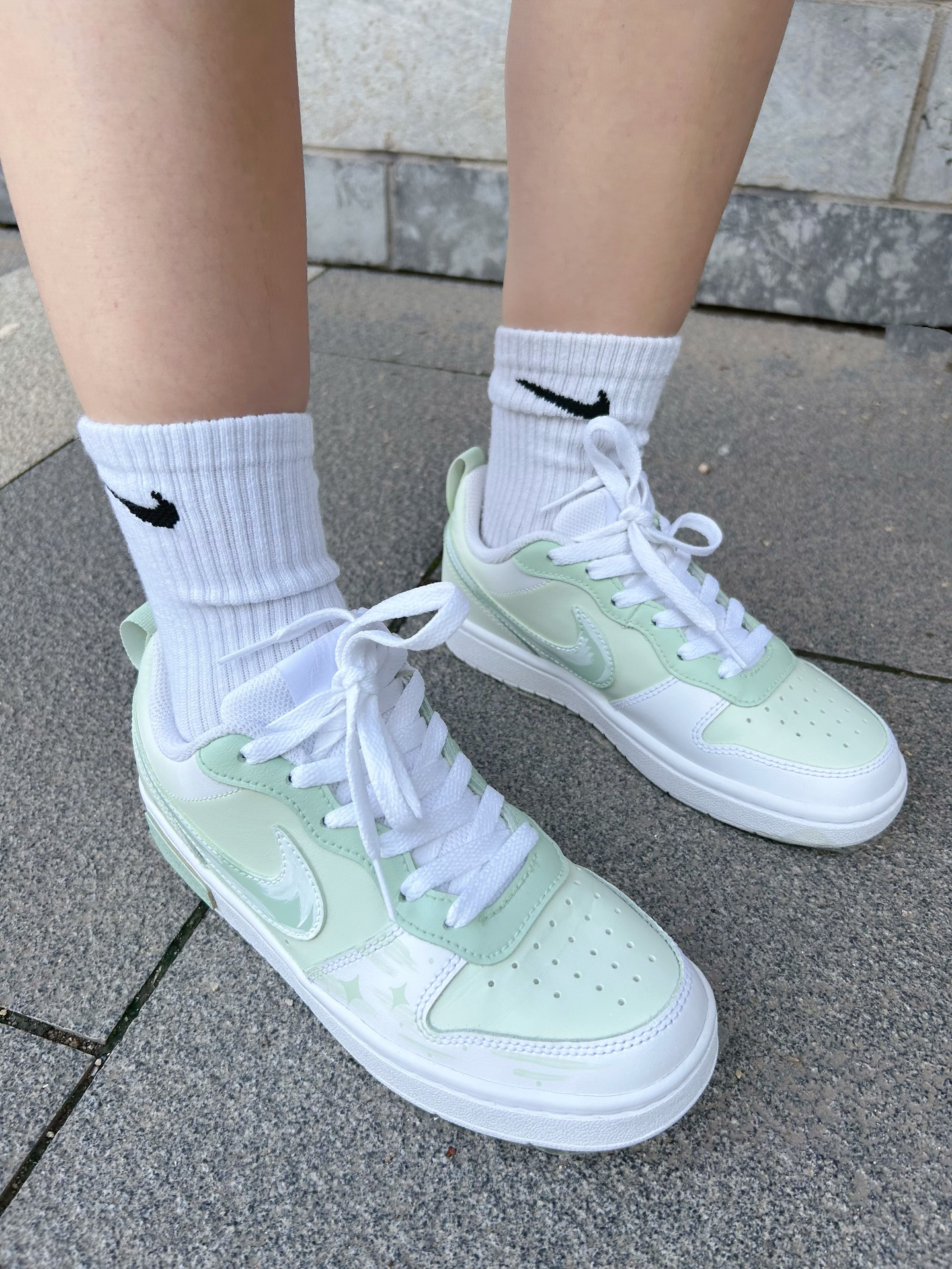 还得是定制鞋👍🏻 走在街上根本不会撞鞋 谁还能看出来是基础款的nike court 🤣 夏日bi备 穿上就感觉降温了 🍃 Logo像油画的笔触 更有立体感 鞋后跟带个小标 整个鞋子细节满满 😙 #我的夏日通勤搭子 #这鞋细节太加分 #nike定制 #百搭休闲宝藏球鞋分享 #夏日甜妹板鞋穿搭