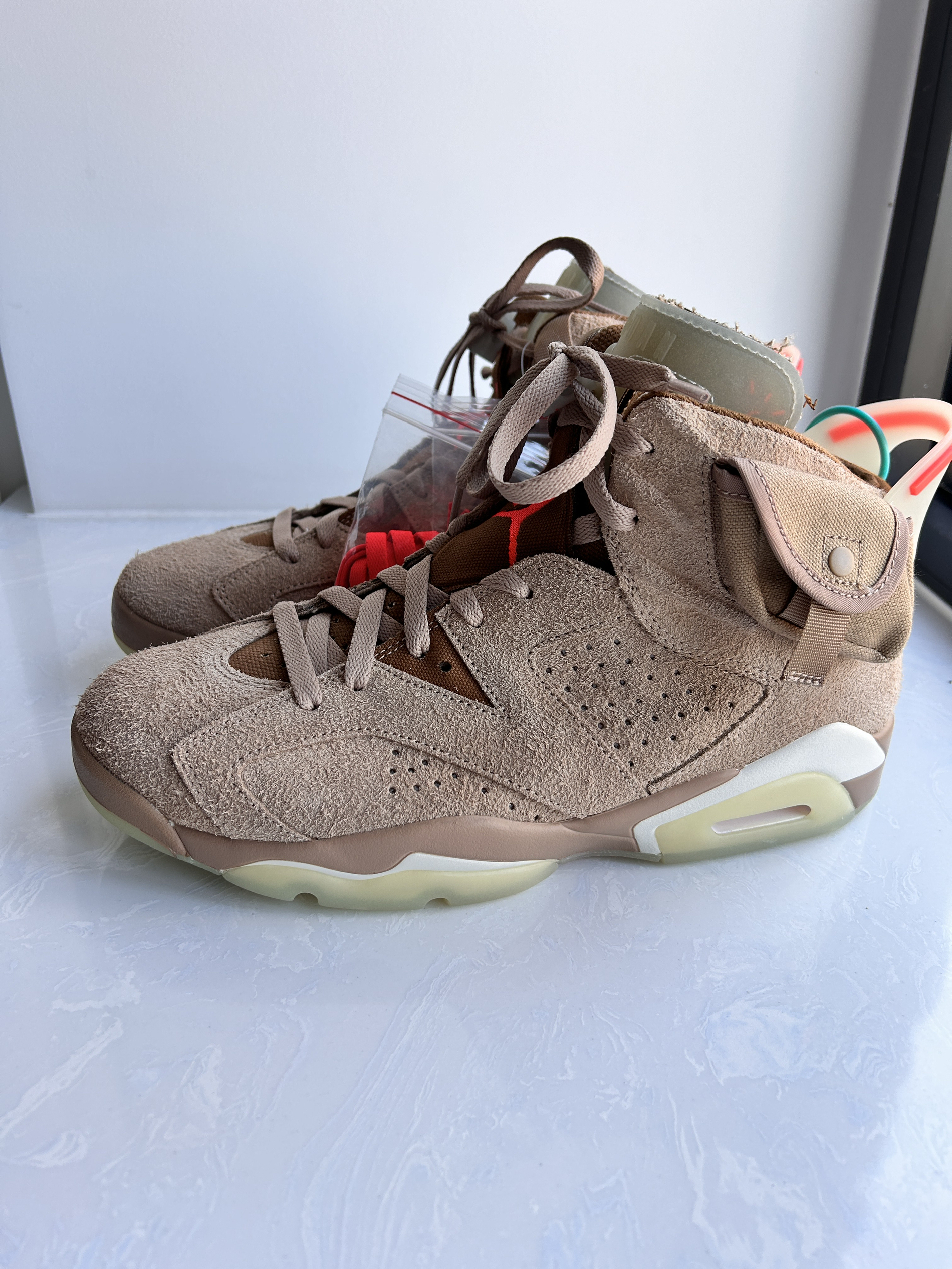 本篇笔记关联了Air Jordan 6 运动休闲鞋 复古耐磨防滑缓震支撑合成革 Travis Scott联名/卡其等商品,为用户提供真实的使用体验和购买参考。