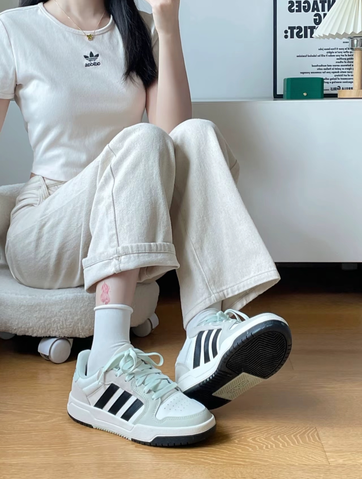 尾部黑标adidas点缀 鞋口清新绿的颜色 如果不选择今年火爆的samba那就来看看这款neo吧!