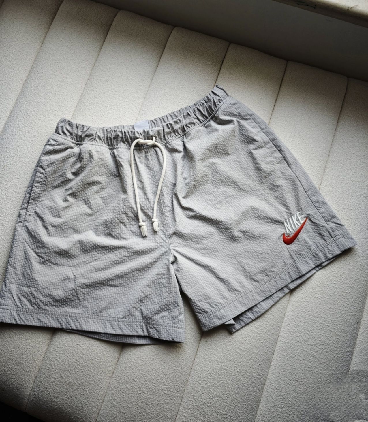 夏日短裤推荐 松弛感拉满的一条短裤 薄厚适中,而且浅色短裤搭配任何T恤感官上都显得更清爽。 细节也很不错,刺绣swoosh,铁质拉链,粗绳感的裤绳都很有亮点。 #浅色系穿搭#宝藏运动短裤分享#短裤穿搭不重样#谁说短裤不潮流#必入短裤分享 Nike Sportswear纯色Logo微 相西