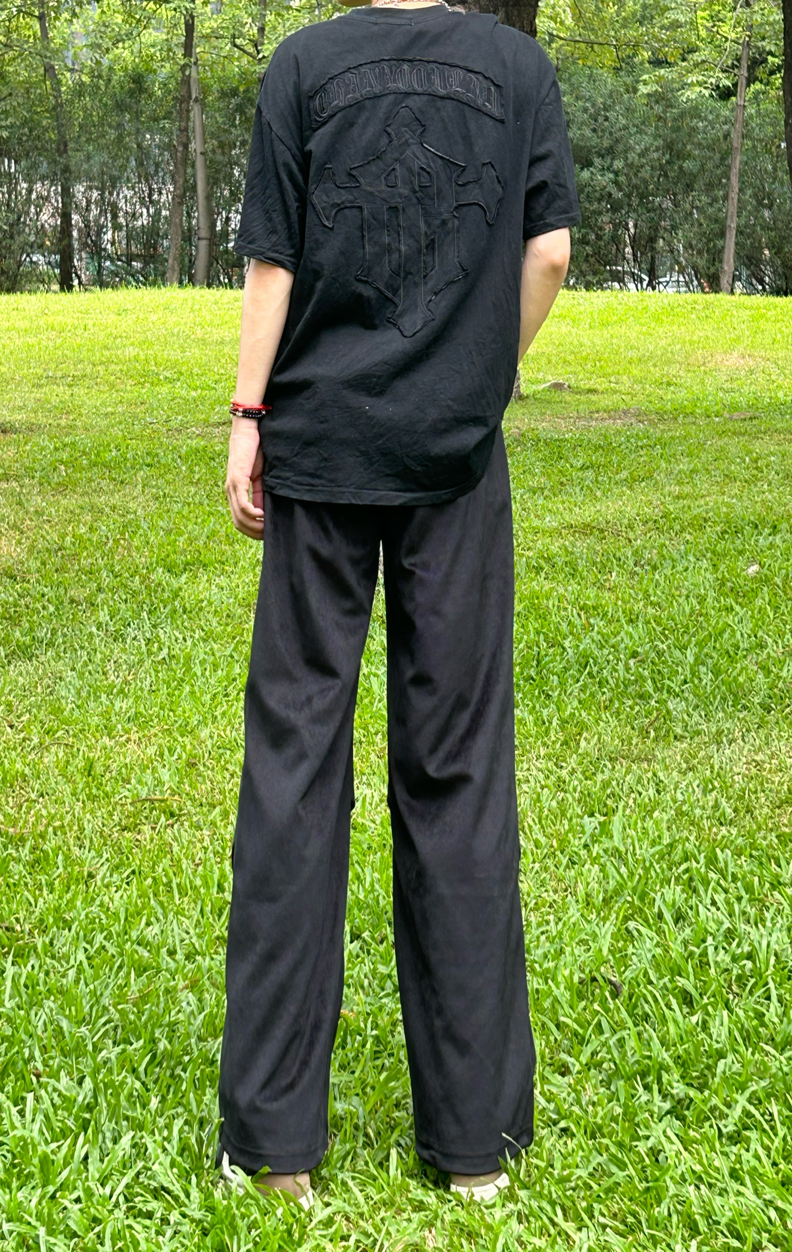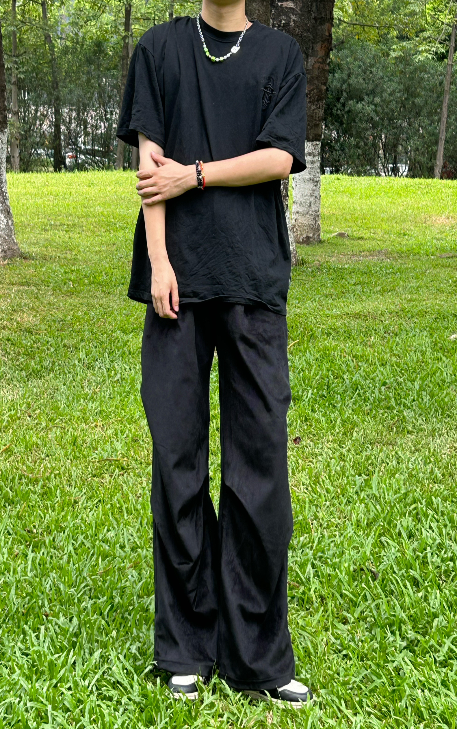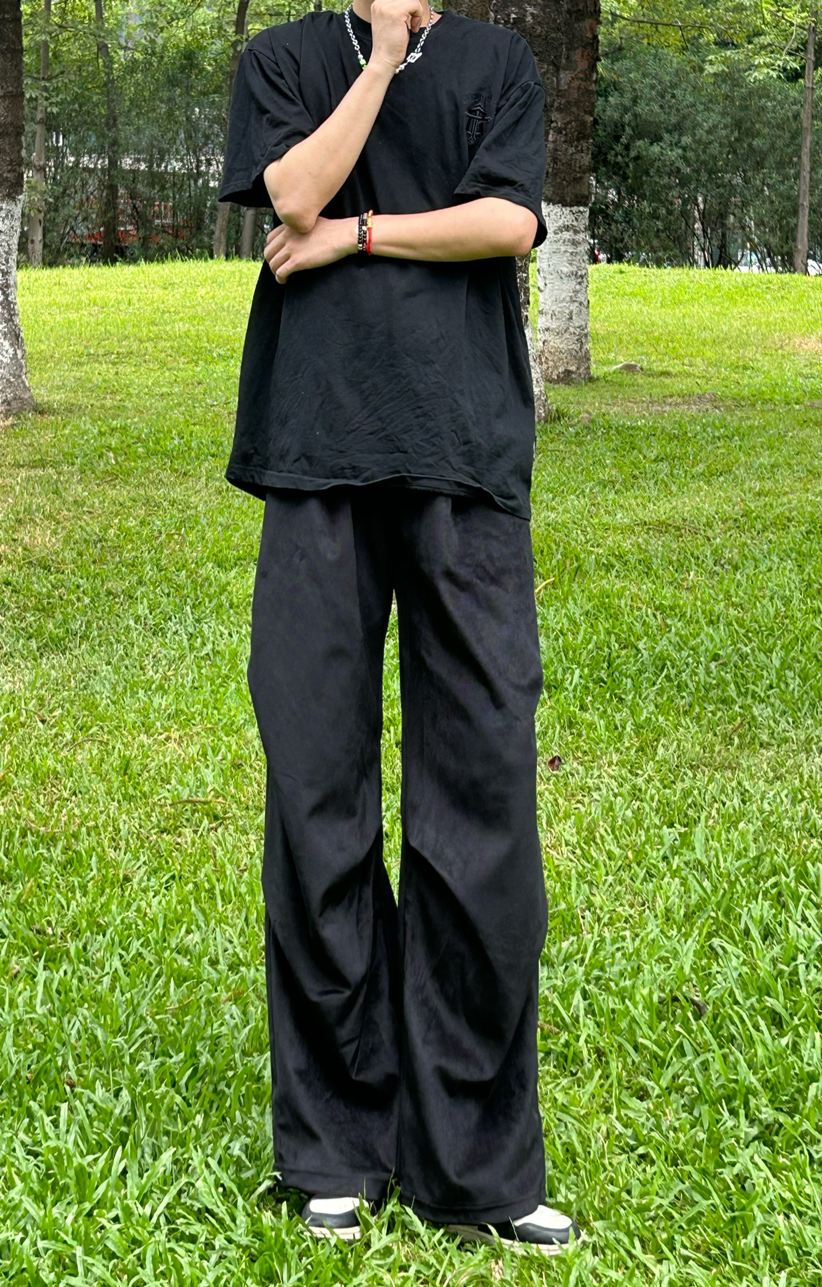 身高|体重:180/60 XL 👕:上衣穿的是一个暗纹印花的短袖 👖:搭配 OBJHG 家的一个褶皱长裤,裤子偏大,不喜欢太大的宝子们可以买小一码爸这款褶皱长裤的设计真的很好完美遮盖腿上的肉垂坠感也很强,纯色百搭,即可休闲也可酷酷的