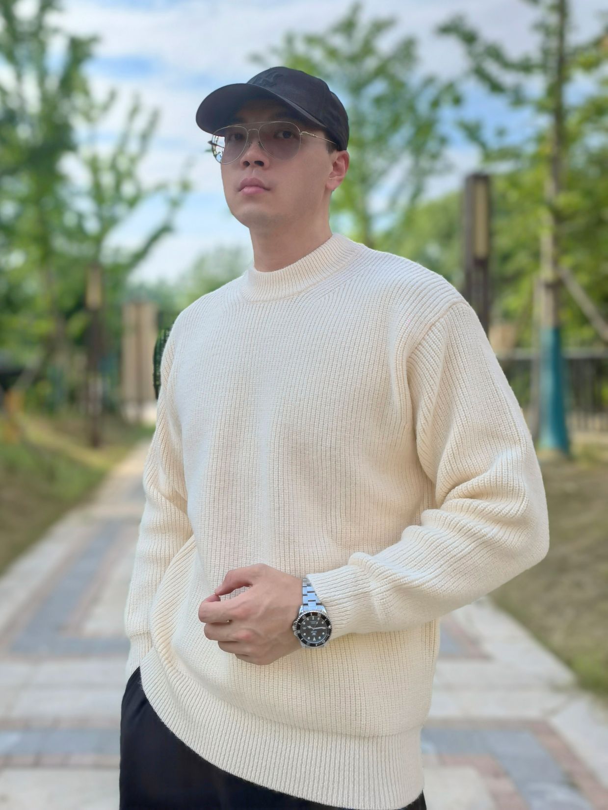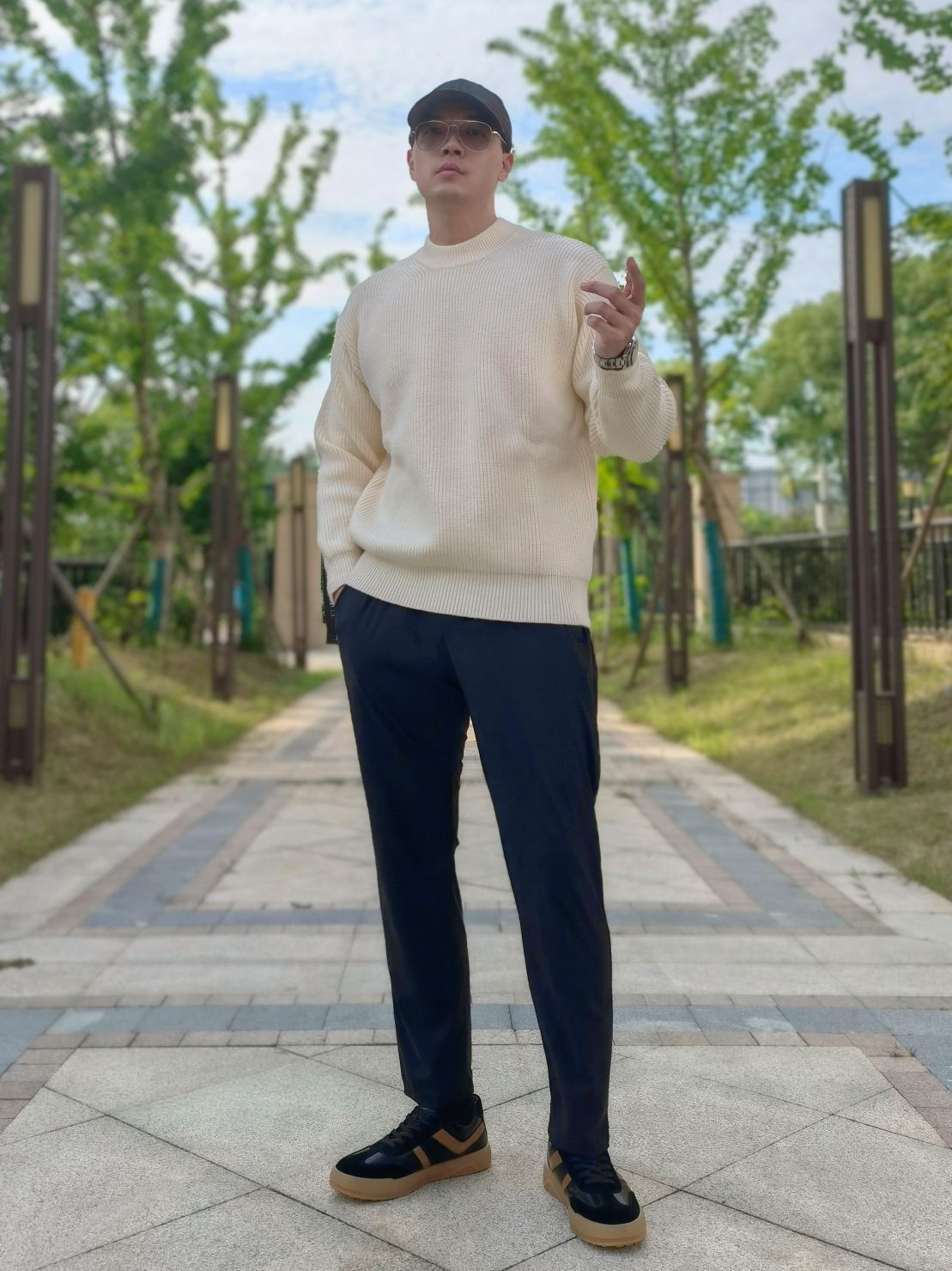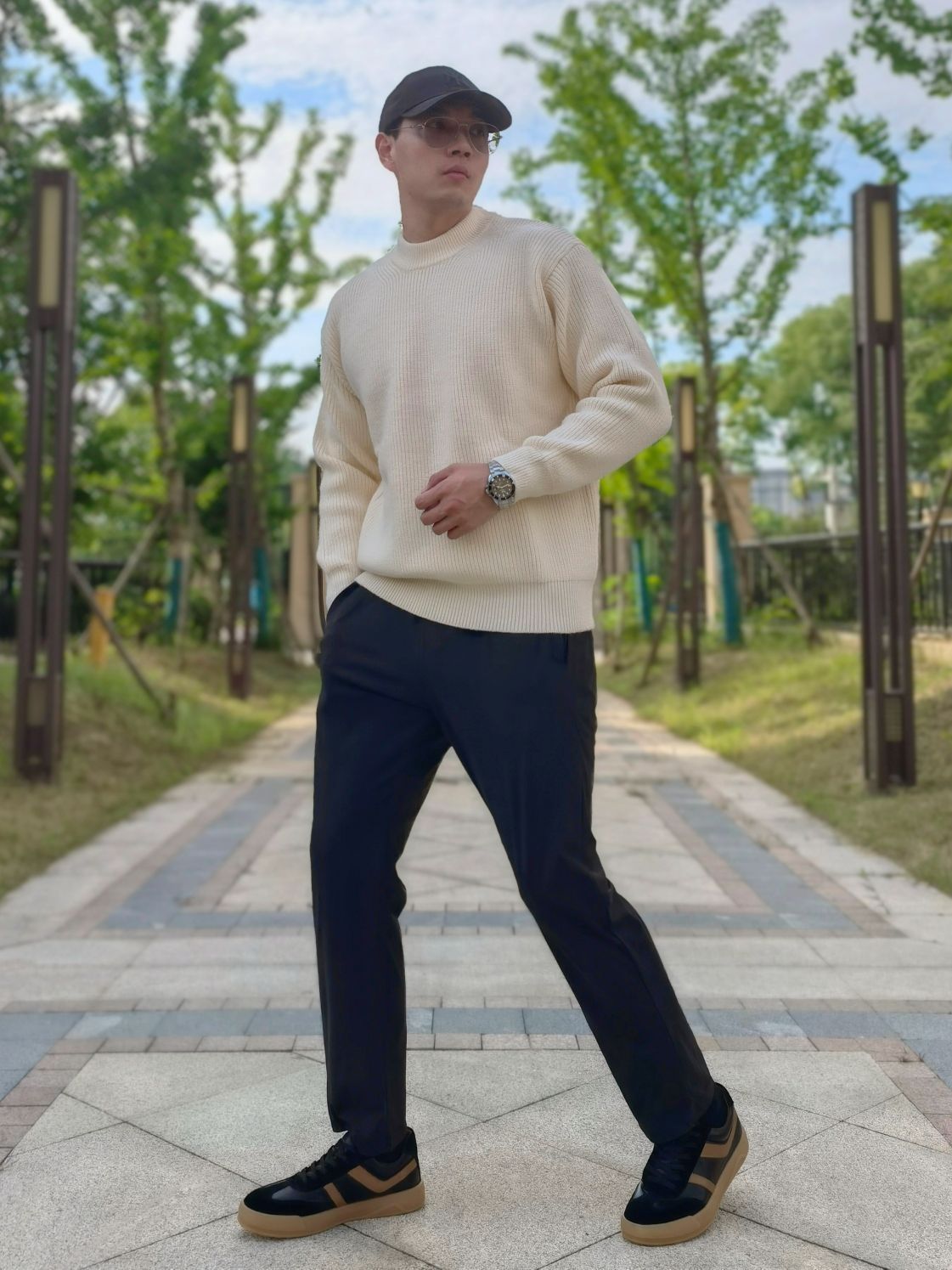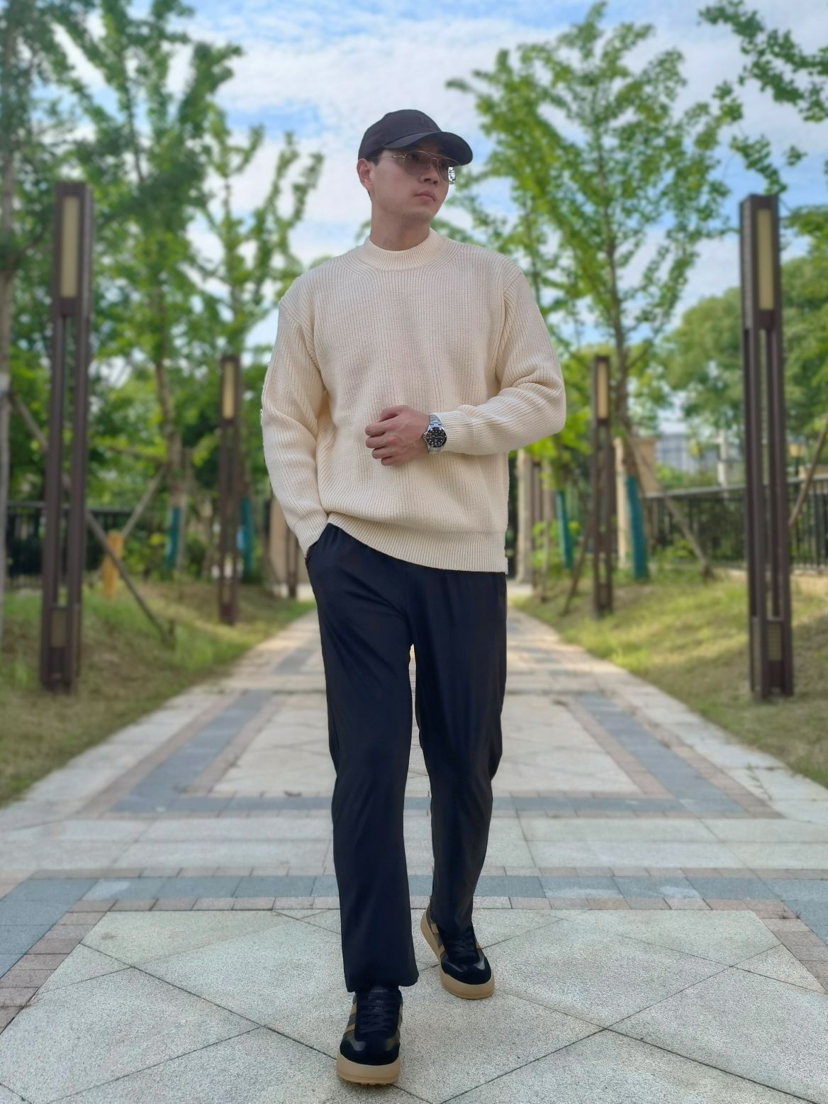hello 大家好,这里是撒旦锅锅 💜179cm/80kg 🌞今日穿搭为休闲风格 搭配类型:毛衣+休闲裤+休闲板鞋 上身搭配一条杏色毛衣,宽松版型上身很舒服,下身搭配黑色休闲裤,最后选择一双都彭黑色休闲板鞋,皮质很高级,时尚百搭,整体穿搭休闲感十足,值得推荐💞