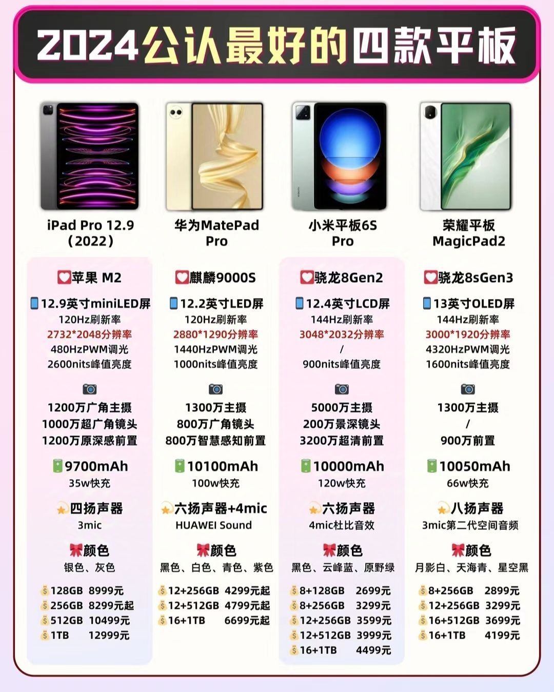 本篇笔记关联了vivo Pad3 Pro 2024款 13英寸 平板电脑 智享版 巨幕 144Hz护眼屏 11500mAh电池 学习 蓝晶 大屏幕 超旗舰 春潮蓝、MI/小米 PAD 6S Pro 2024款 12.4英寸 平板电脑 快充 键盘式 网课 学习 大屏 二合一 触控 原野绿、iQOO Pad 2 Pro 2024款 13.1 英寸 平板电脑 智享版 蓝晶 旗舰芯 电竞屏 144Hz超感巨幕 学习 护眼 银翼等商品,为用户提供真实的使用体验和购买参考。