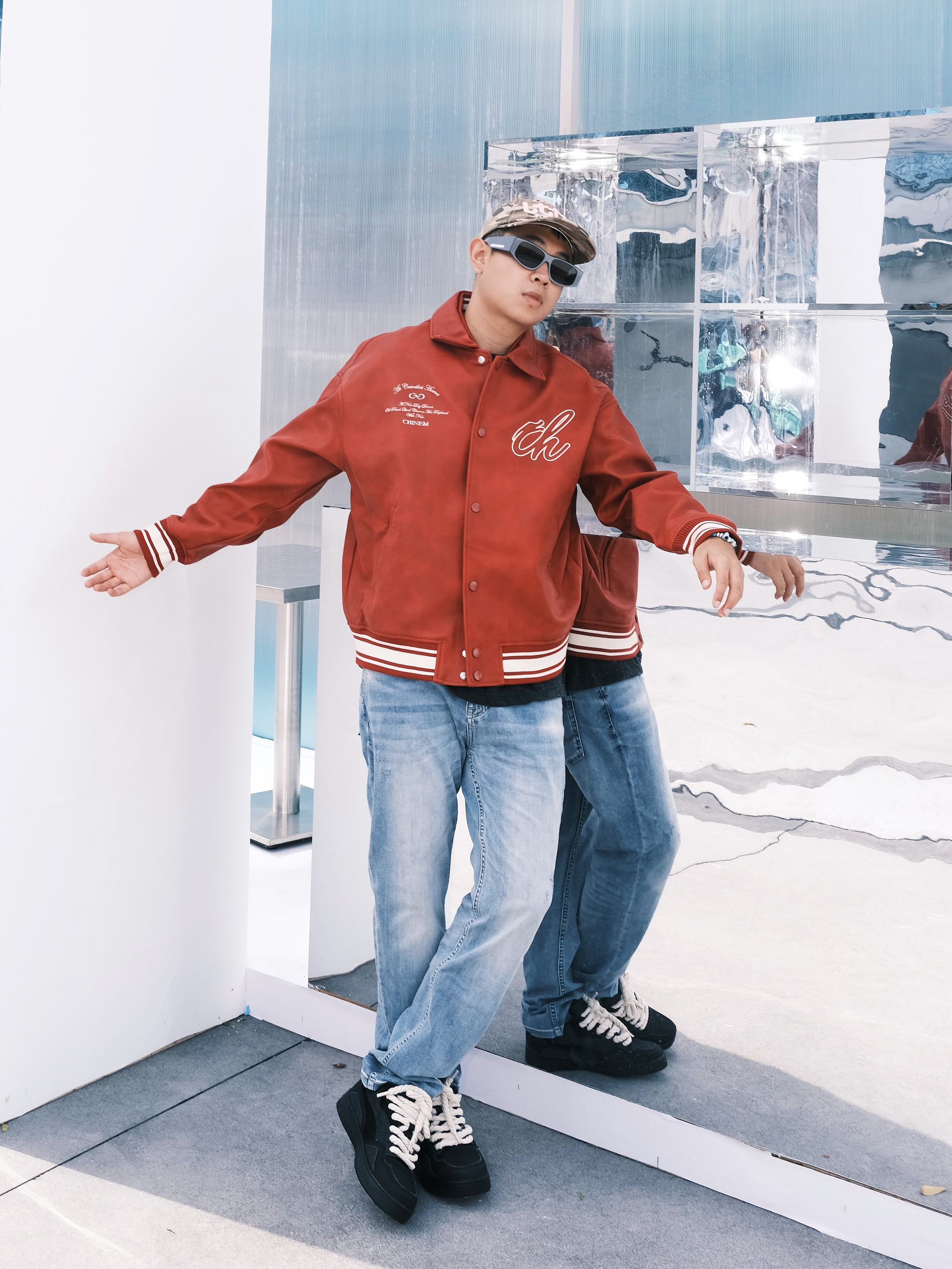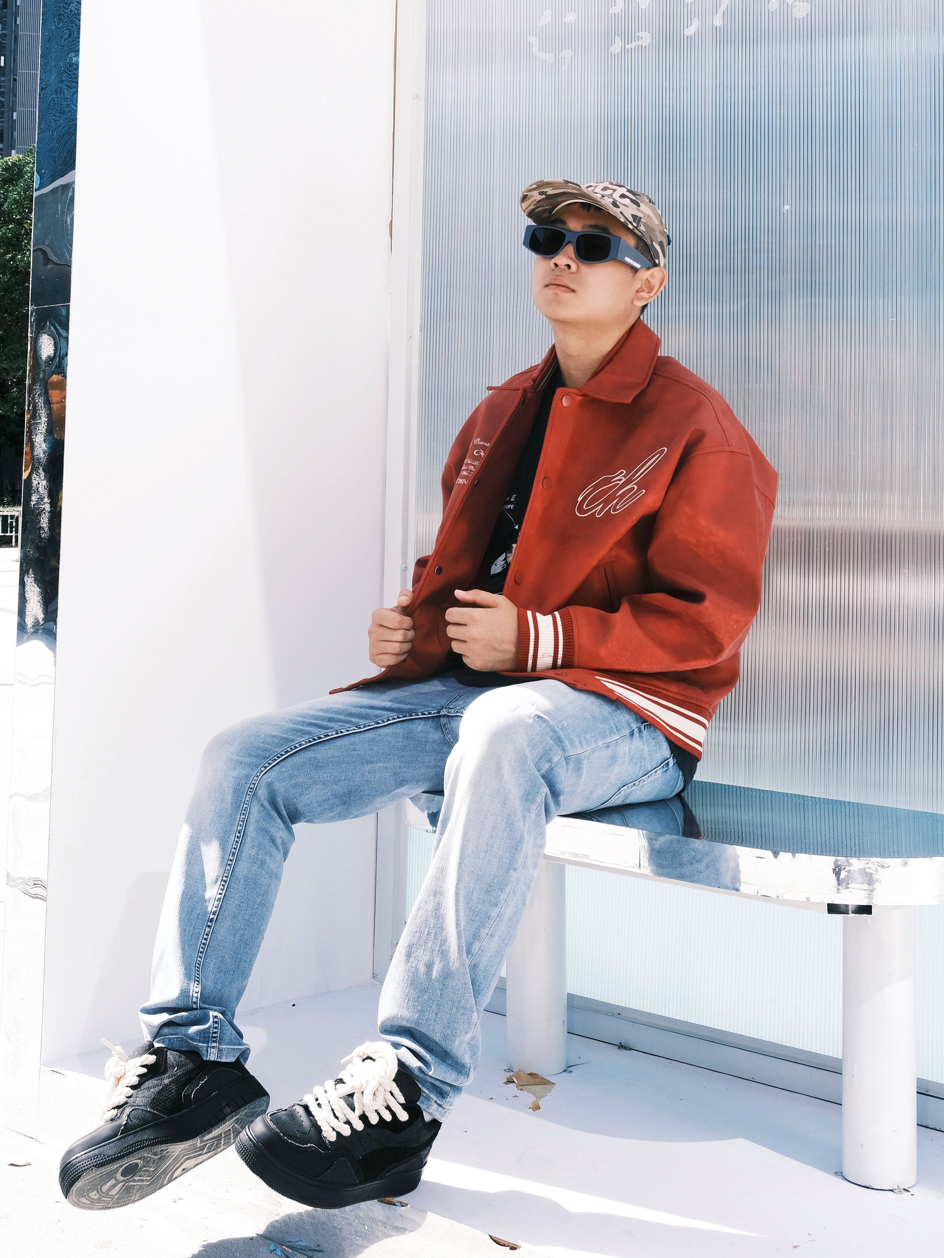 哈喽哈喽 欢迎来到睿汀的频道📻 棒球服妥妥的少年感利器 红色棒球服自带阳光开朗属性 配合一条破洞牛仔裤和一双黑色复古板鞋 简简单单5G入秋 今日LOOK🏷 🧢 lttt 👔 CHINISM 👖 卡宾 👟 Flange Bullo法兰布洛