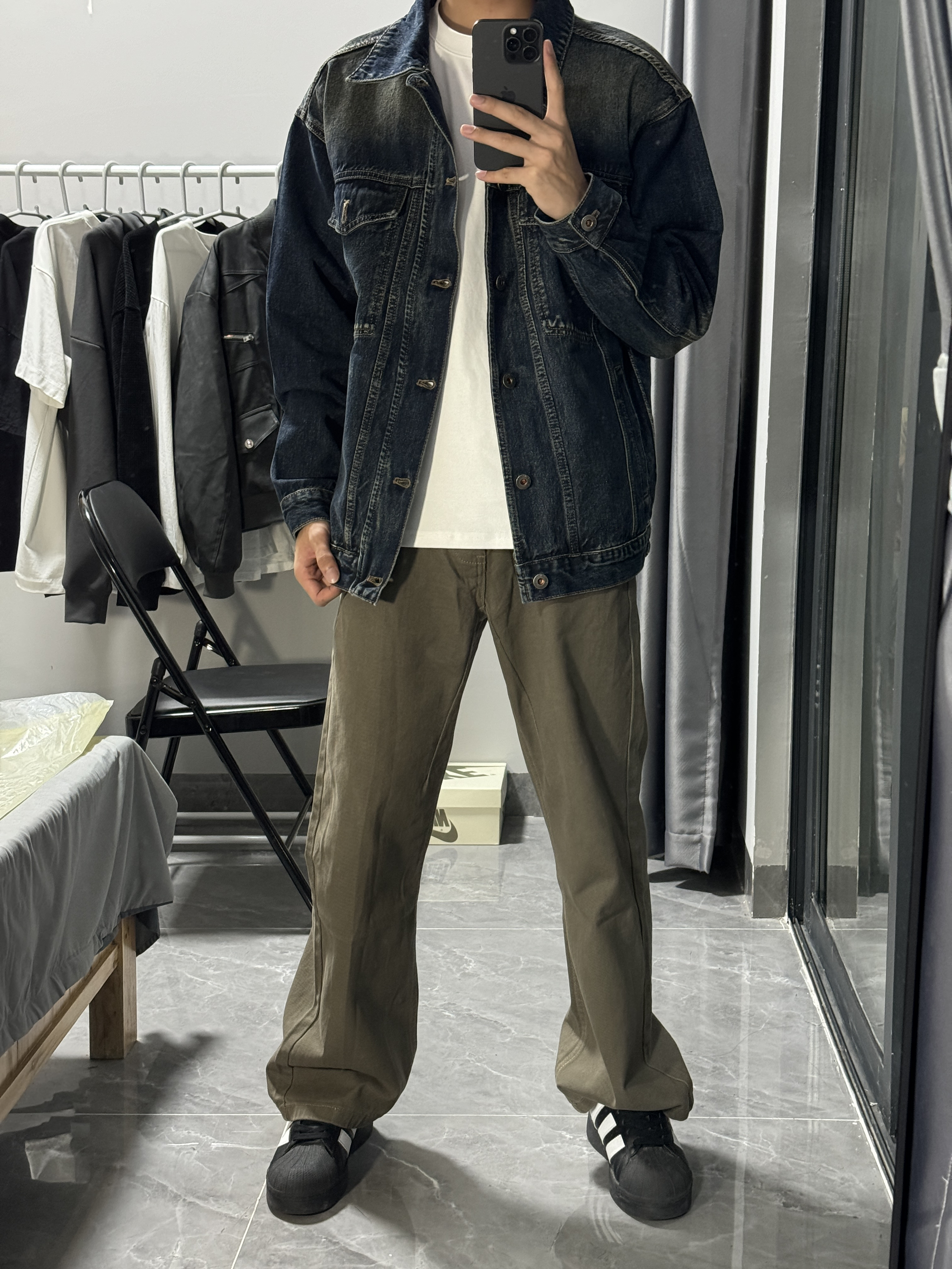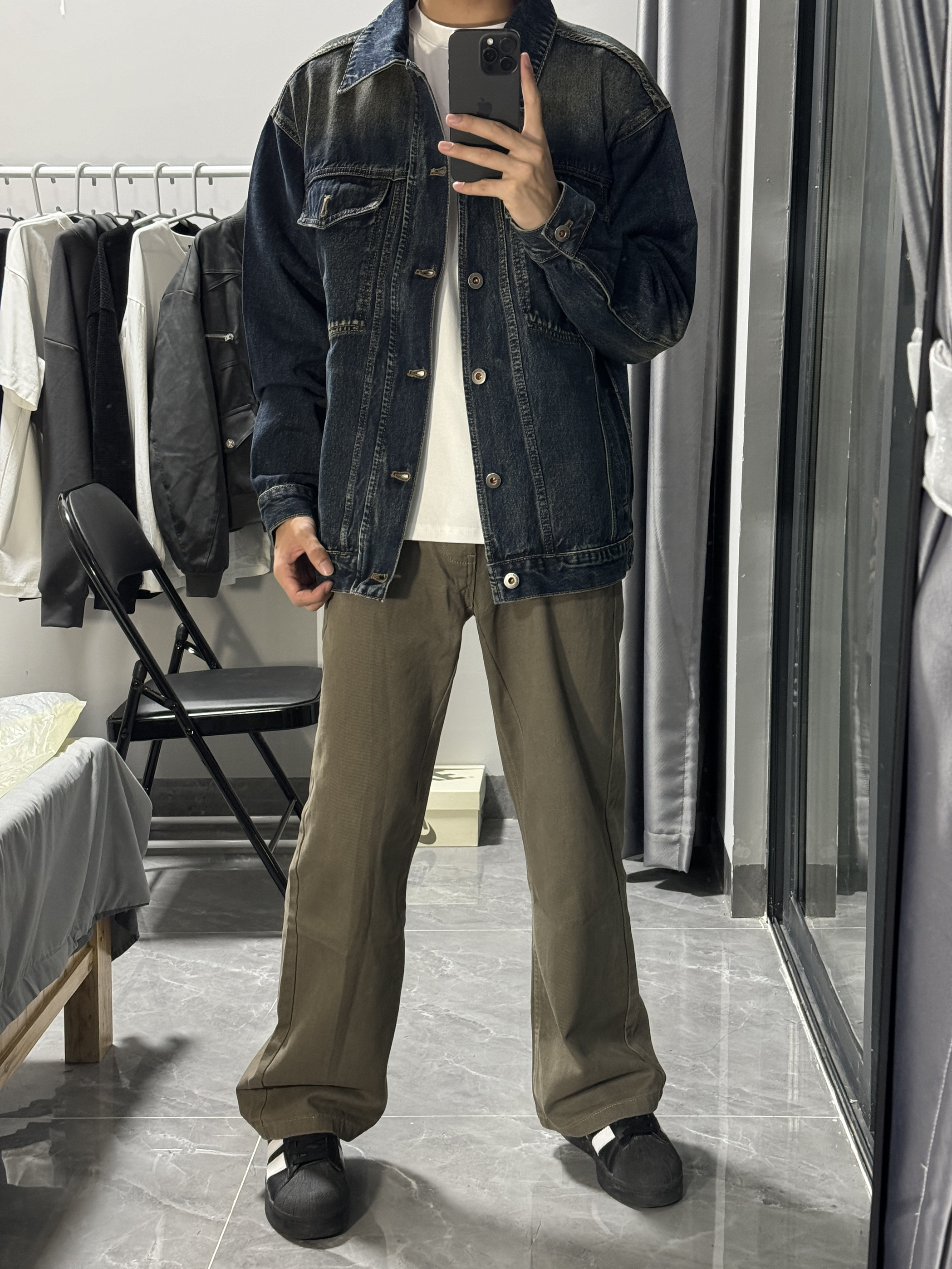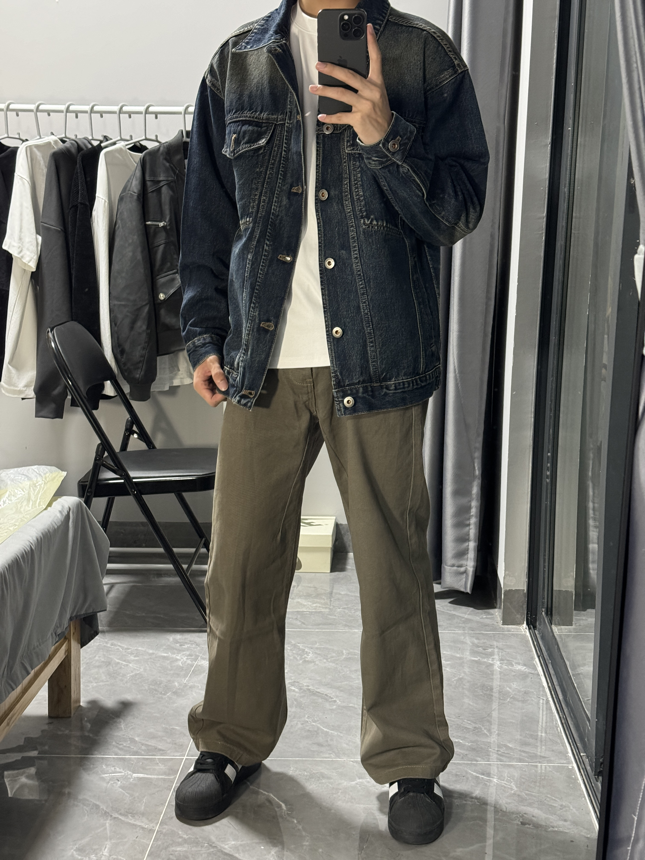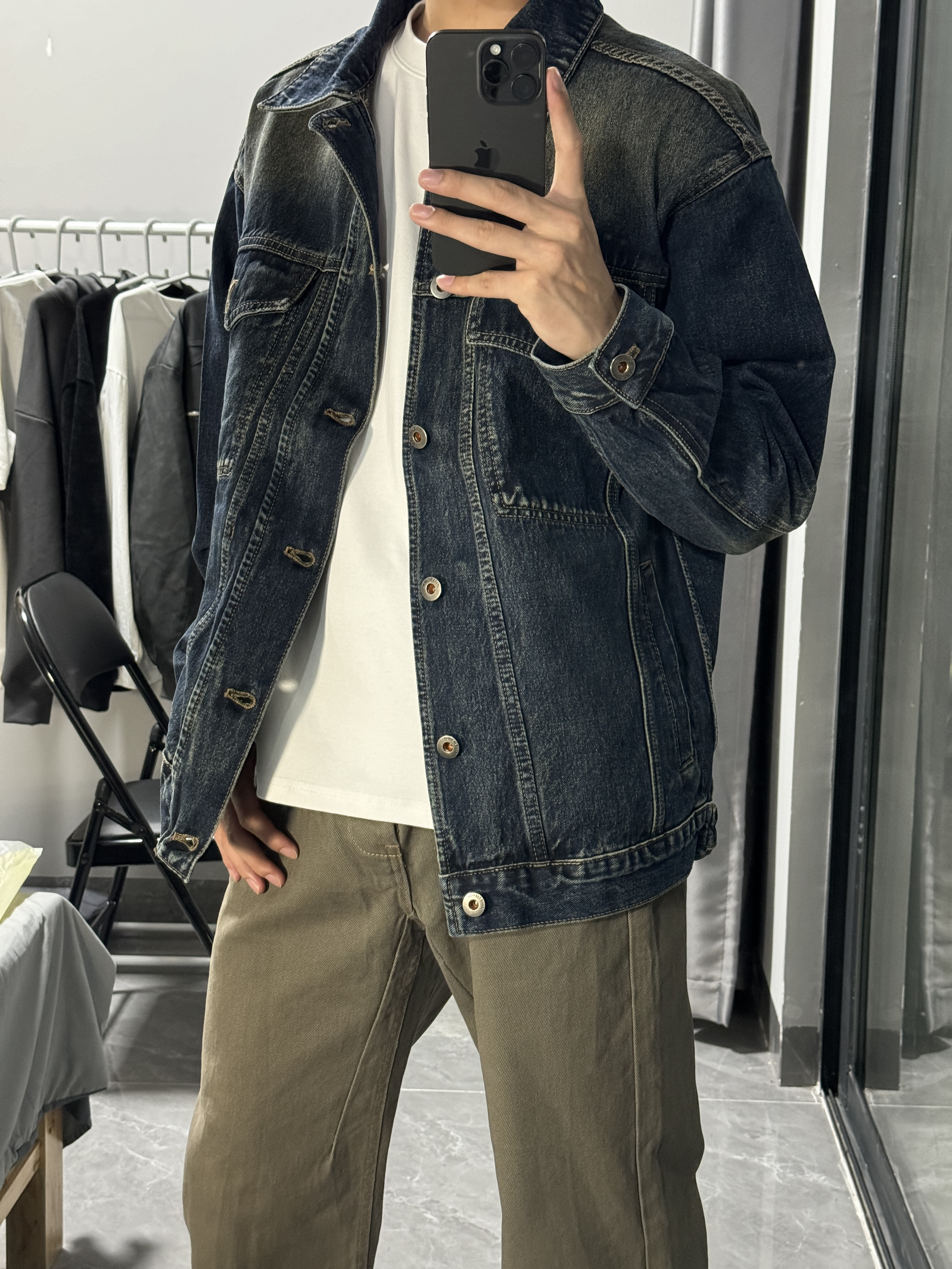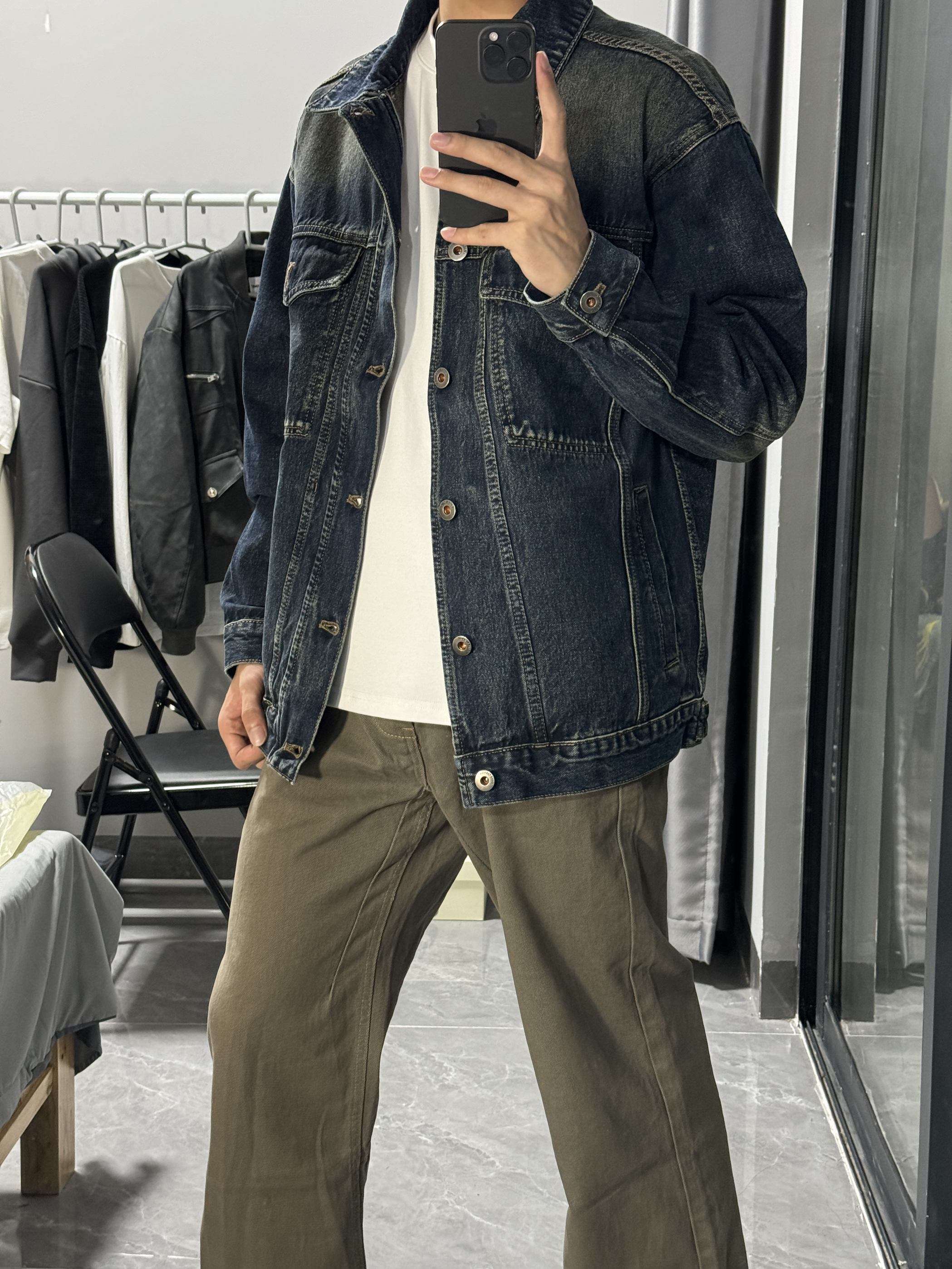 -上衣 复古宽松简约牛仔外套,经典百搭的款式。我上身的是很怀旧的蓝色,一看就是经典又时髦的款式,复古潮流风。外套面料很有质感,上身效果有型显气质。 -裤子 卡其色复古简约直筒牛仔裤,低调沉稳的款式受到很多人喜欢。简约大方很适合通勤出门穿搭。直筒的版型设计遮肉显瘦,很好修饰腿型,一款不错的裤子。 #宽