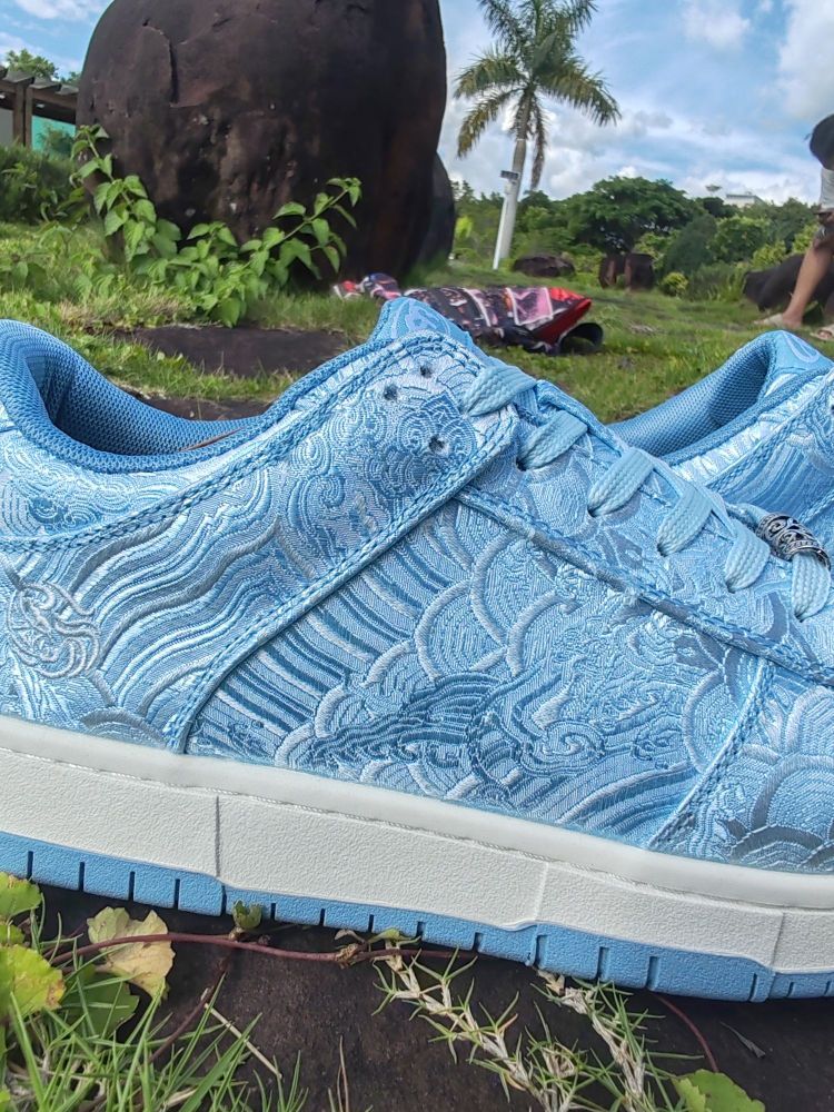 只需百元出头,即可入手。 鞋面精选优质丝绸面料。 金属祥云扣系于鞋带上。 鞋跟处精巧的绣有锦鲤图案,在阳光照射之下,鞋面犹如海面波光粼粼,很是亮眼。