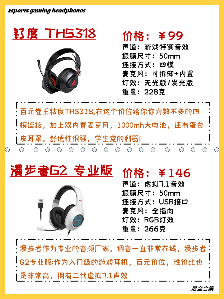618已经过了一段时间了,现在回过头看看游戏竞技耳机的推荐吧 ✅钛度 THS318 百元卷王钛度THS318,在这个价位给你你为数不多的四模连接,加上双内置麦克风,1000mh大电池,还有蛋白皮耳罩,舒适性很强,学生党的利器! ✅漫步者G2 专业版 漫步者作为专业的音频厂家,调音一直非常在线,漫步者G2专业版:作为入门级的游戏耳机,百元价位,性价比也是非常高,拥有二代虚拟7.1声效。 ✅西伯利亚K...