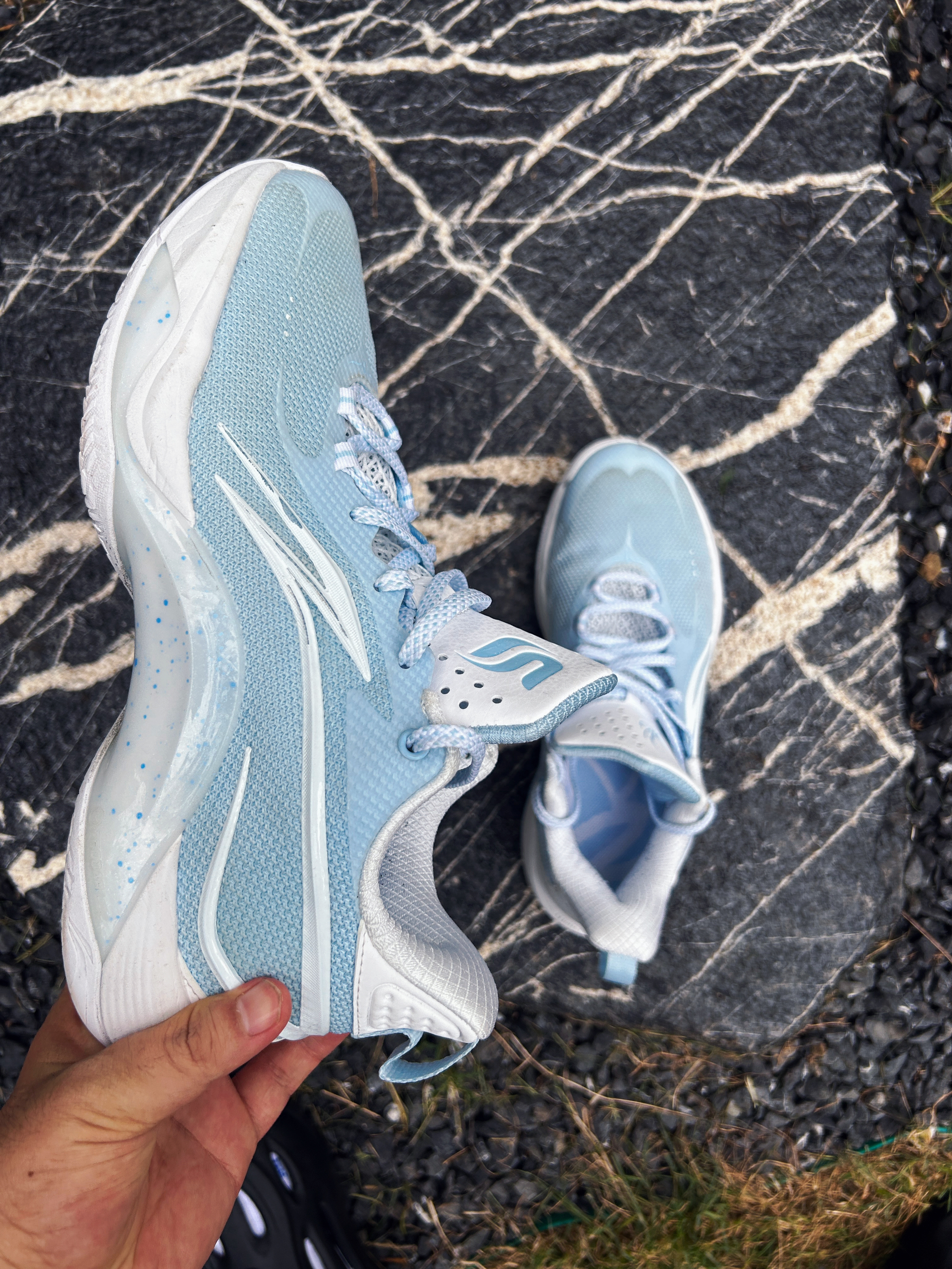 👔先说最大的优点,透气!编织鞋面夏天穿一点不闷脚,质量轻又不失强度,侧蹬地十分兜得住,尺码建议选小半码能给出一个十分优秀的中足锁定🔒,鞋底采用lightfoam plus科技,相比过去总在闪击6上面的原版,这个plus版本明显软和一些,不震脑袋🫴, 鞋底是李宁线上标配tuff rb的橡胶十分很耐磨,🥸🥸抓地性能也是中规中矩,还有一个最大的亮点就是这鞋子配色多,而且都是淡色系,十分适合配成鸳鸯和夏季...