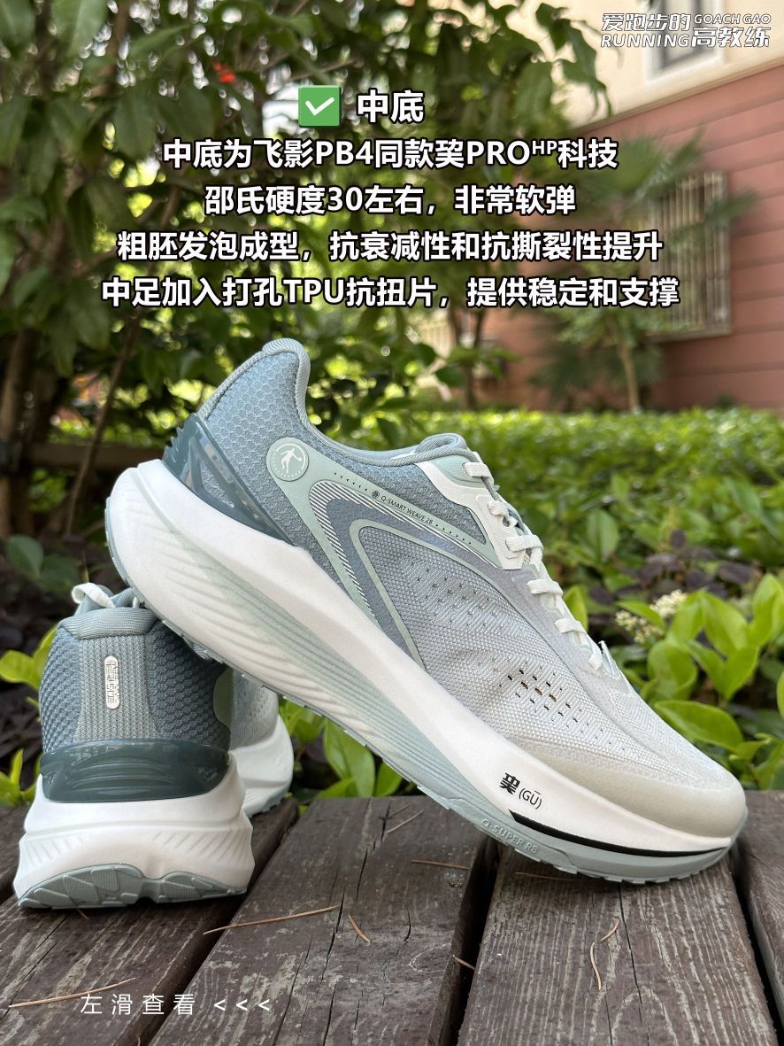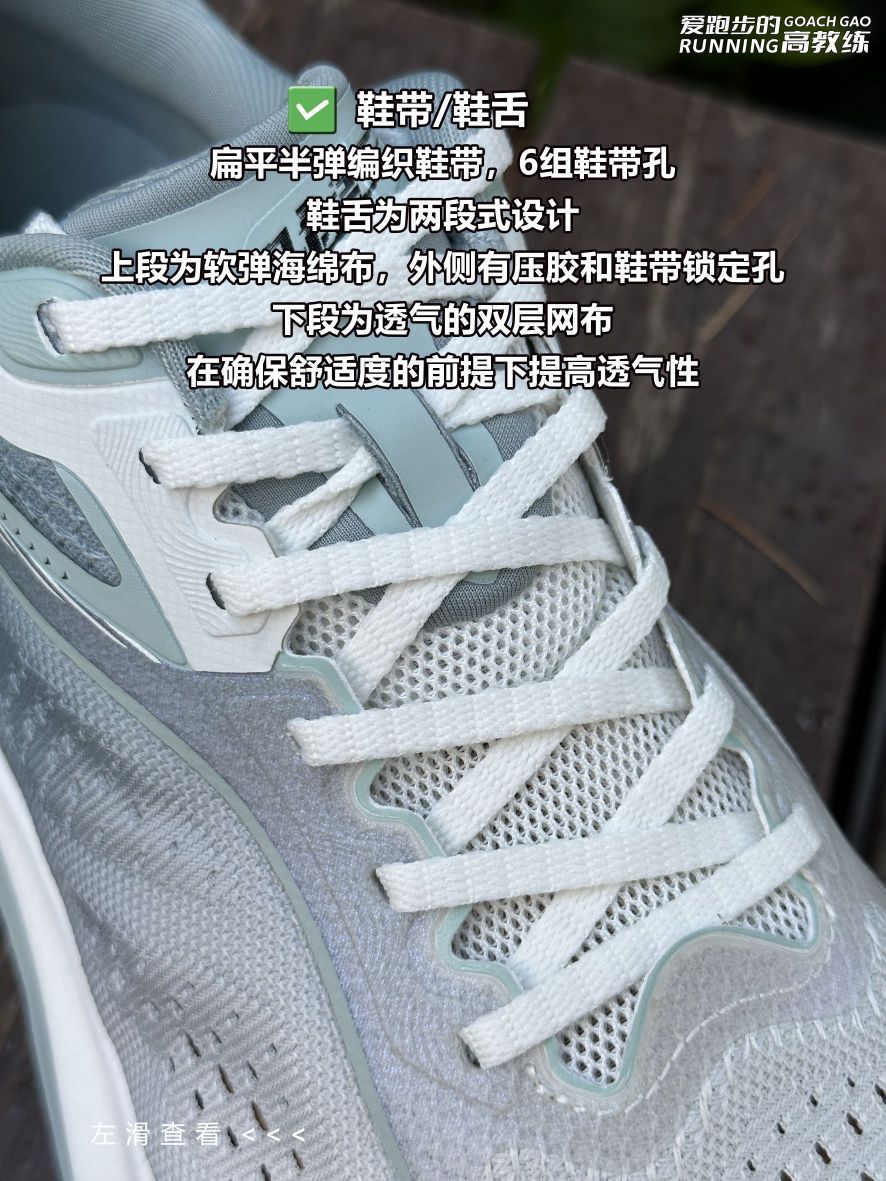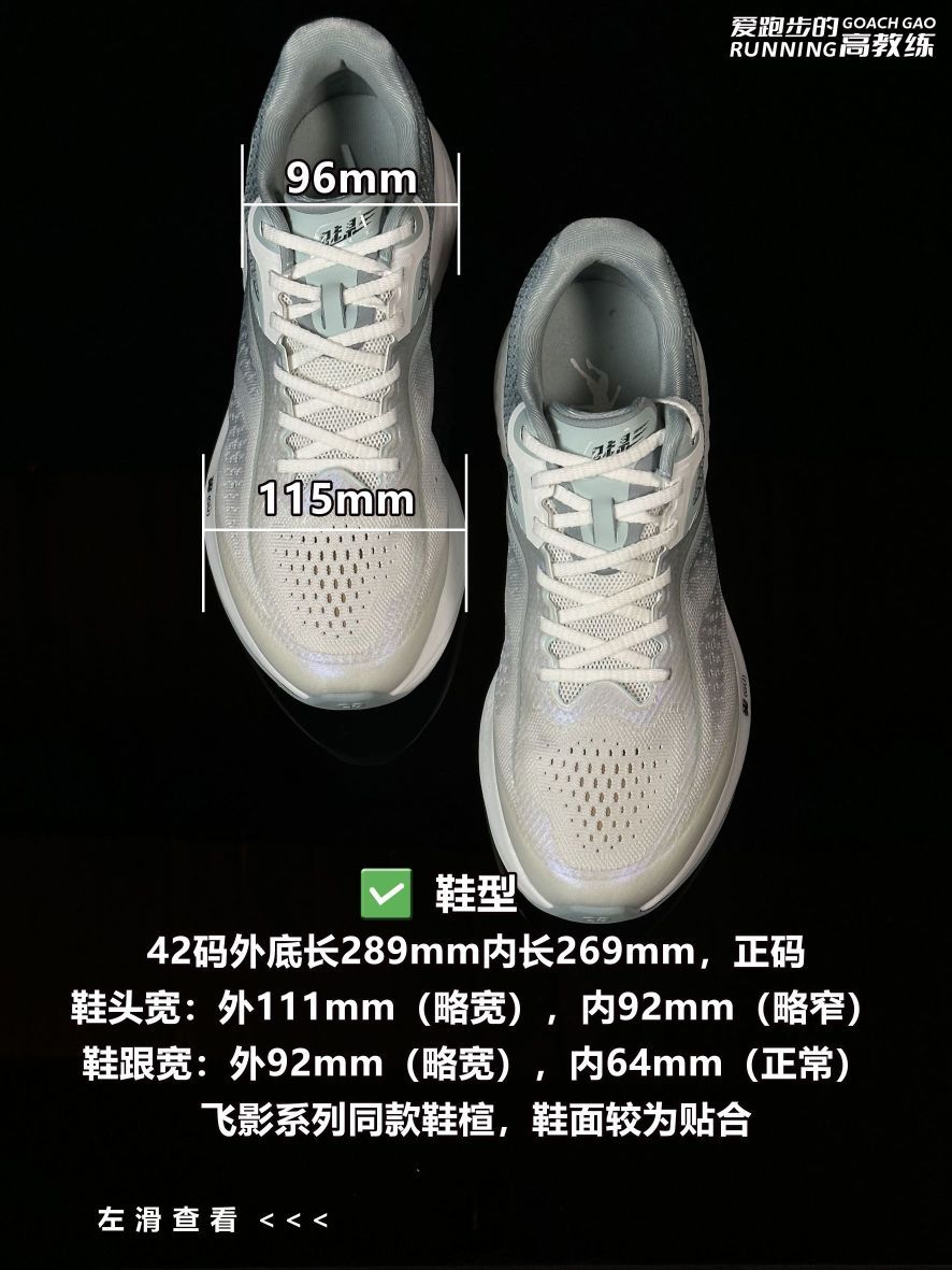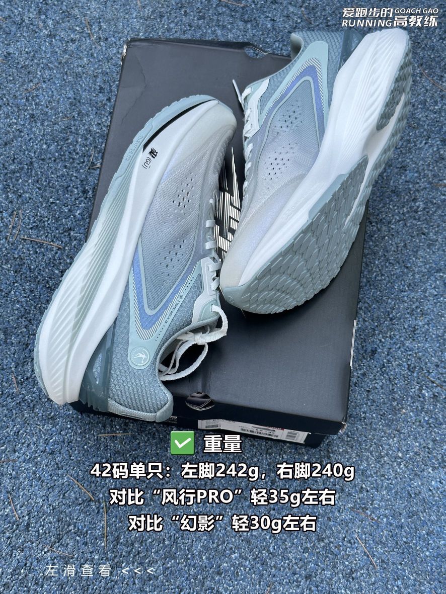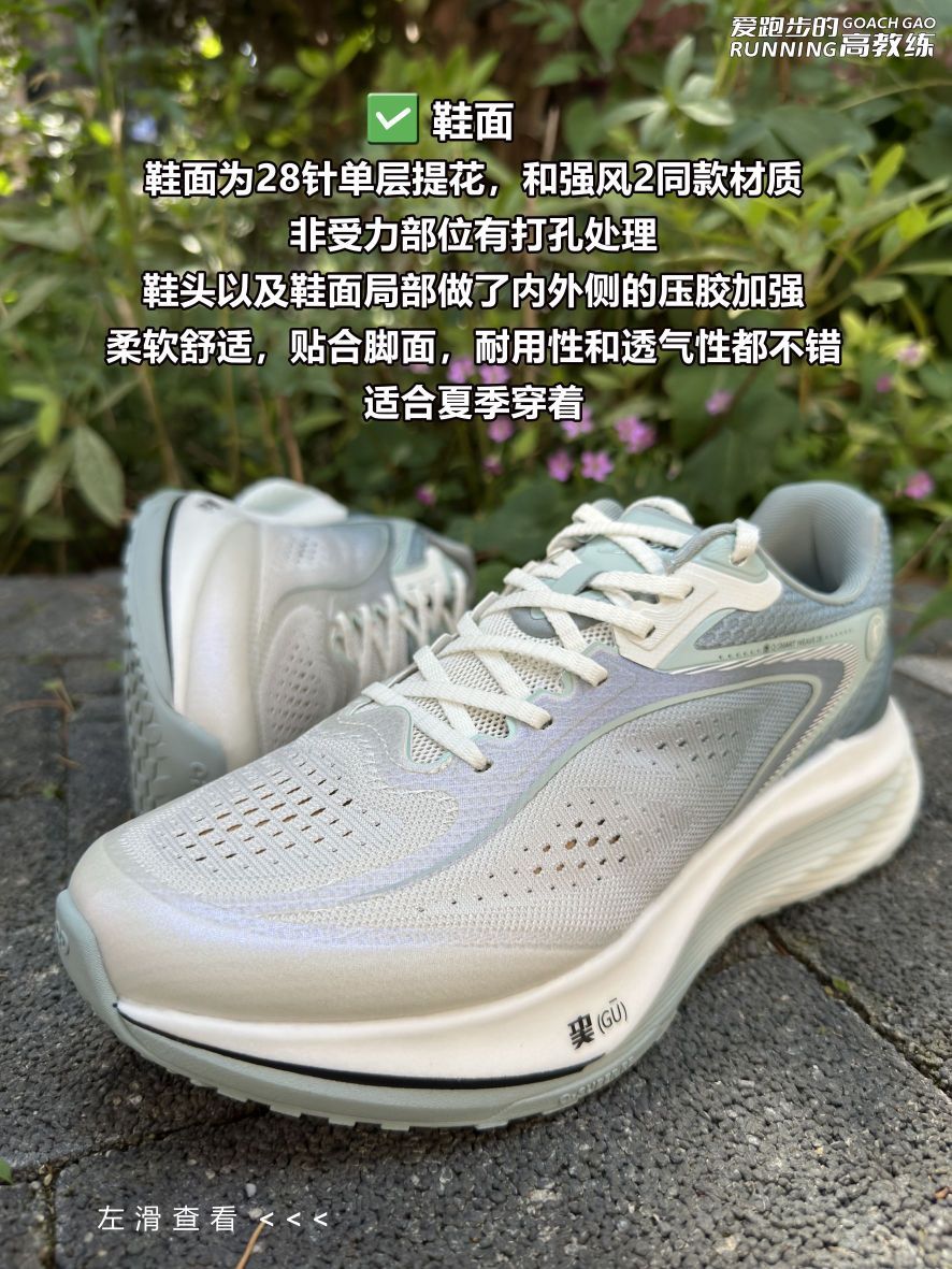 📝跑鞋数据: ✅鞋重:42码单只左脚242g,右脚240g,; ✅鞋面:28针单层提花,和强风2同款材质,柔软舒适,贴合脚面,耐用性和透气性都不错,适合夏季穿着; ✅鞋楦:正常鞋楦,与飞影PB4相同,按正码选择,宽脚/高脚背选大半码; ✅鞋舌:半内靴鞋舌,两段式设计,上段为软弹海绵布,外侧有压胶和鞋带锁定孔,下段为透气的双层网布,在确保舒适度的前提下提高透气性; ✅鞋带/鞋带孔:扁平半弹编织鞋带,...
