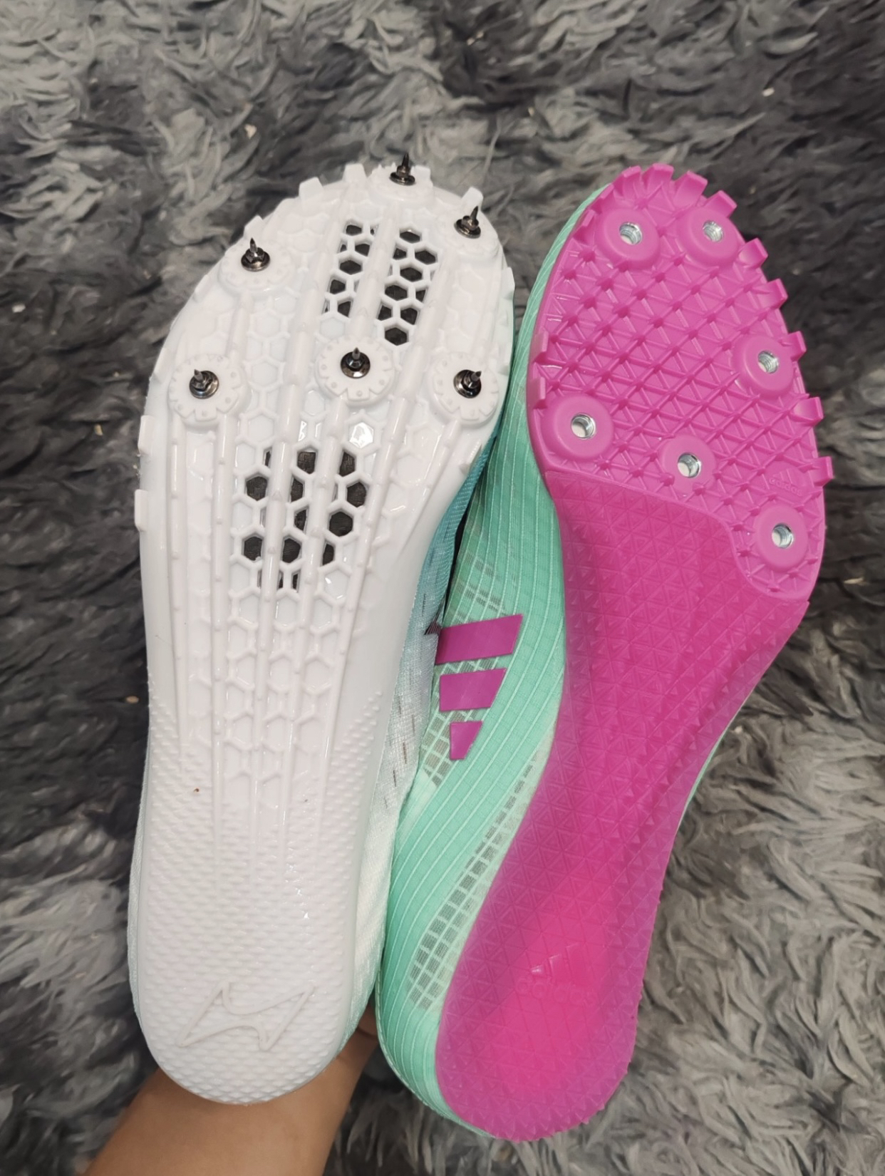 今日分享: 哈喽,大家好,这里是上进呀!今天给大家推荐两双平价的钉鞋,来自不同的品牌-Adidas和海尔斯,同样是采用织物鞋面,无论是包裹和强度都是比较在线的,鞋底的抓地力很到位,目前这两双鞋价格合适,个人认为适合学生党,大家关于这两双鞋有什么问题,可以到评论区留言喔!