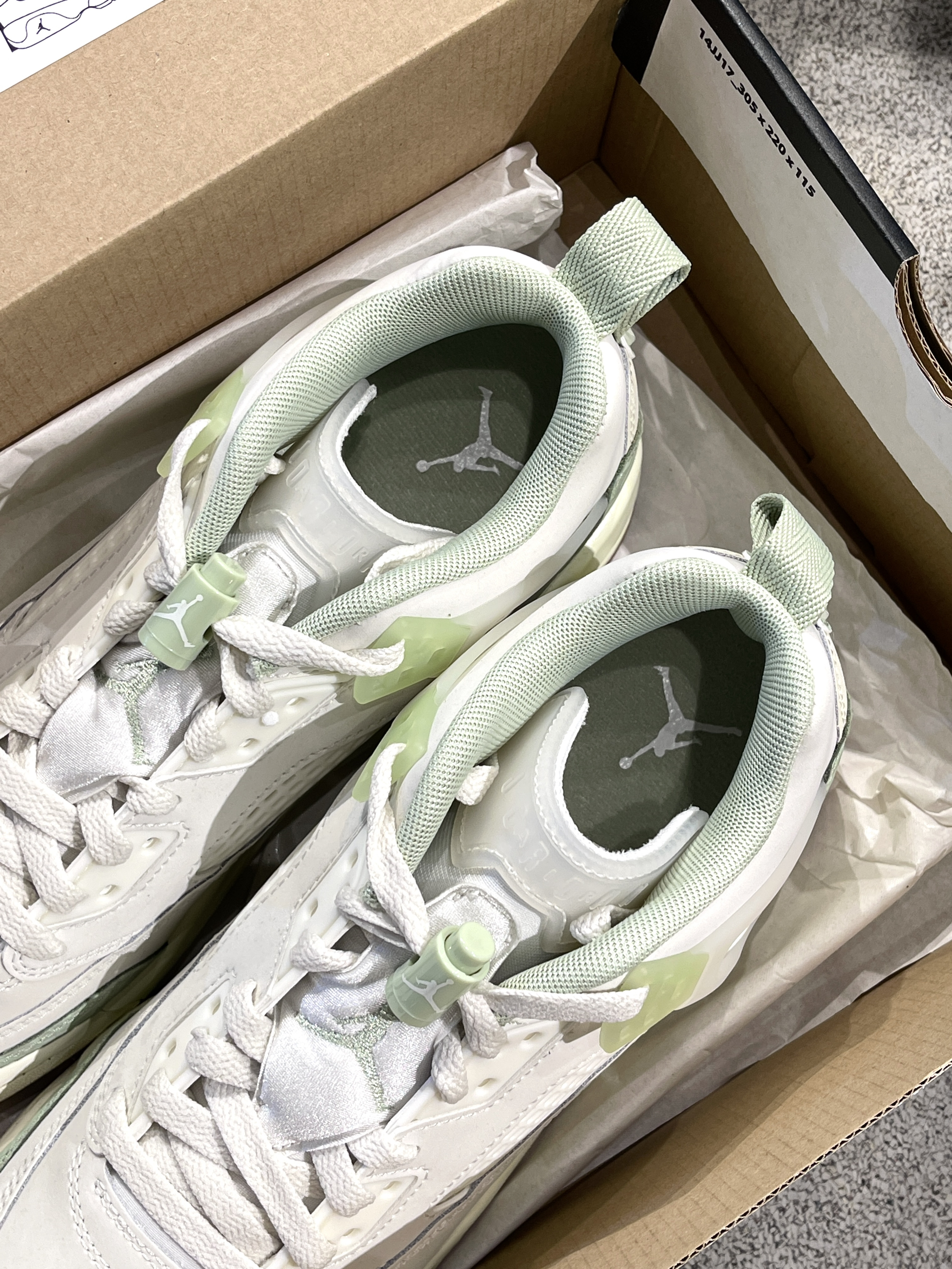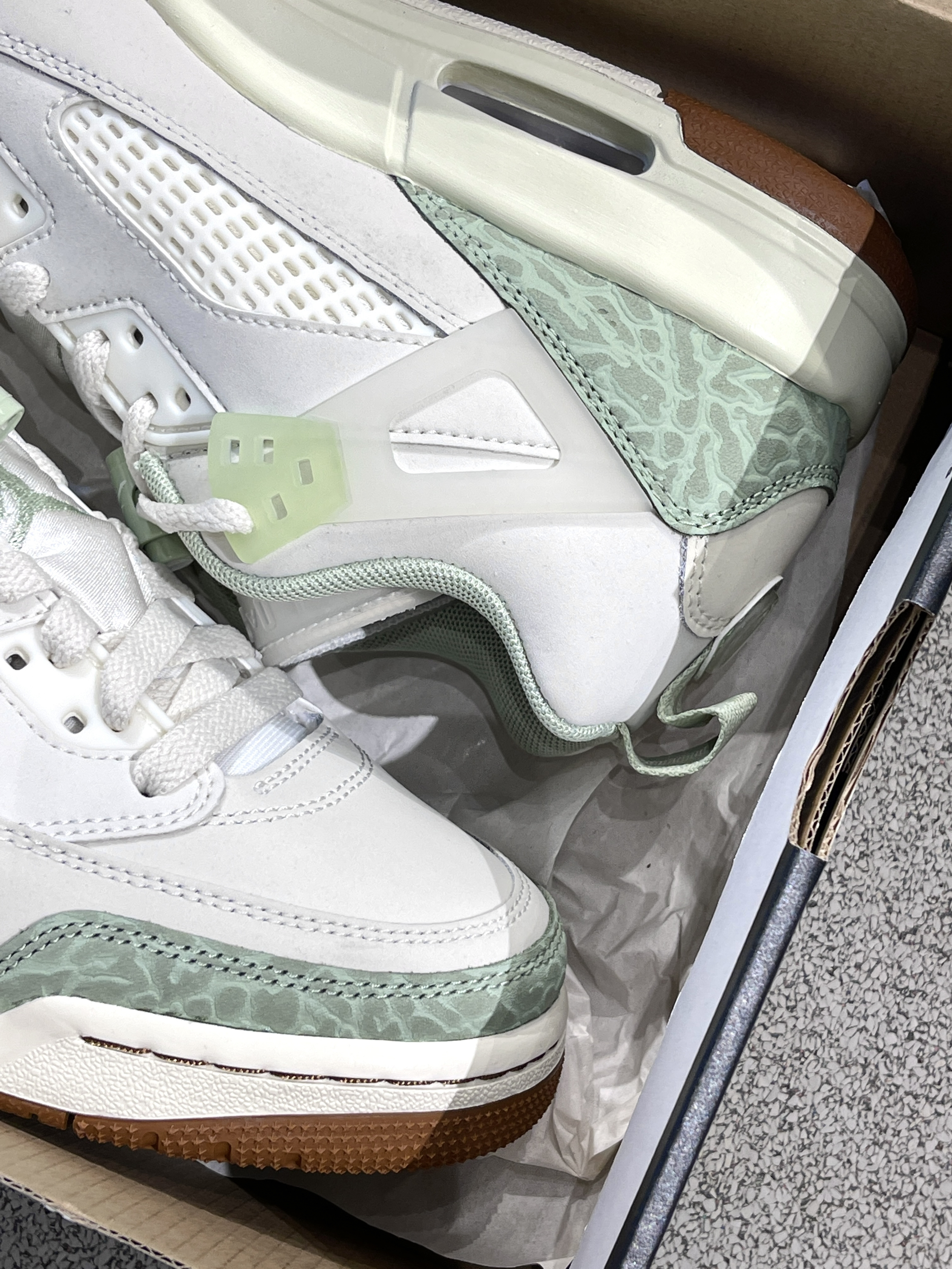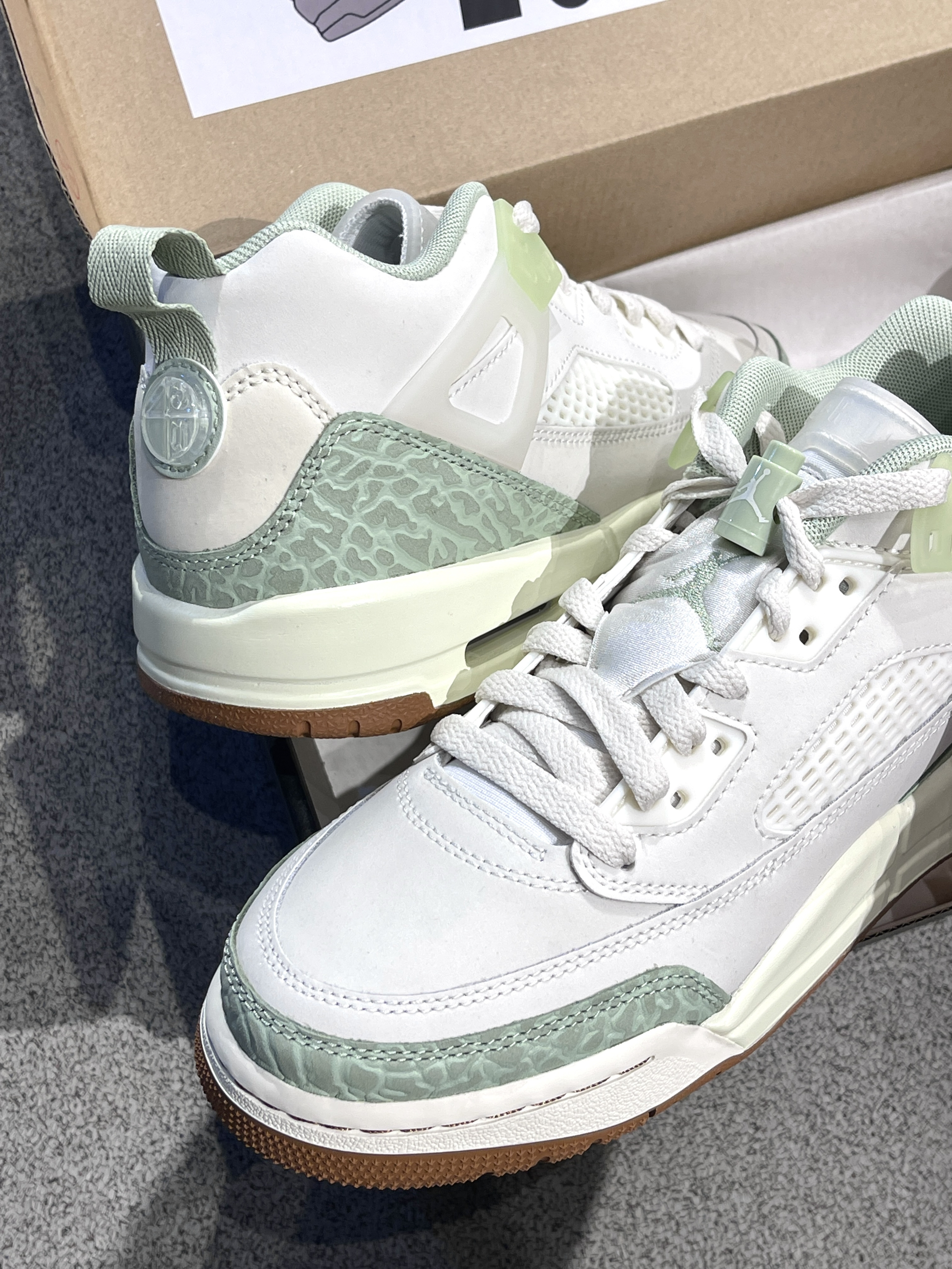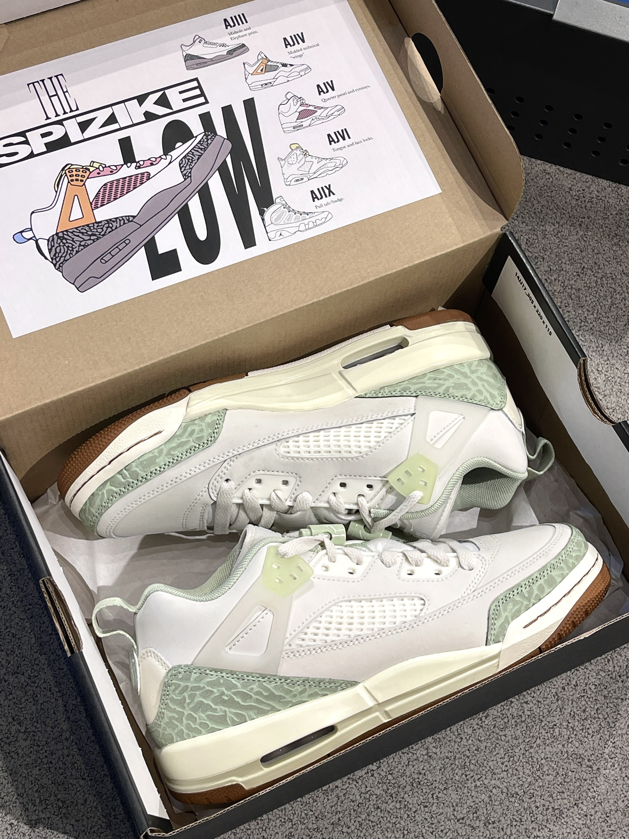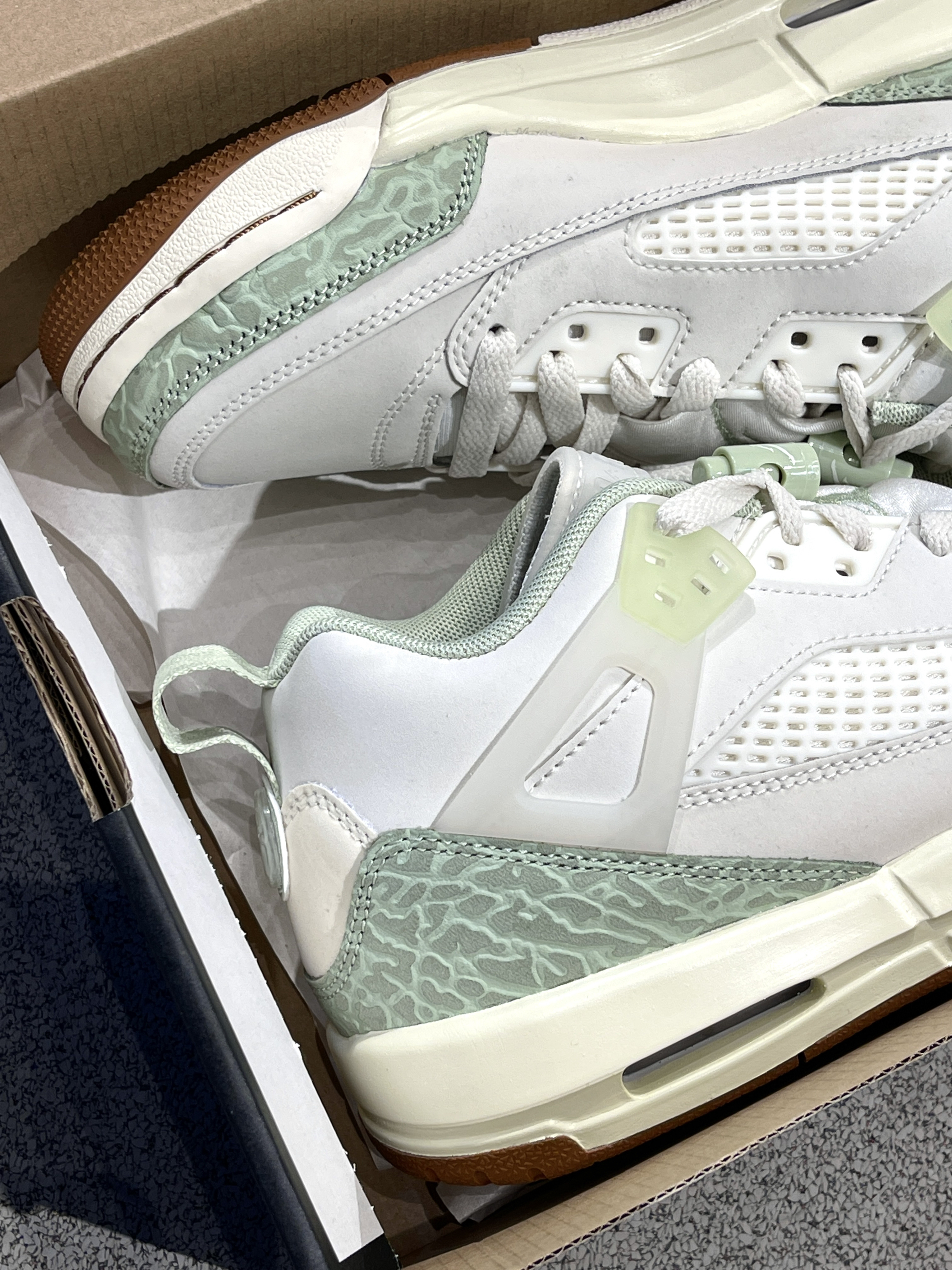 nike又出新鞋型啦,斯派克李,酷似aj4的外观! Jordan|Spizike 低帮复古篮球鞋 GS“白绿”🍃,复古百搭的鞋型,清新白绿的颜色搭配,外观酷似aj4的鞋型!外露的气垫加持,上脚脚感有所改善~