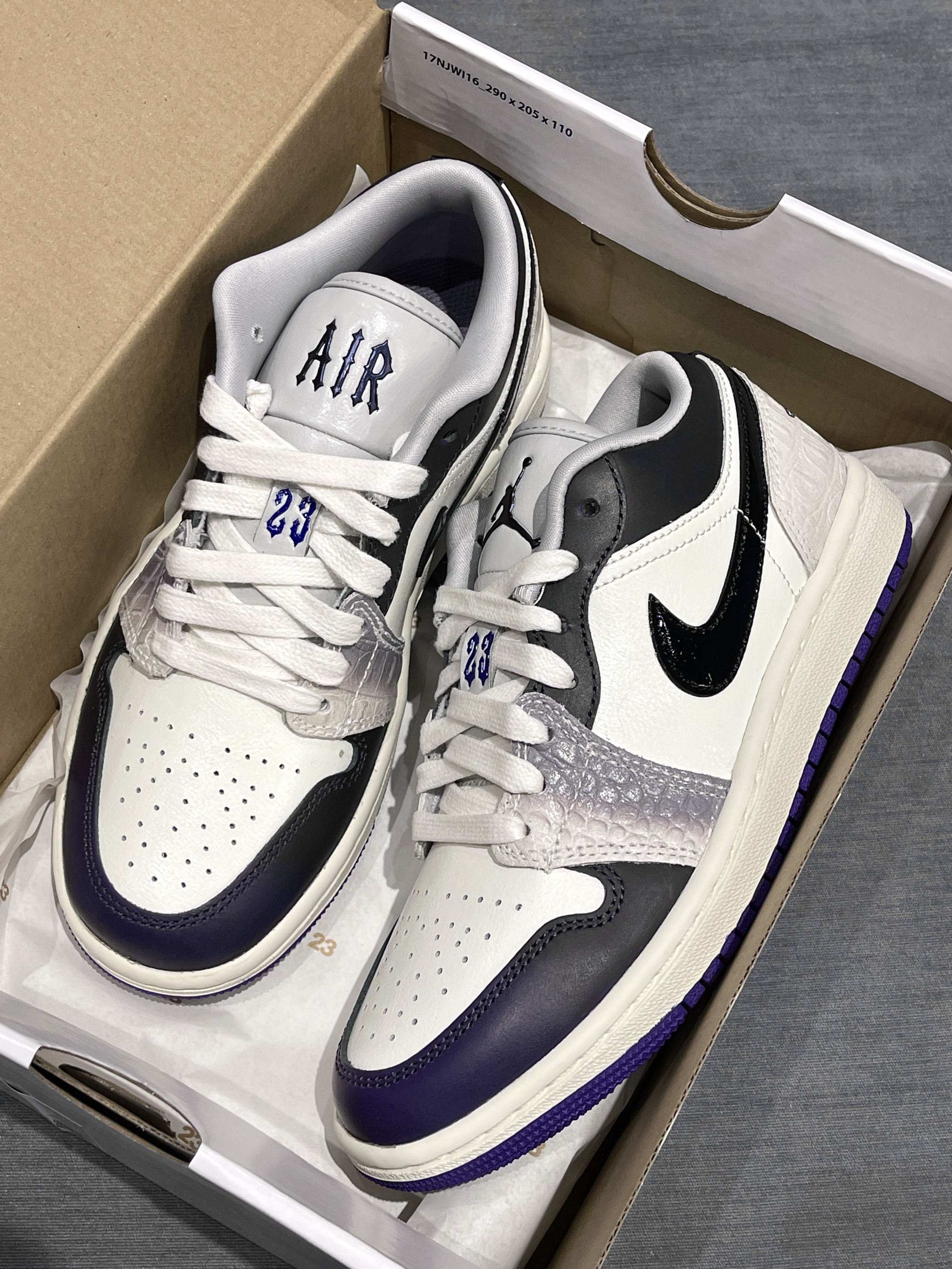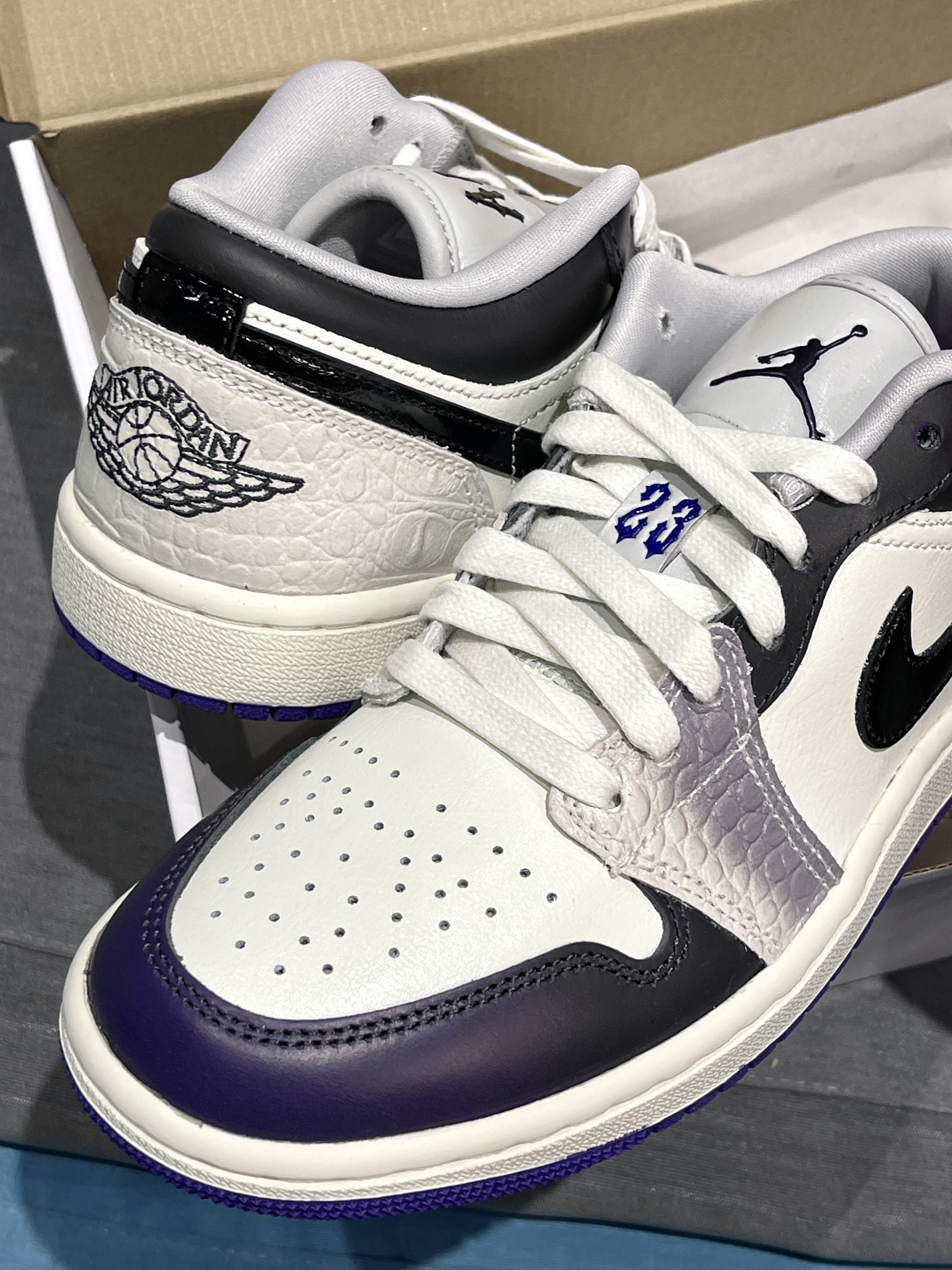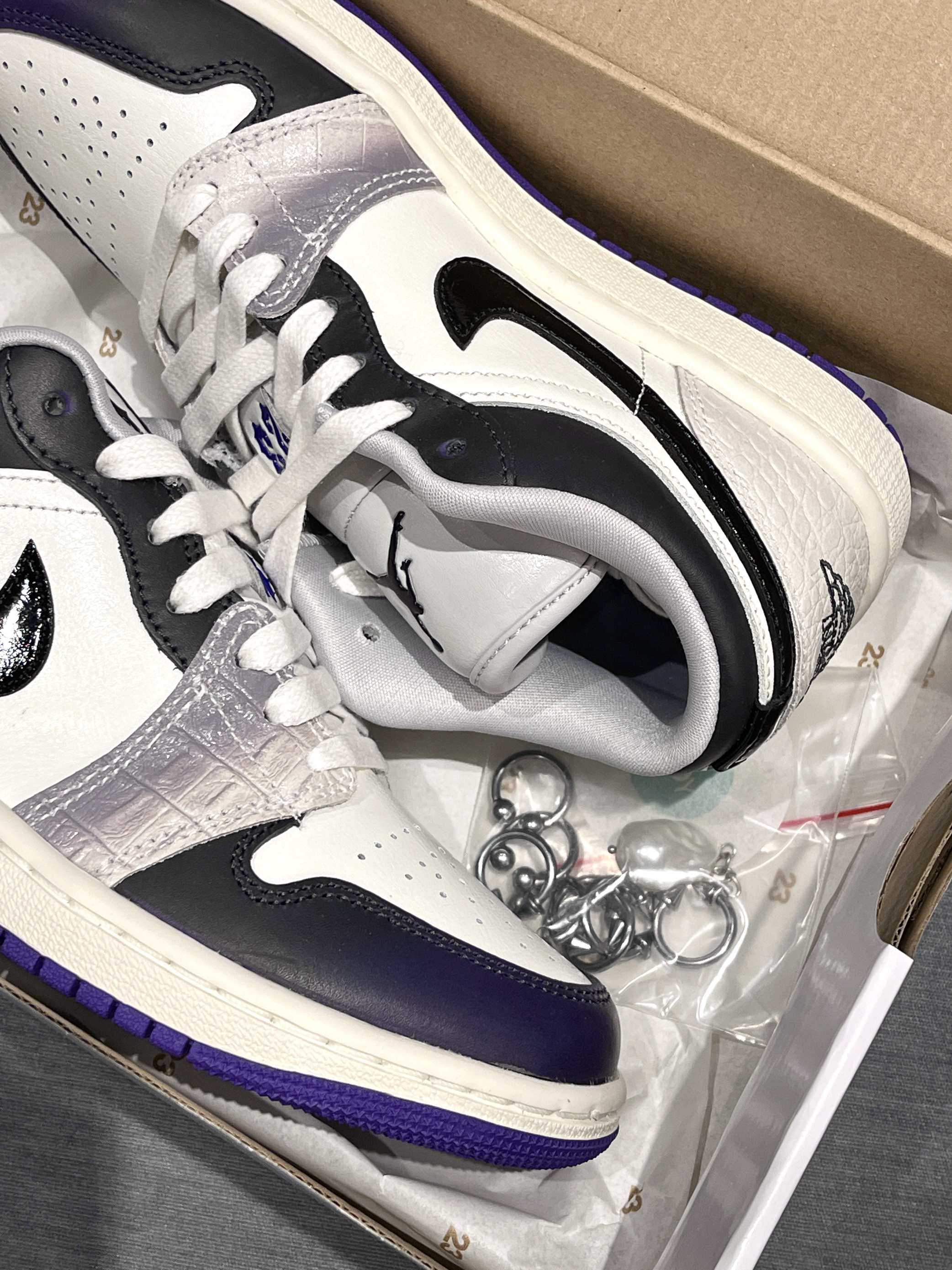 aj1low调色盘又发力了嗷,这次确实用点心思! Jordan|Air Jordan 1 Low SE 低帮 复古篮球鞋“白黑紫”,经典复古低帮aj1low鞋型,皮革类似鳄鱼皮的感觉🐊,整体小众又高级!搭配上附赠配饰,个性满满~😍
