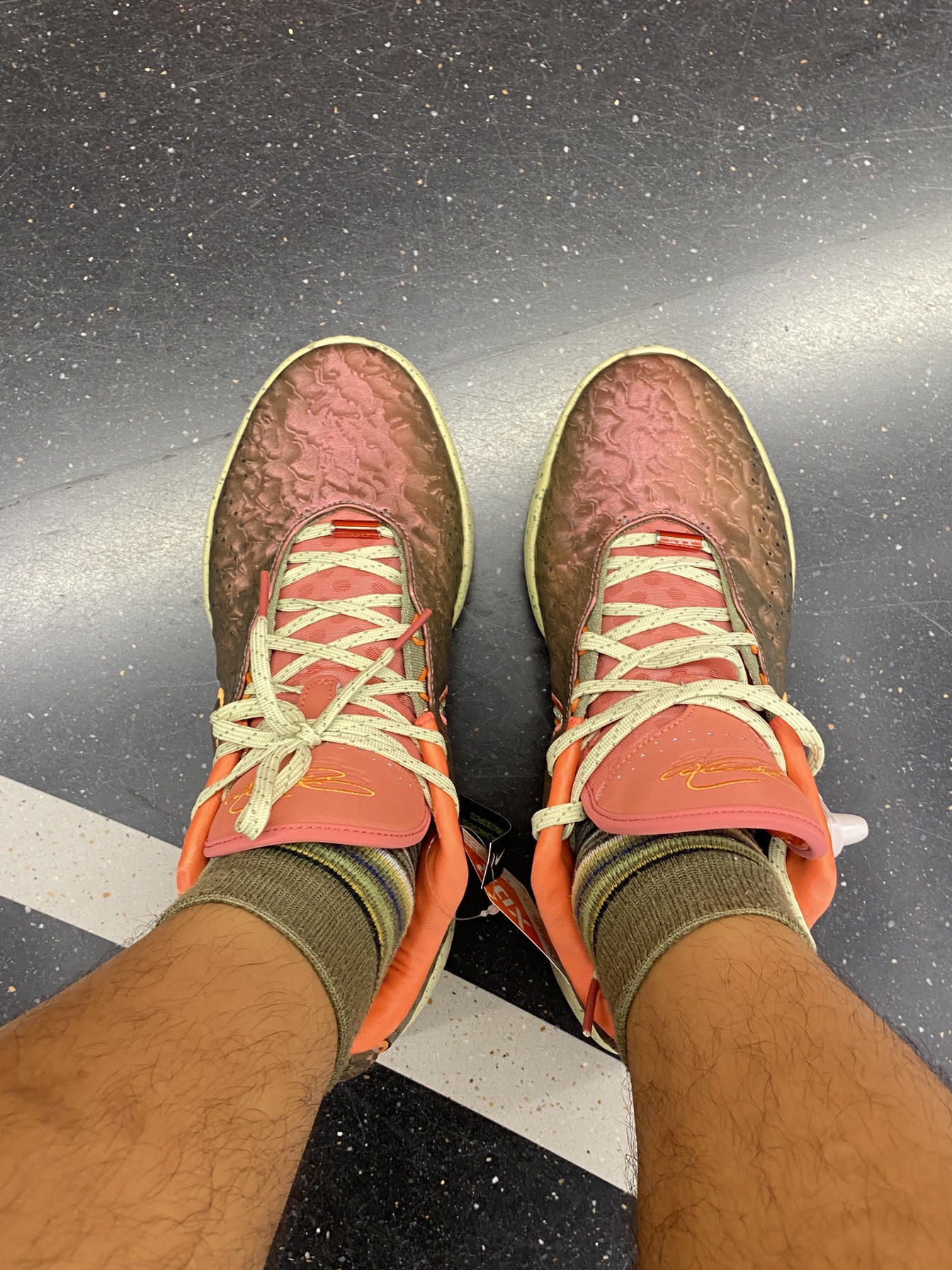 鞋面材料是比较厚实的,类似贝类内部花纹的样式,好像整体21代的设计语言就是贝壳海螺。各种配色也都绚丽多彩。整体鞋身不算轻,但是也不重,上脚感受不拖沓。包裹得益于海绵填充感受紧致,但是透气不太好,夏天没空调还是很闷脚。气垫感受一般,个人觉得不够澎湃。整体鞋身的滚动感一般,比较平。 总结:5开价位买詹姆斯正代签名鞋,不亏,整体脚感跟李宁一众3、4开球鞋比差一些透气和轻质。但是在Nike矩阵里,也属于第...