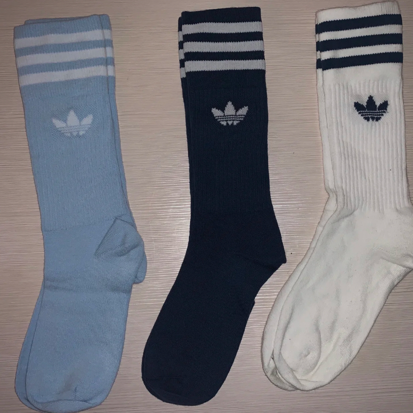 阿迪达斯男女中长筒袜 颜色非常的多! 特别好看! 推荐白色蓝色和绿色! 自己入的蓝色!超爱! 这个袜子它好像就是男款 我也不明白为啥男生各种骚气的色 最小39-42 建议像我这样穿38的大脚穿 很好搭配~ 图源自网络侵删