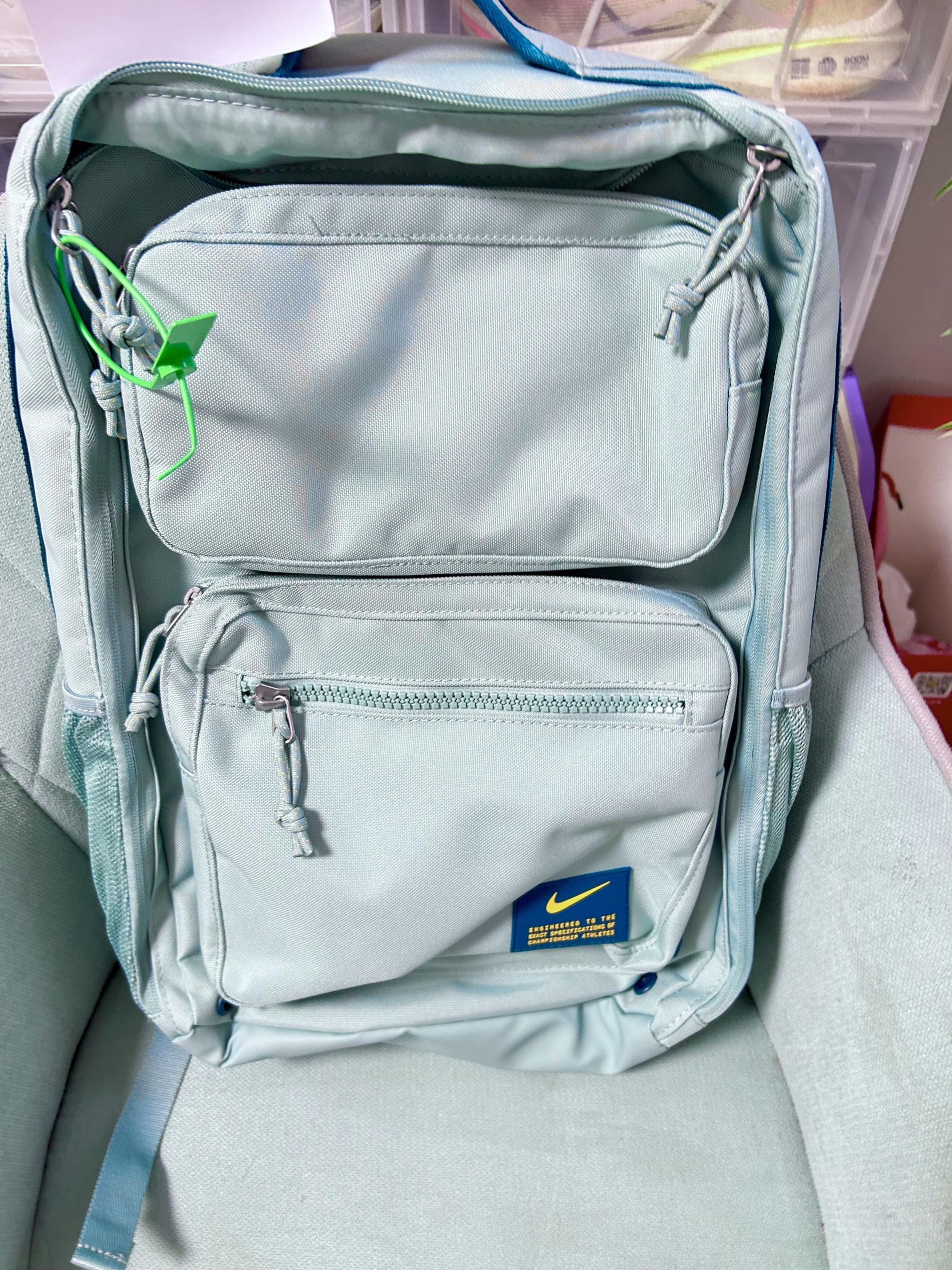 本篇笔记关联了Nike/耐克 Utility系列 织物logo印花时尚运动双肩包 浅银/明亮绿 FJ4818-034等商品,为用户提供真实的使用体验和购买参考。
