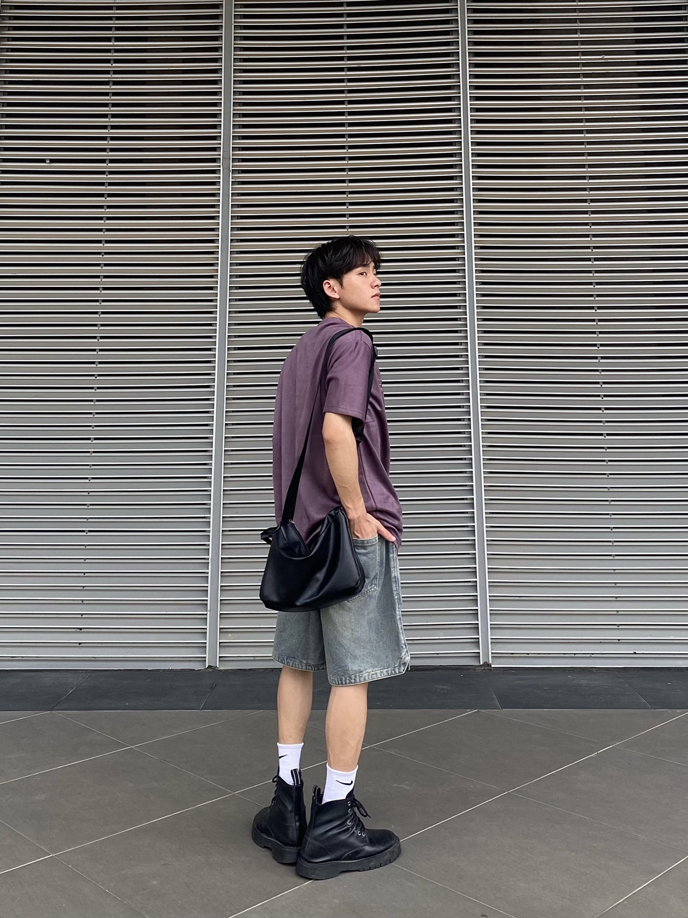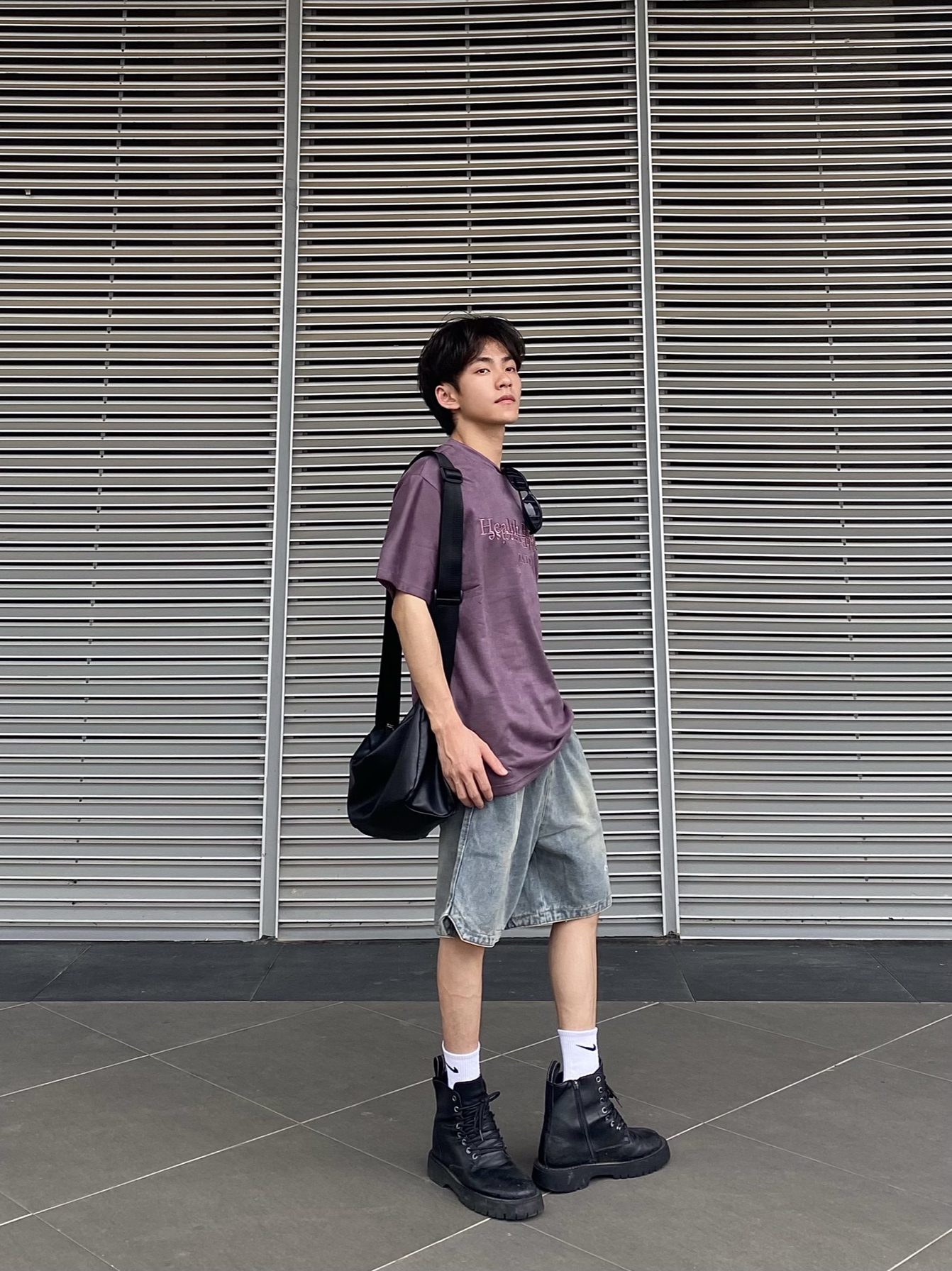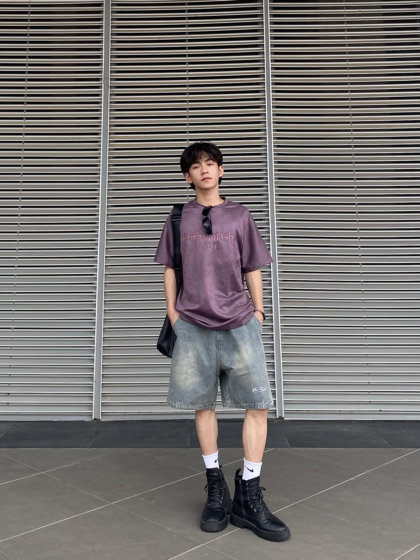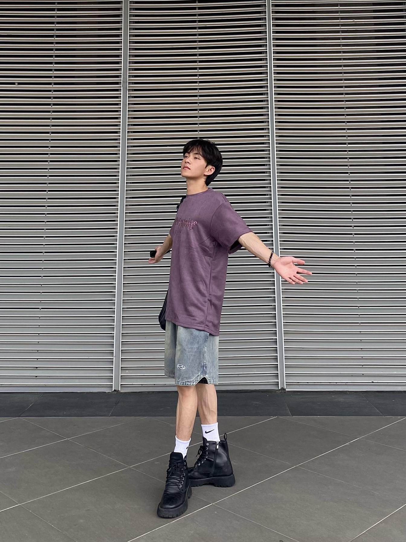今日穿搭分享: 1⃣️上衣选择的是一款紫色的美式字母印花圆领T恤,这款T恤宽松舒适,立体感十足,颜值高且百搭! 2⃣️裤子搭配的是一款黄泥蓝色的美式宽松五分牛仔短裤,版型宽松显瘦,上身效果非常棒,颜值抗打且百搭!真心不错,来抄作业❗️