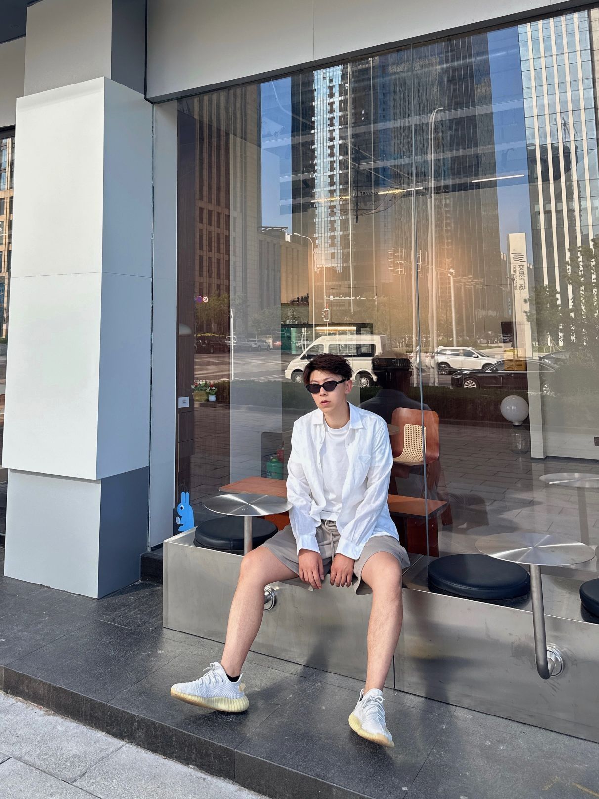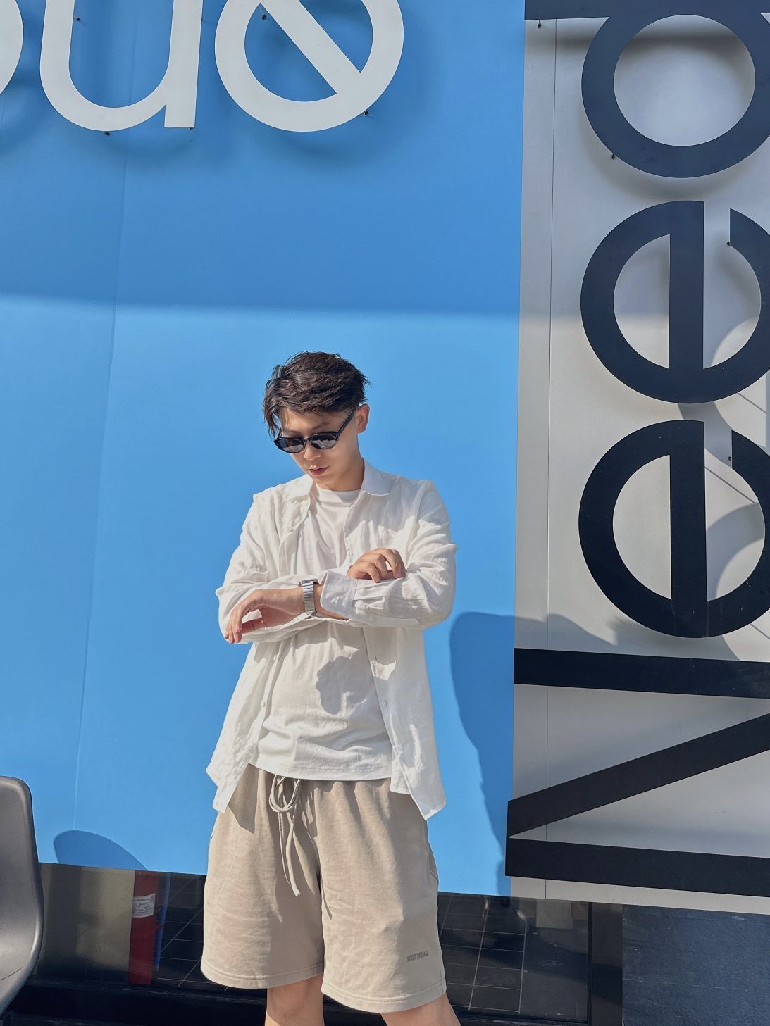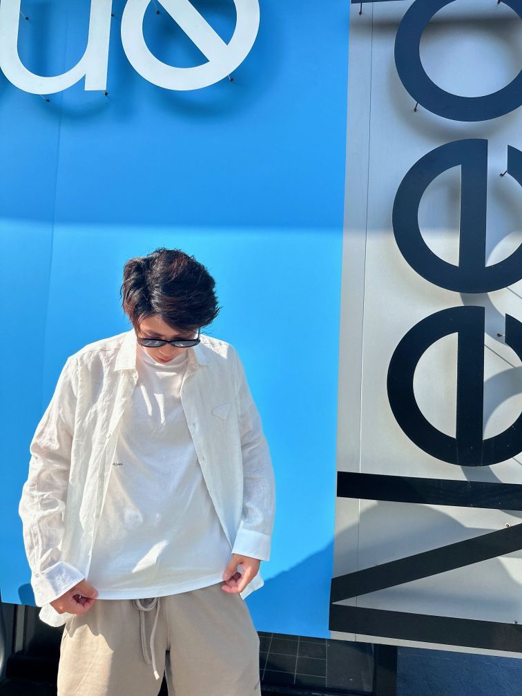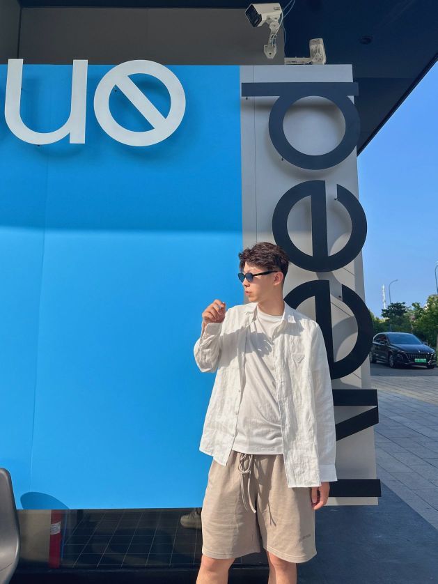 上身是全麻面料的长袖衬衫很有质感里面穿的是一件轻薄白色T注意一定要轻薄这样就没那么热了 下身棉质短裤 我选的卡其色和白色真的很搭 炎炎夏日这么穿 不仅不热还有范