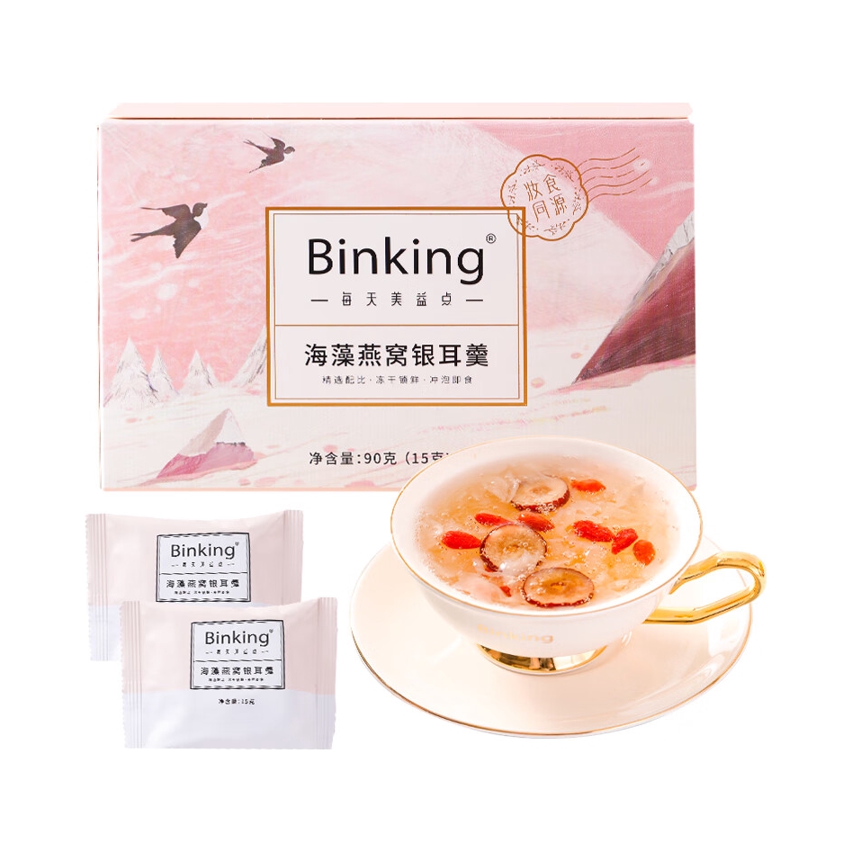 本篇笔记关联了Binking/每天美益点 海藻燕窝银耳羹限定礼盒 礼盒装 营养滋补送礼精选 450g、Binking/每天美益点 燕窝银耳羹 即食燕窝饮 15gx6包/盒等商品,为用户提供真实的使用体验和购买参考。