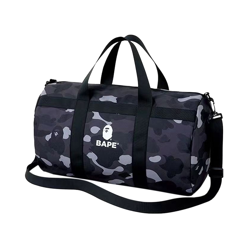 BAPE新款杂志桶包迷彩运动篮球足球行李包手提包斜挎包 雾都猩球健身包!一款酷酷的男生大包包,适合运动健身和旅游 手提斜挎都是好好看的,内里空间也是超大 拉链袋子也多,东西可分类放 牛津布材质耐磨耐用的! (图片来源于网络)