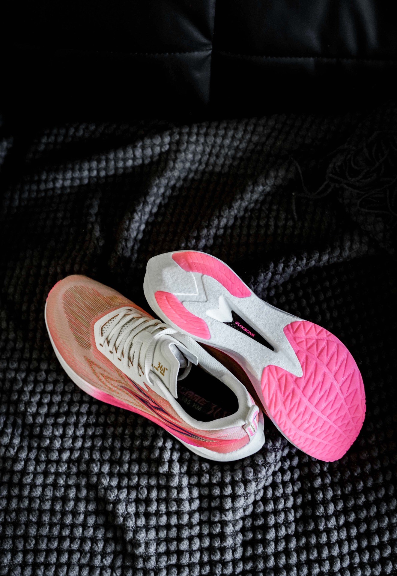 要说三开跑鞋有啥推荐 那肯定是推荐度子飞燃1.5 ! 这次推荐配色是亚洲配色 整体鞋子以白粉为主 又是一双猛男杀手配色! 整体配置,鞋面还是采用绞综材质 整体上脚感觉透气性还是很不错;中底使用peba发泡,跑起来能感受到非常明显回弹跟缓震! 虽然这是一双竞训跑鞋,但是入门门槛没那么高!适合国人使用,平时日常穿搭也可以!#国产顶级碳板跑鞋 #361飞燃 #361度跑鞋分享 #体考体测就靠这双鞋了 #...