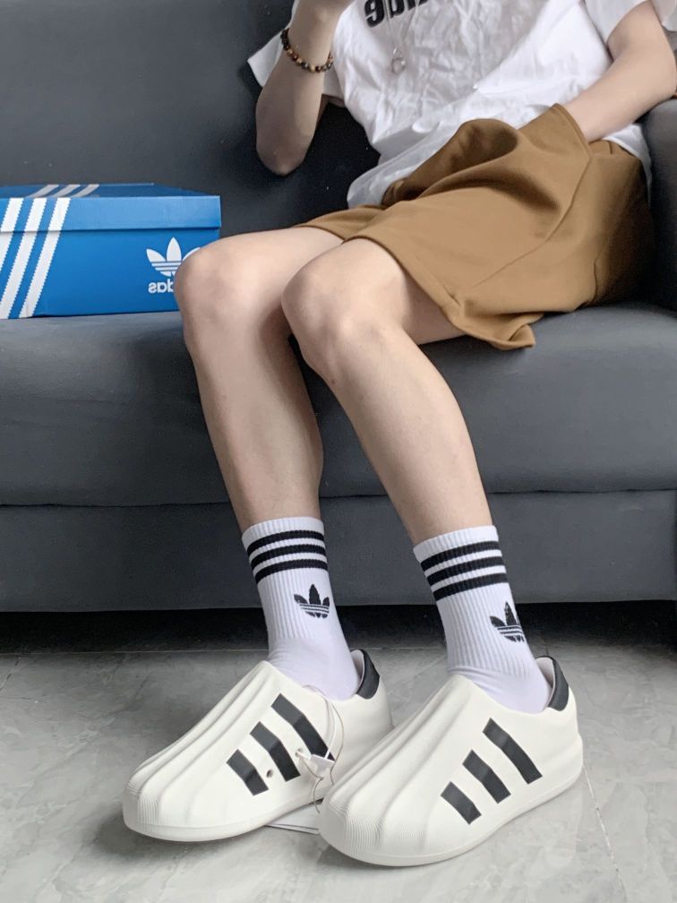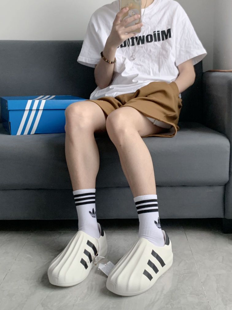 最近入手了一双阿迪的贝壳头洞洞鞋 设计简约干净,白色鞋身加上三条杠,经典又时尚。👟 胖嘟嘟的鞋型,超级可爱,搭配短裤超休闲。👖 穿上它,逛街、约会都舒适又好看。😍