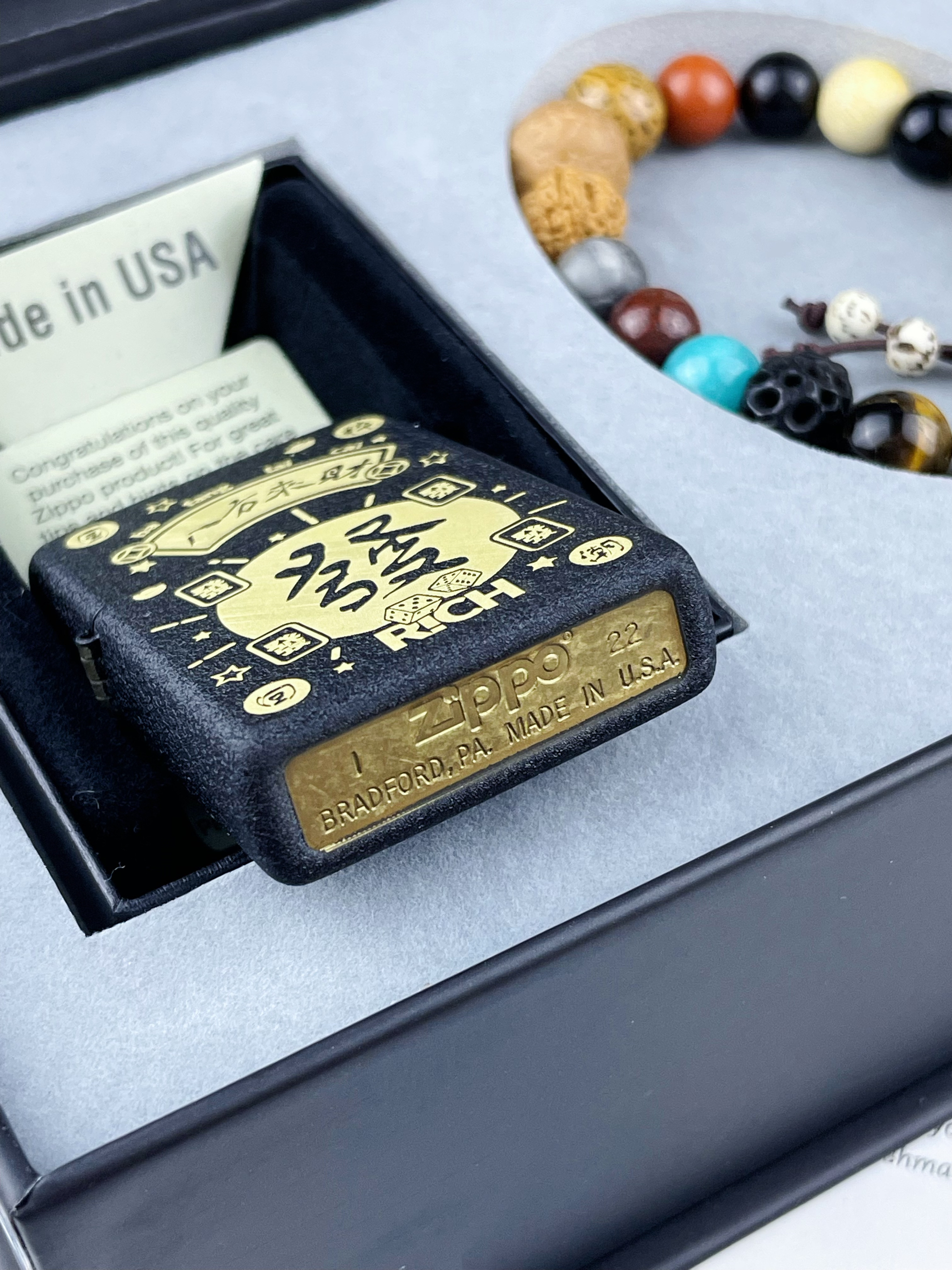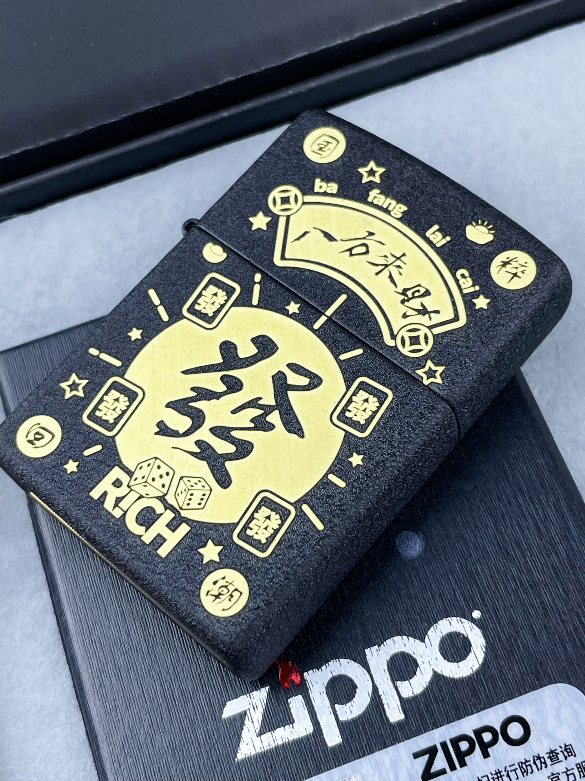 今天又来给大家分享七夕礼物🎁啦 ZIPPO 幸运系列『八方来财』防风煤油打火机 黑色的主色调真滴很酷 磨砂面的手感还是蛮舒服的 正反面金色的图案很精美 『八方来财·恭喜发财』寓意美好 这个礼物🎁送男友他一定会心动咯‼️