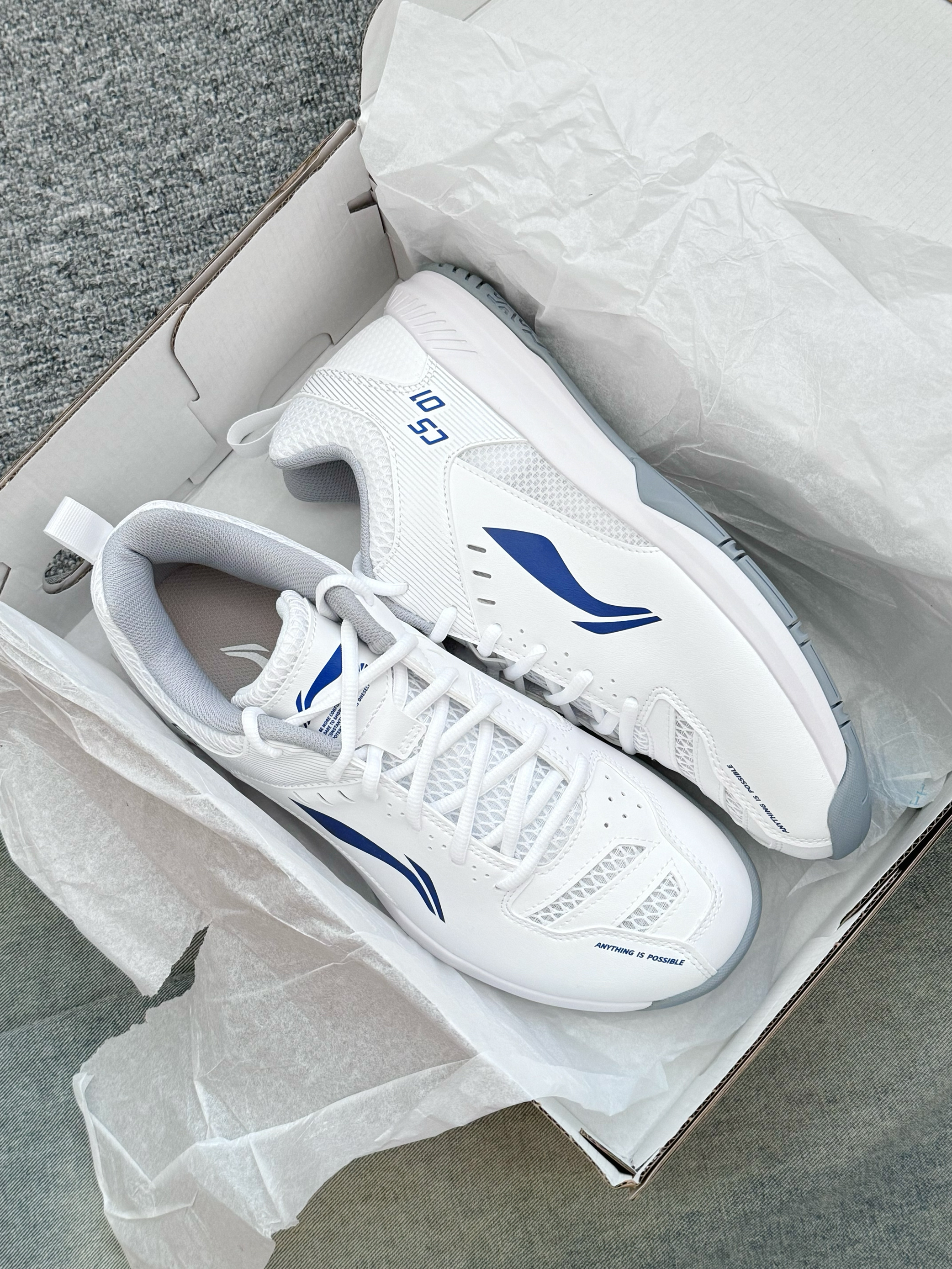整体是白色+蓝色 是妥妥的少年感配色 没想到李宁也有这么好看的羽毛球鞋 男女码也都有 七夕情侣鞋有着落了!