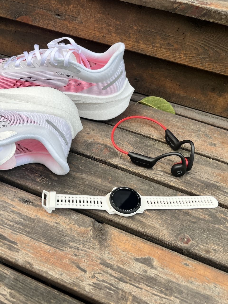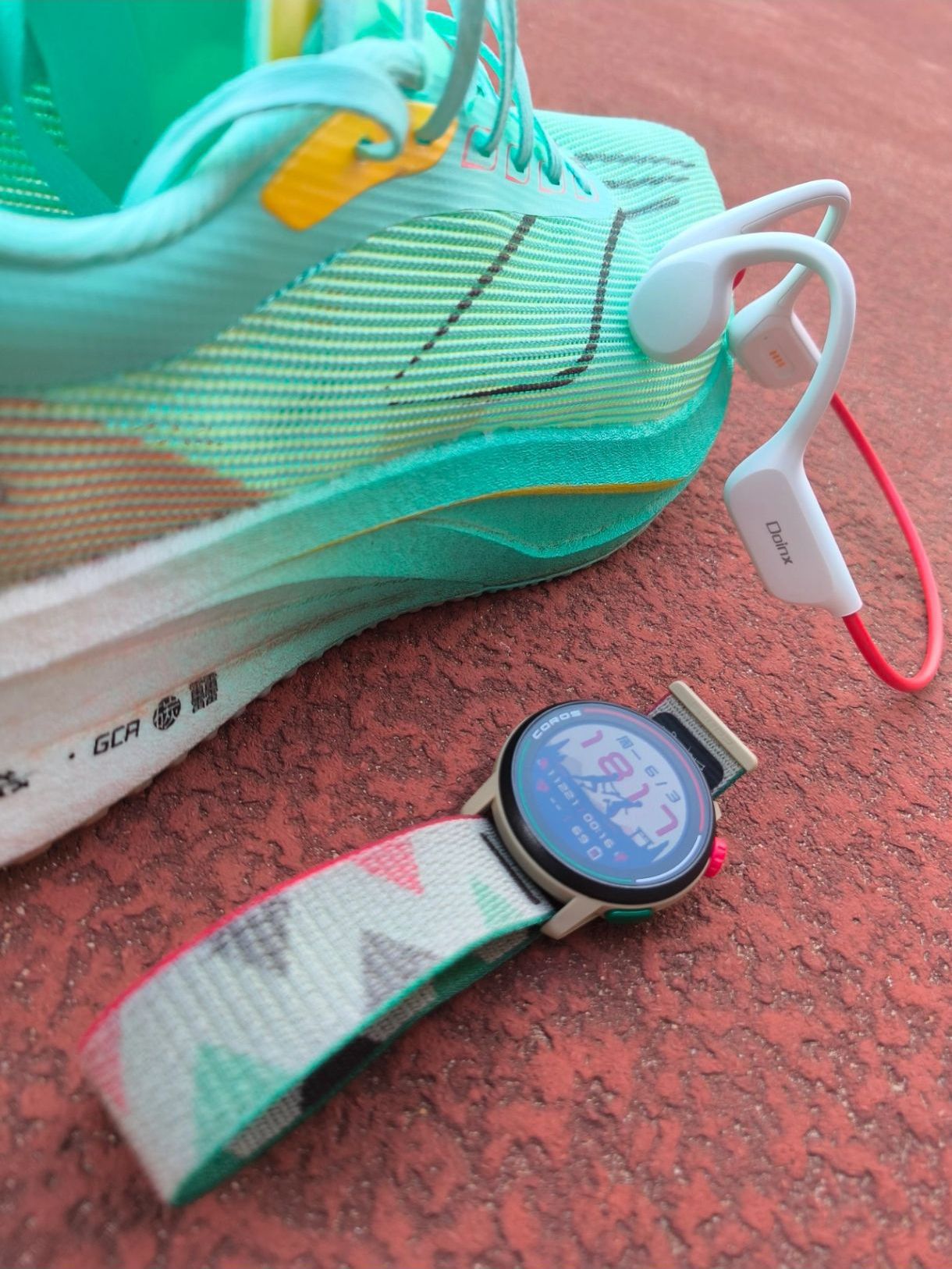 跑步总要有套装备吧!我分享一下我的三件套: 鞋子:鞋子是李宁飞电4c最近刚入手的一双鞋,上脚体验还不错,适合长跑训练来穿。回弹挺有劲的。 手表:手表是高驰peace3基普乔格代言的,高驰出了名的耐用,续航很顶。各种各样的运动记录都有,还有双频卫星定位在跑步过程中也是非常的准确的。 耳机:耳机是度享x7骨传导耳机,挂耳式在跑步过程中也不用担心耳机会掉落。还是不入耳设计,对耳朵非常友好,这款耳机...