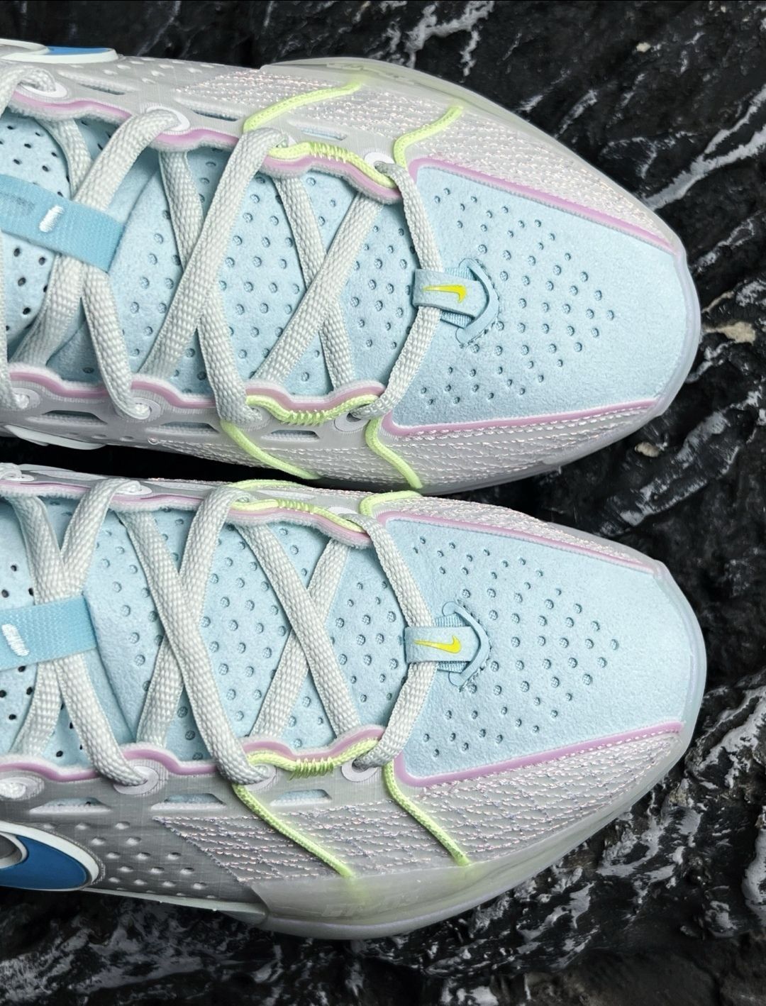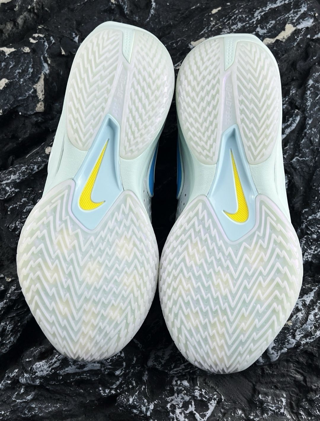 今天和大家带来一款PE版本的GT3代,男女同款 是中国女子篮球队长杨力维的专属配色 实物开箱颜值方面还是蛮酷炫的 白蓝绿的配色干净清爽,妥妥的夏日配色 中底搭载了zoom缓震科技,脚感澎湃 上脚的舒适度,包裹非常nice 橡胶外底的耐磨和防滑问题不大 尺码不偏,正码