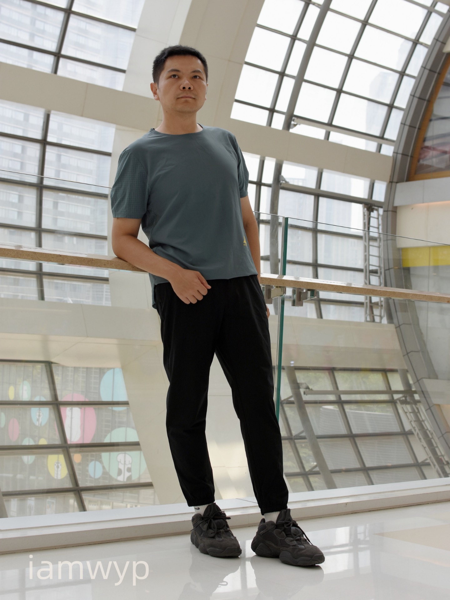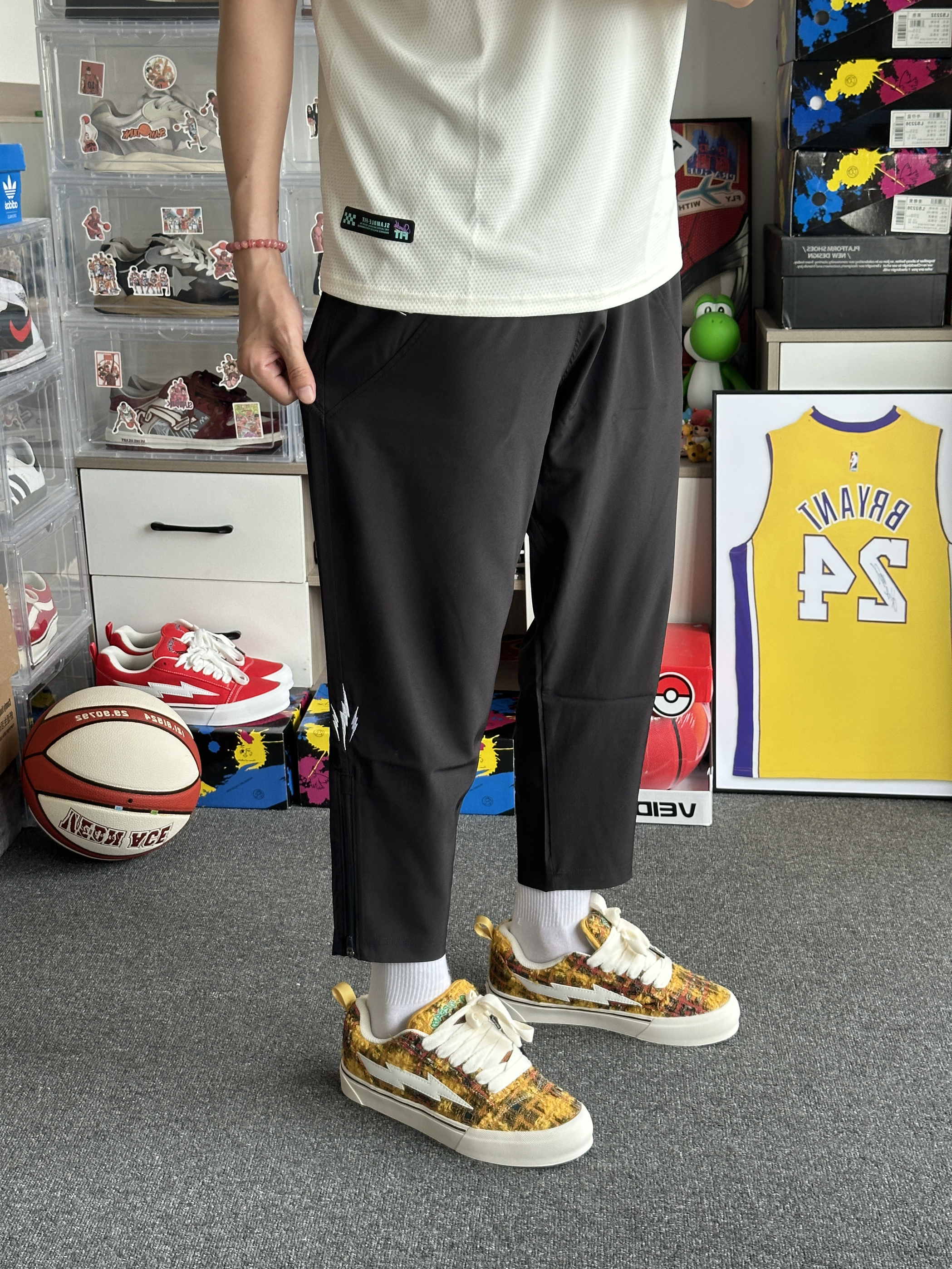 版型是上宽下窄的对身材很包容呀很好穿 裤脚还要拉链设计可微喇可束脚 面料是速干的