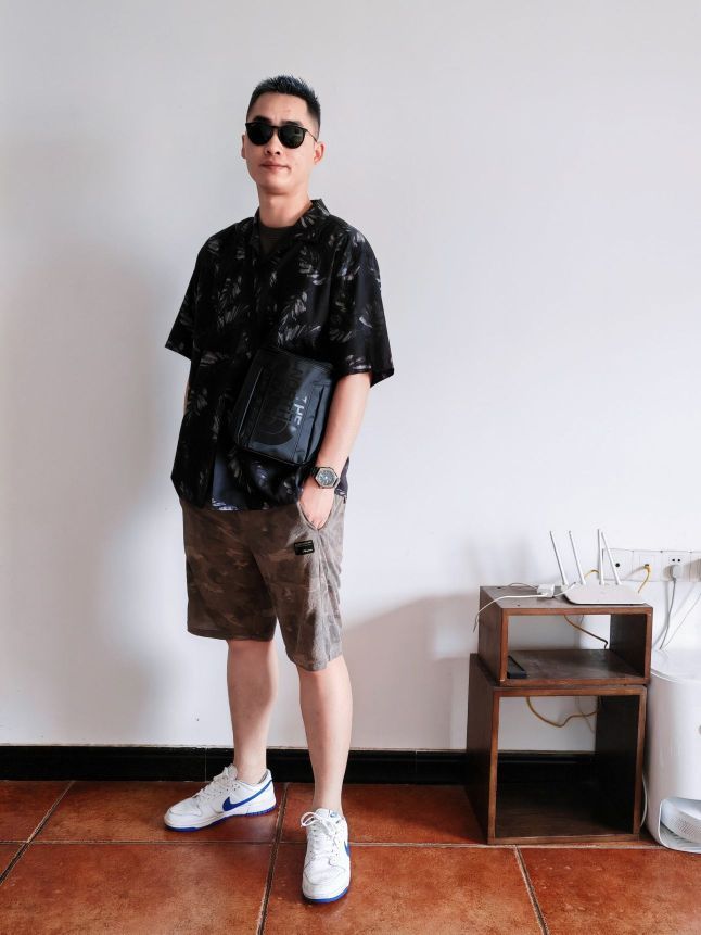 👕:优衣库花衬衫 xl 183cm 80kg 👖:三福亚麻五分裤 👟:duck白蓝 🕶:雷朋墨镜 👜:北面斜挎包
