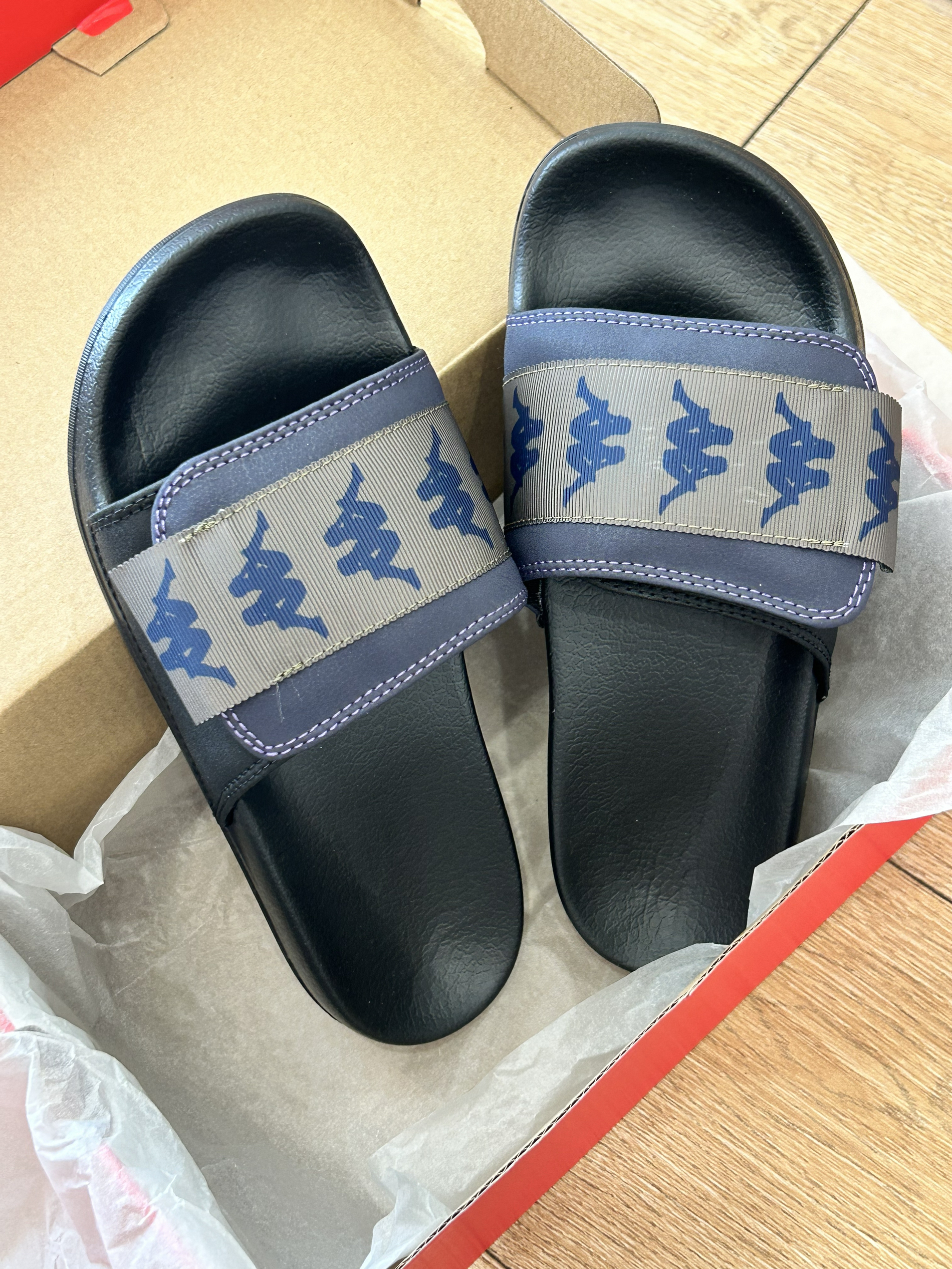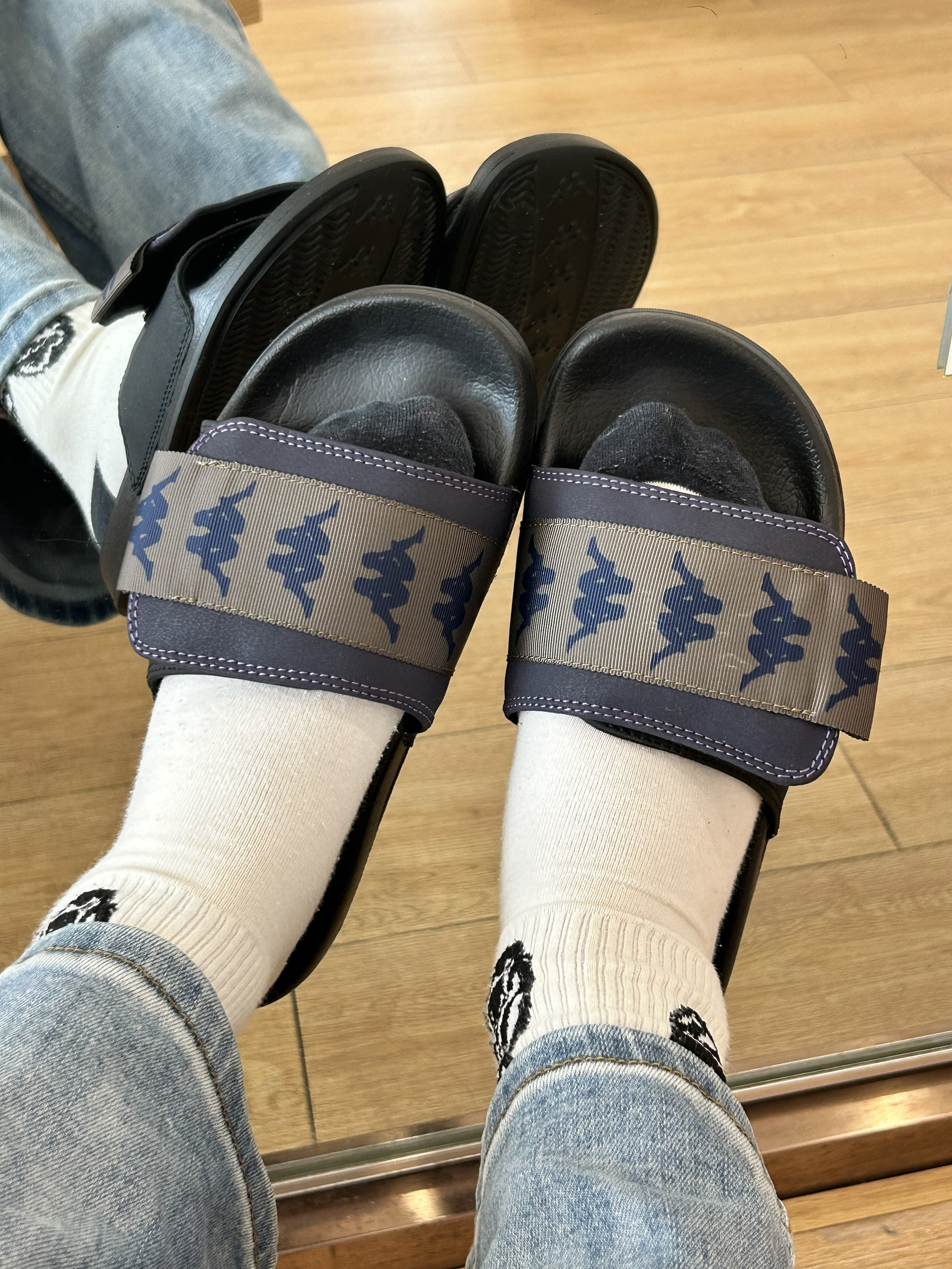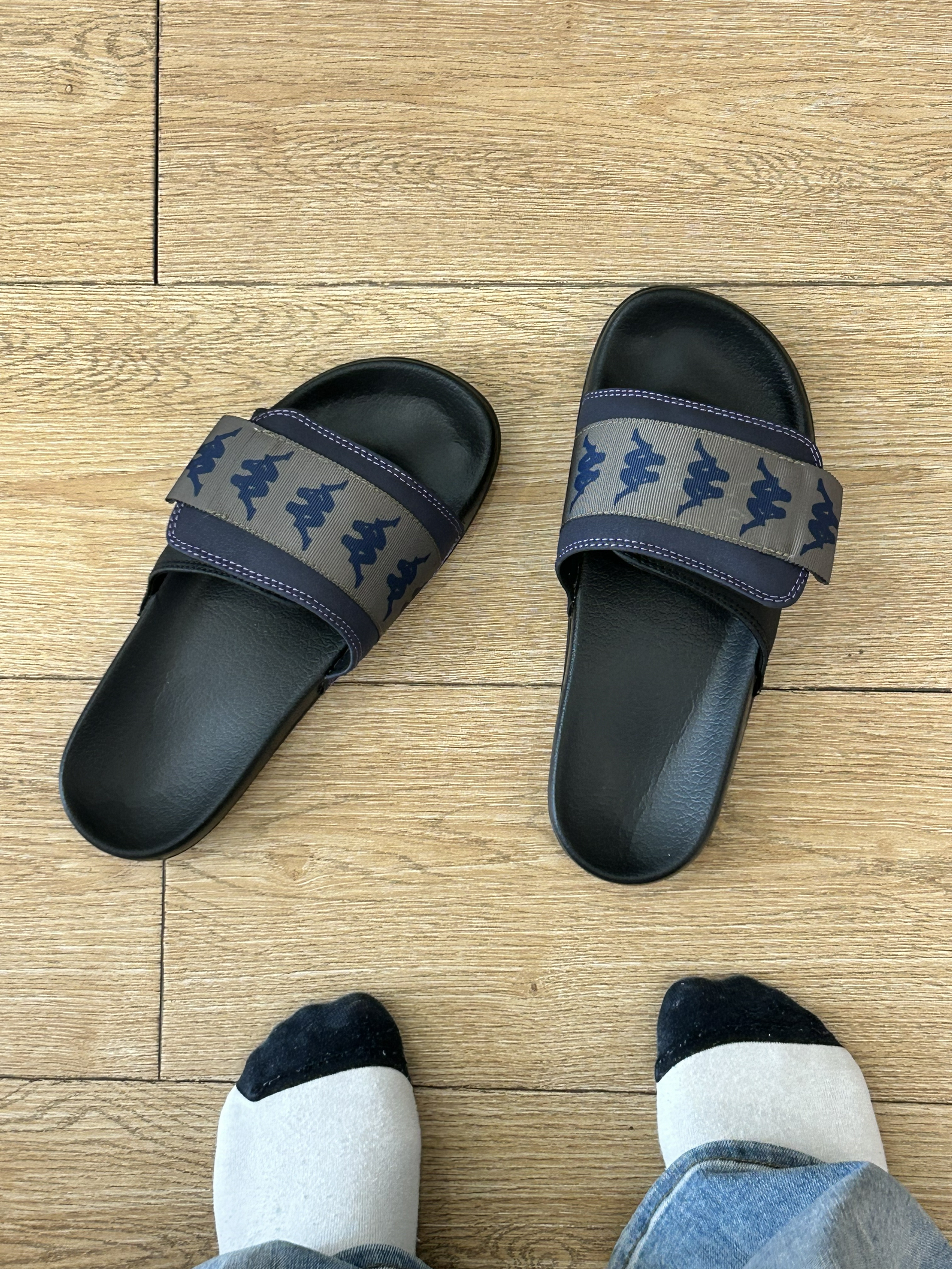今年夏天的拖鞋选择了kappa家的拖鞋表扬kappa设计师 是我理想的拖鞋带魔术贴可以随意调节 穿着很舒服,直接一脚拖我就出门了 男朋友一双 我一双,这舒适度我们先享受啦